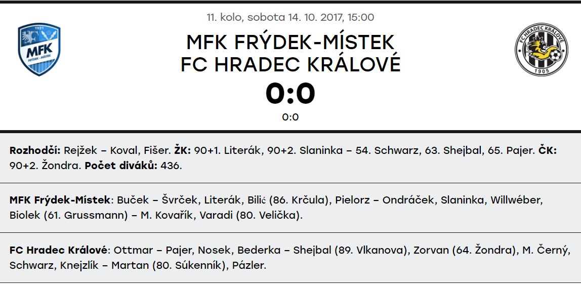Svěřenci trenéra Martina Pulpita aktuálně bojují o zachování druholigové příslušnosti. Na čtrnácté pozici mají 25 bodů. Nicméně poslední zápasy dávají tušit, že forma našeho soupeře jde nahoru. Remíza 2:2 se Znojmem, výhra 4:1 na Olympii nebo jíž zmíněné domácí vítězství 2:1 nad Příbramí, to je bilance posledních třech utkání v podání hráčů Frýdku-Místku.