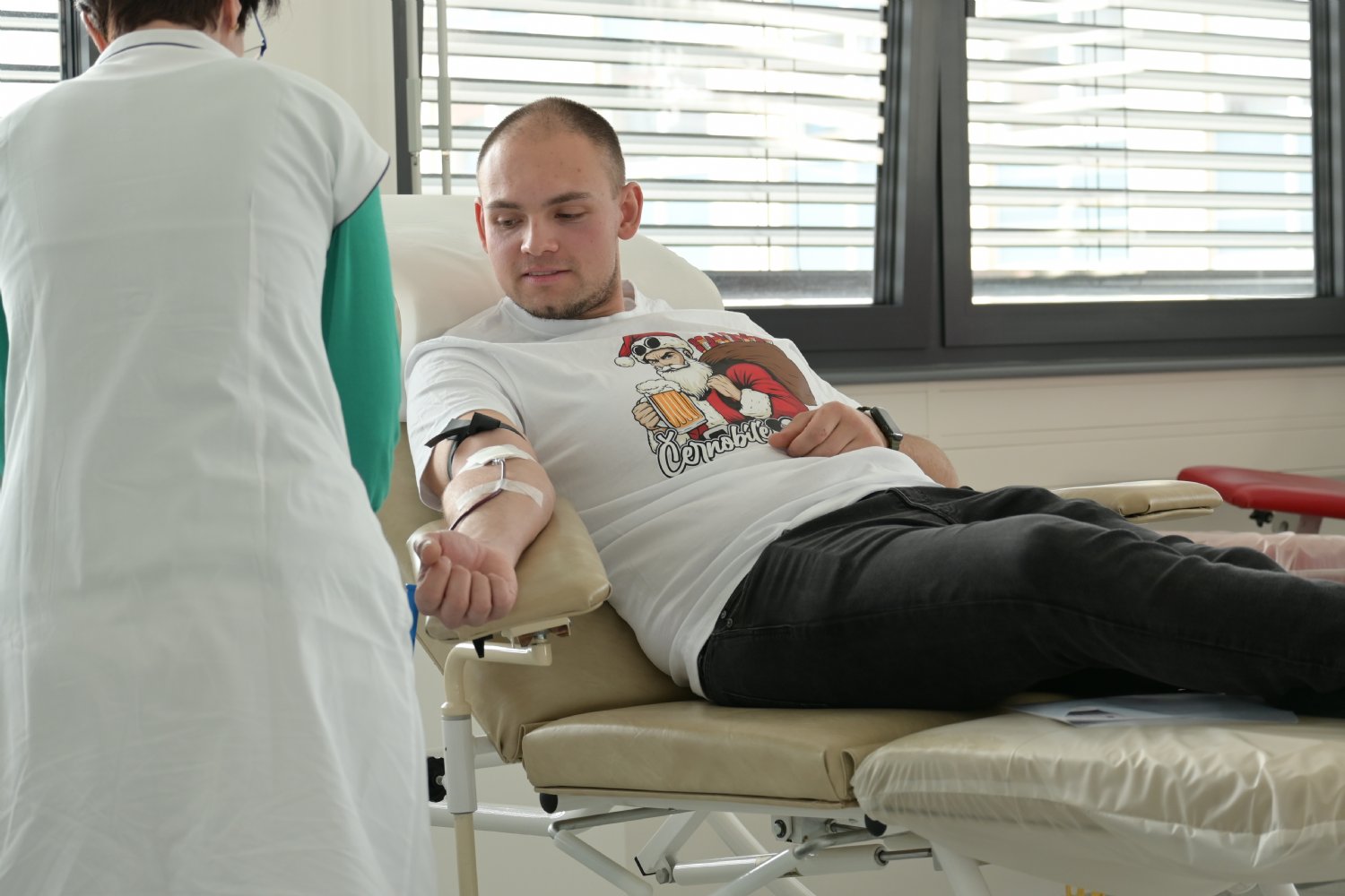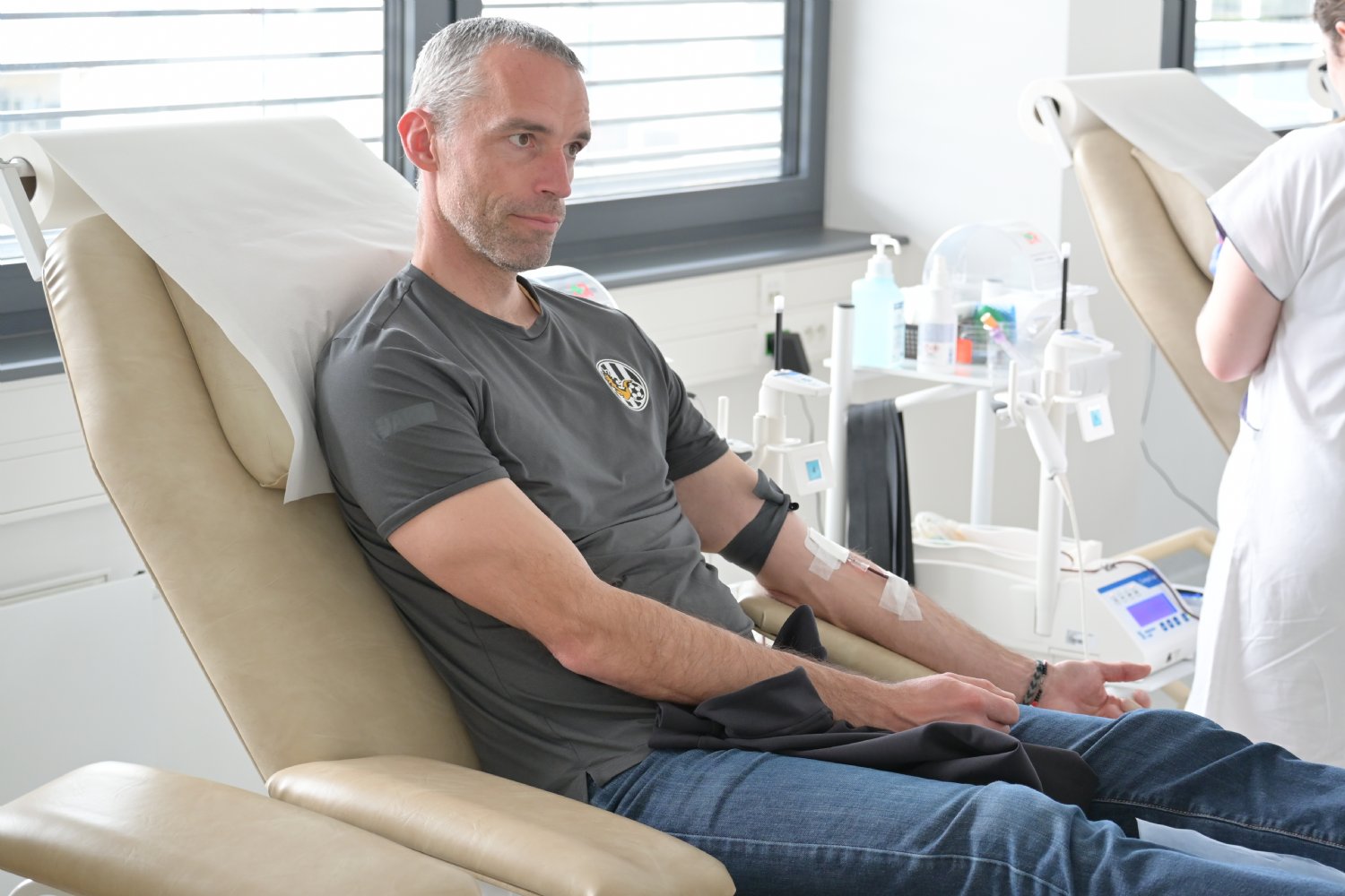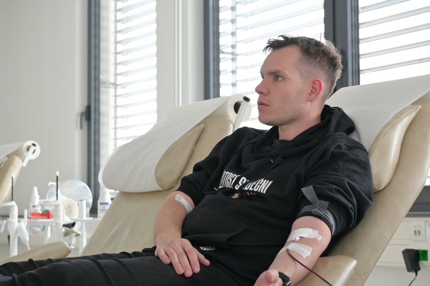 Svůj první odběr absolvoval člen realizačního týmu Votroků – Adrián Rolko. „Chtěl jsem darovat krev, protože věřím tomu, že může pomoct někomu jinému v zásadním okamžiku. Odpovědnost ke společnosti, ve které žijeme, máme všichni. Proto považuju i tuhle akci za velice důležitou,“ hlásí asistent Davida Horejše a dřívější stoper Votroků.