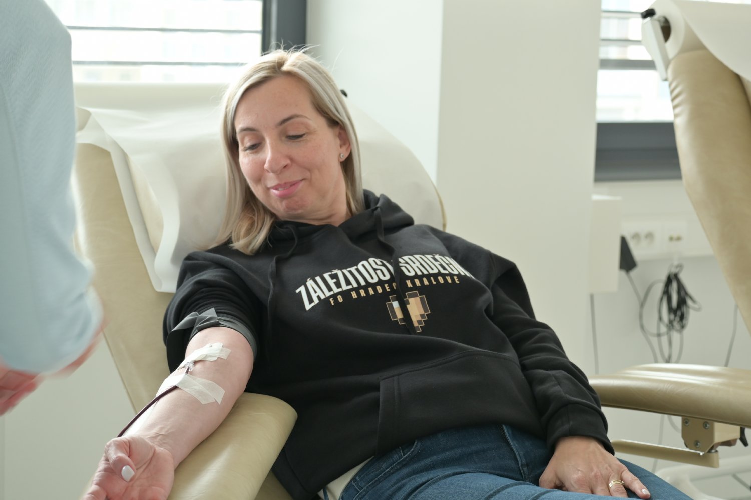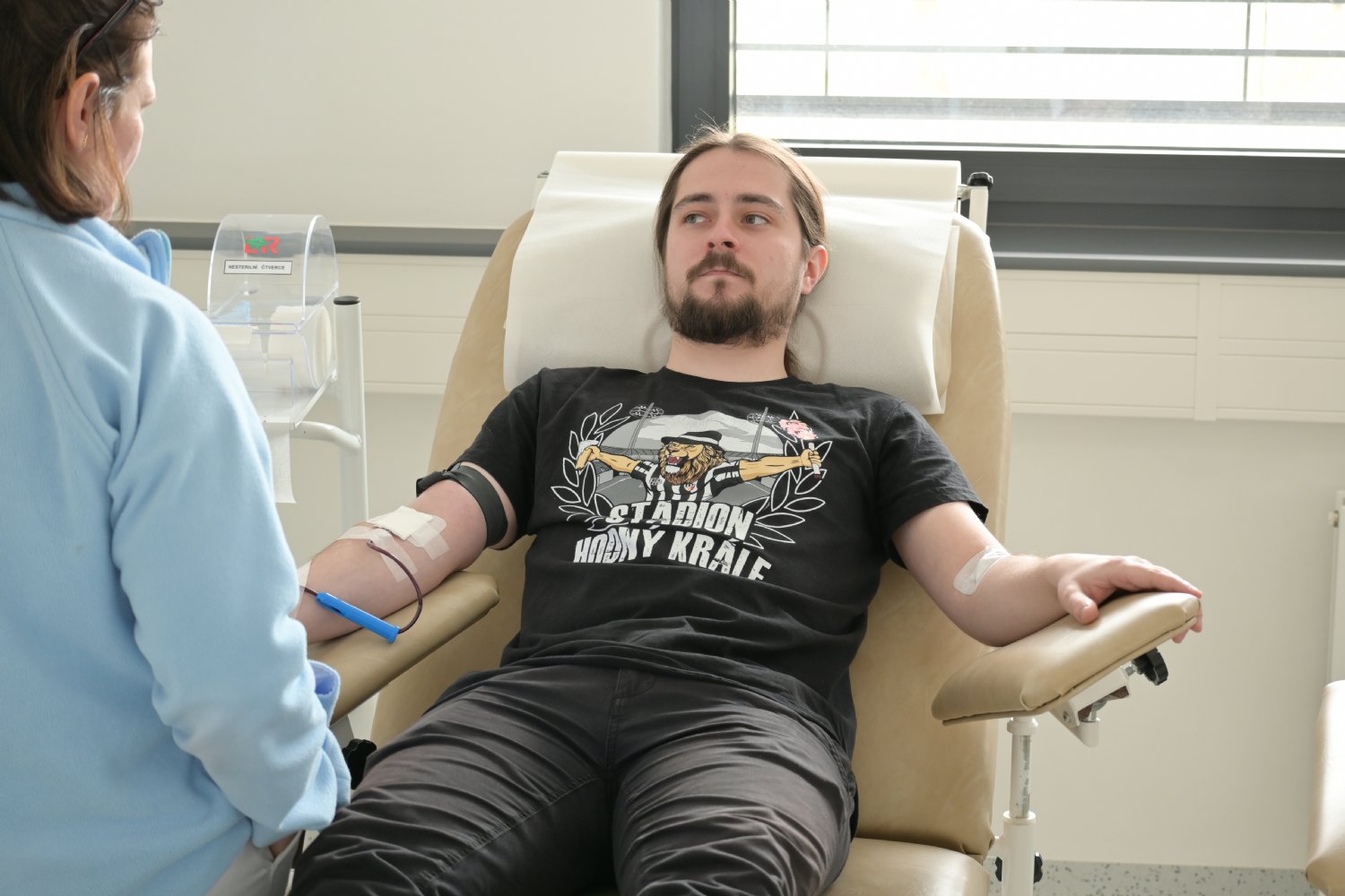 Na Transfuzní oddělení dorazil také kapitán A-týmu FC Hradec Králové – Petr Kodeš. „Je to na dobrou věc, dokáže to zachránit spoustu životů. Jsem nadšený z toho, kolik lidí jde s námi darovat. Mám z toho opravdu velkou radost,“ usmívá se dvaadvacítka Východočechů.