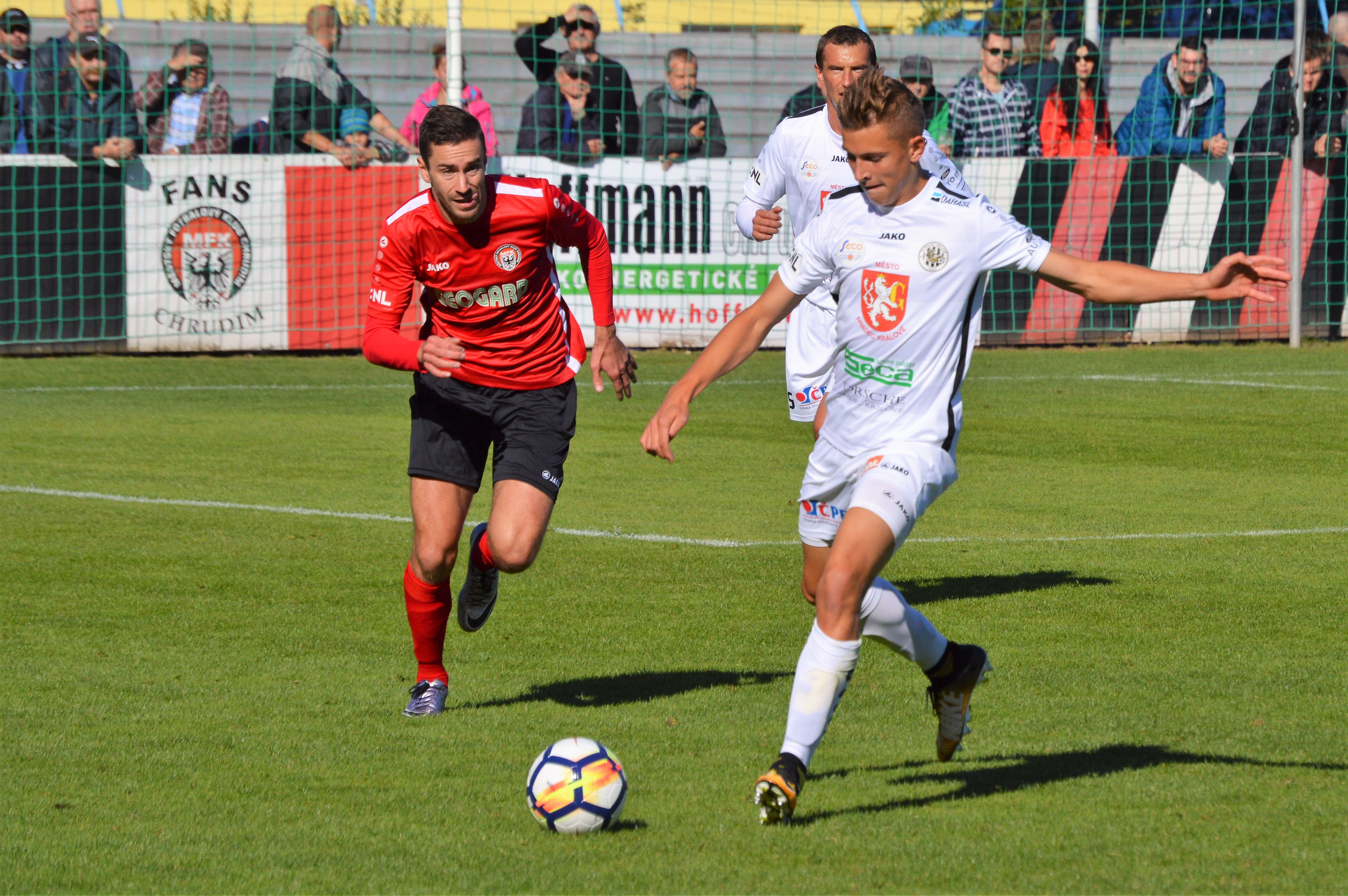 Dvě červené karty, emoce na hřišti i v hledišti a jedna vstřelená branka. Tak vypadalo sobotní derby v Chrudimi. Hradečtí byli v prvním dějství lepším týmem, dobré možnosti měl Zorvan, Ďurděvić nebo Martinec. V 55. minutě byl vyloučen chrudimský Kesner, ale přesilovka se Votrokům nepovedla. Naopak se deset minut před koncem prosadil nečekaně Froněk a zařídil pro Chrudim vítězství.