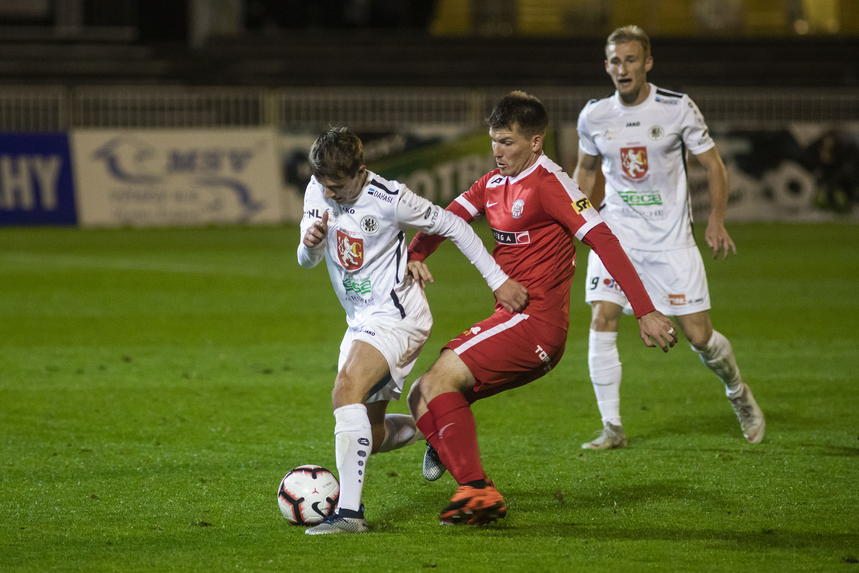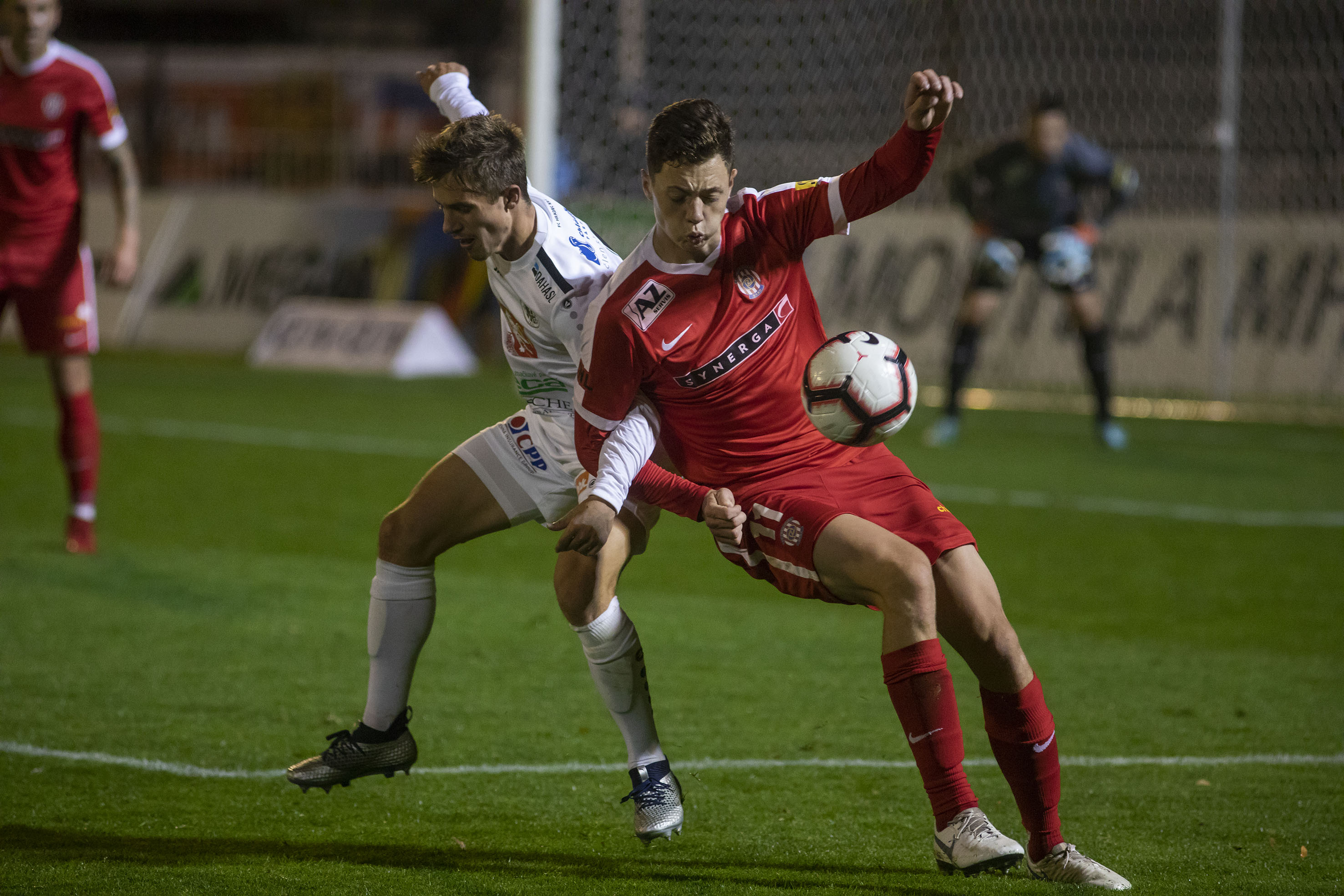 První dějství nabídlo v sychravém počasí vyrovnanou bitvu, ve které byla k vidění především řada soubojů a také standardních situací. Pozorné obrany obou mužstev však plnily své taktické úkoly na jedničku. Plné ruce práce měl brankář Radim Ottmar po pokusu hostujícího Zikla, tvrdou ránu Radim vytěsnil nad. Pak přišla slibná možnost na straně druhé, aktivní Adam Vlkanova se prosmýkl do pokutového území, kde dával ještě pod sebe na Ladislava Martana. Tomu k úspěšnému zakončení chyběl jediný krok.