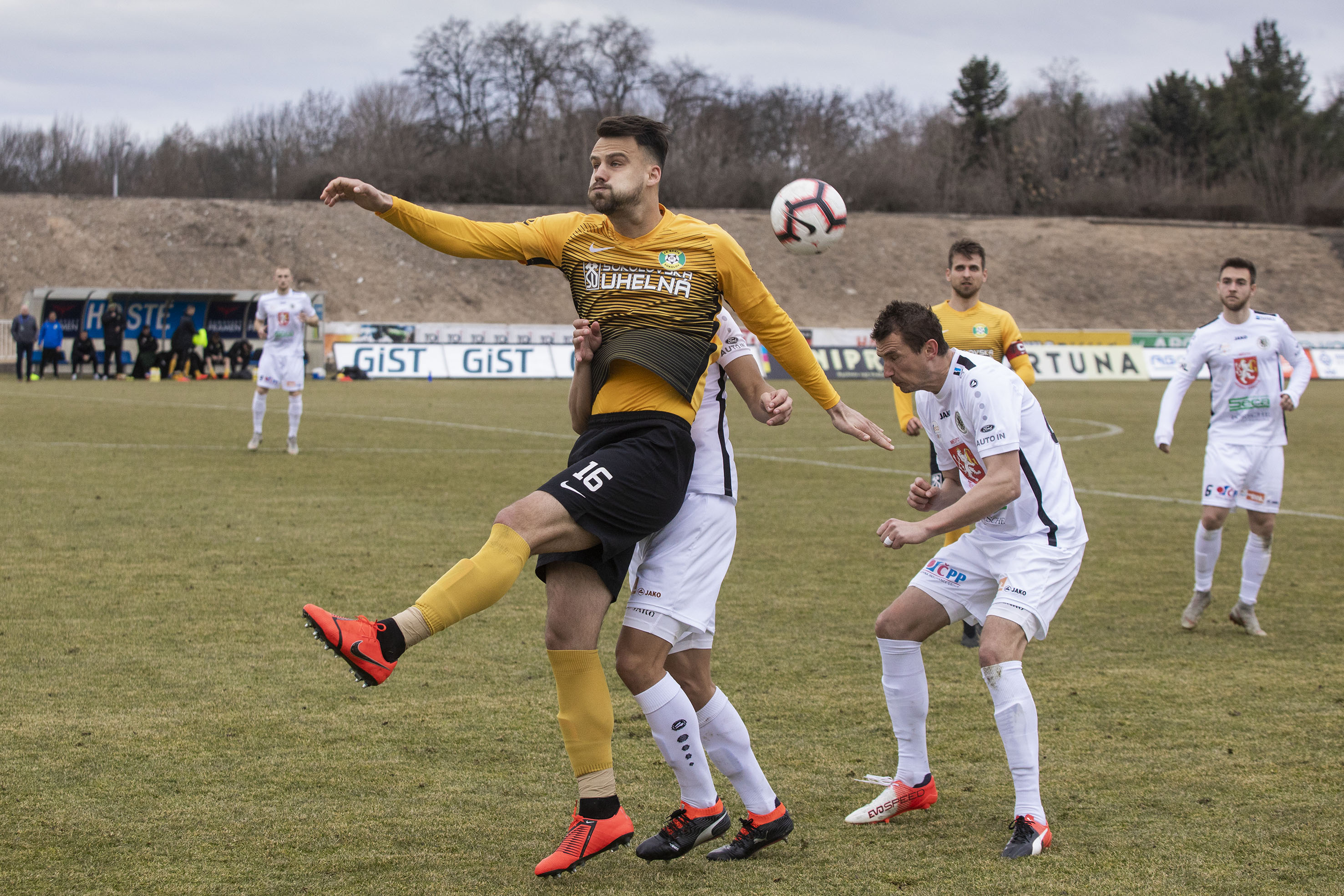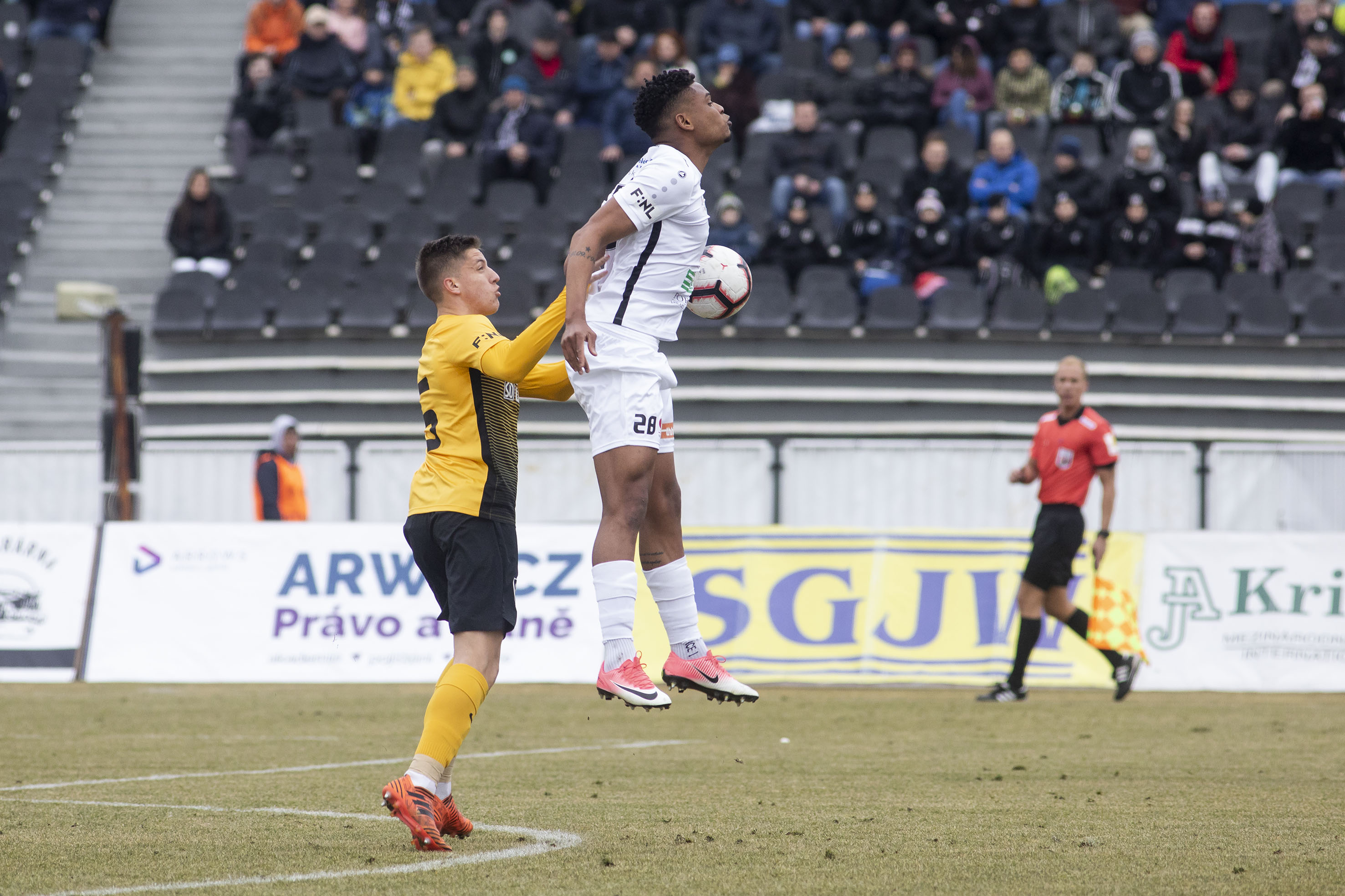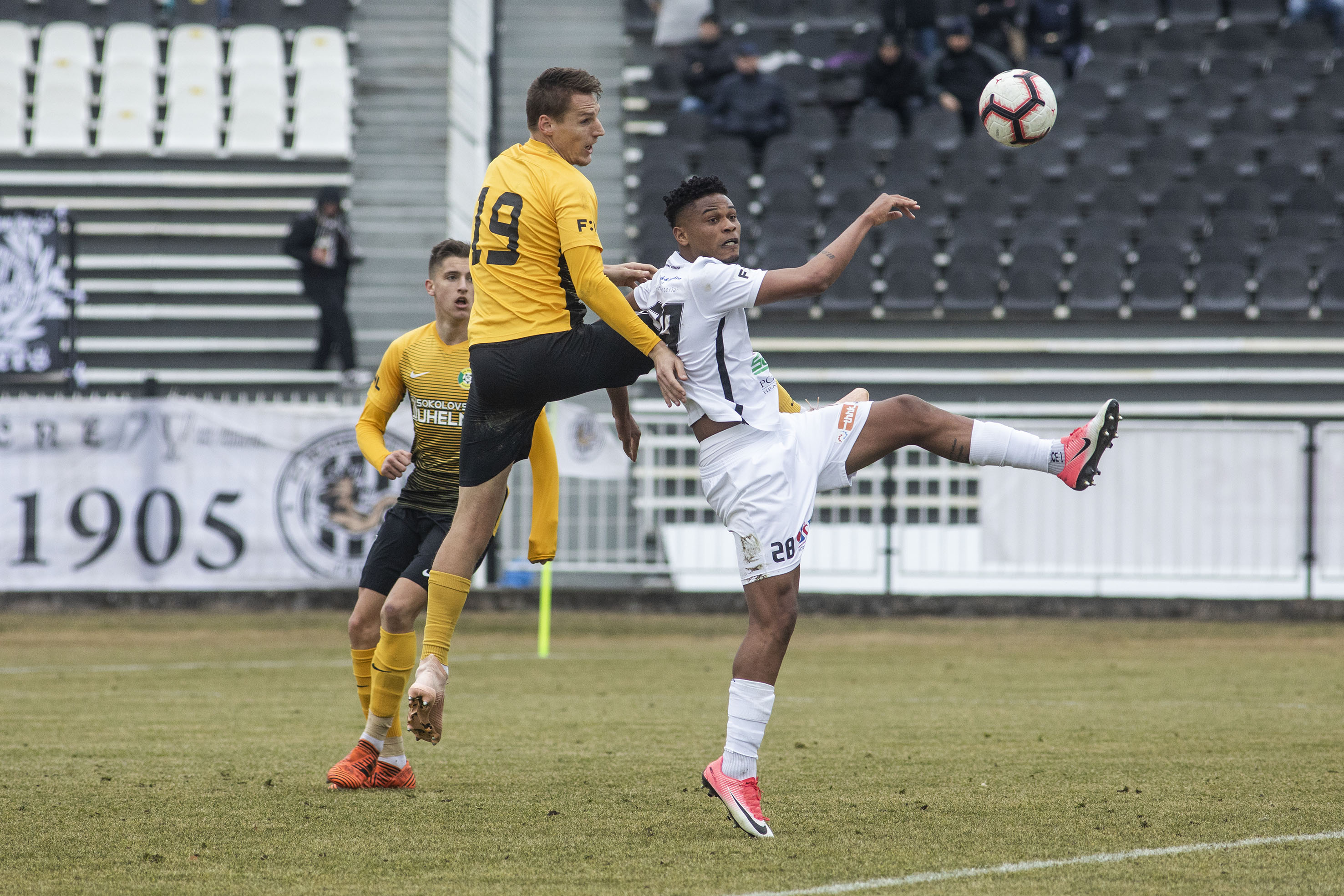 Ve 27. minutě si Votroci vytvořili další velký závar, ale Adam Vlkanova nedokázal propasírovat míč mezi tyče. O chvilku později se do pokutového území dostal Ďurděvič, ale v poslední možné chvíli mu míč z kopačky ukradl jeden z hostujících obránců. Hosté se připomněli ve 37. minutě, kdy musel po rohovém kopu zasáhnout Radim Ottmar. Střela Fahrudina Ďurděviče z konce první půle mířila bohužel nad. V samotném nastavení pak mohl zakončit hostující kapitán Glaser, ale jeho pokusu z vápna scházela razance.