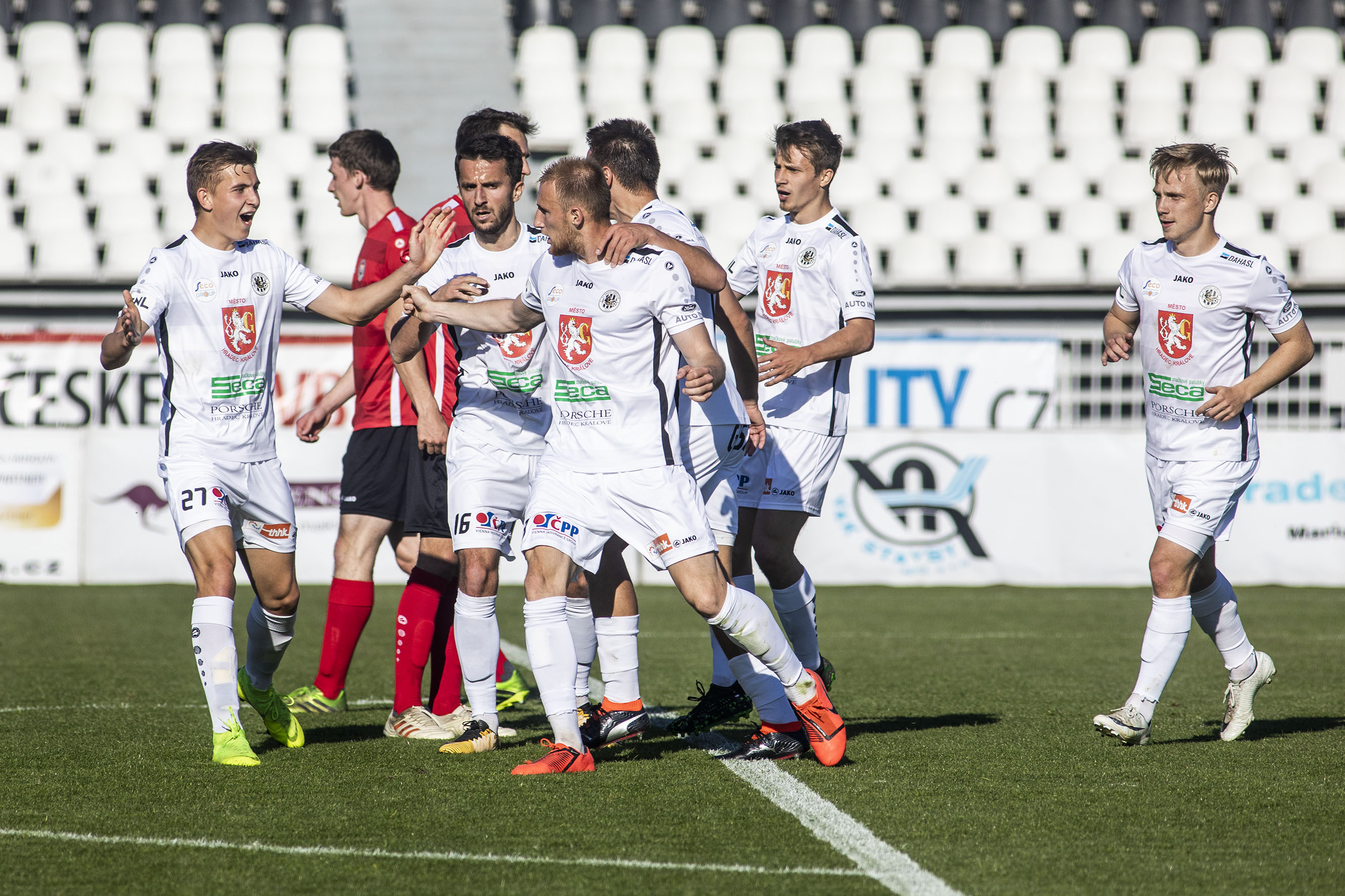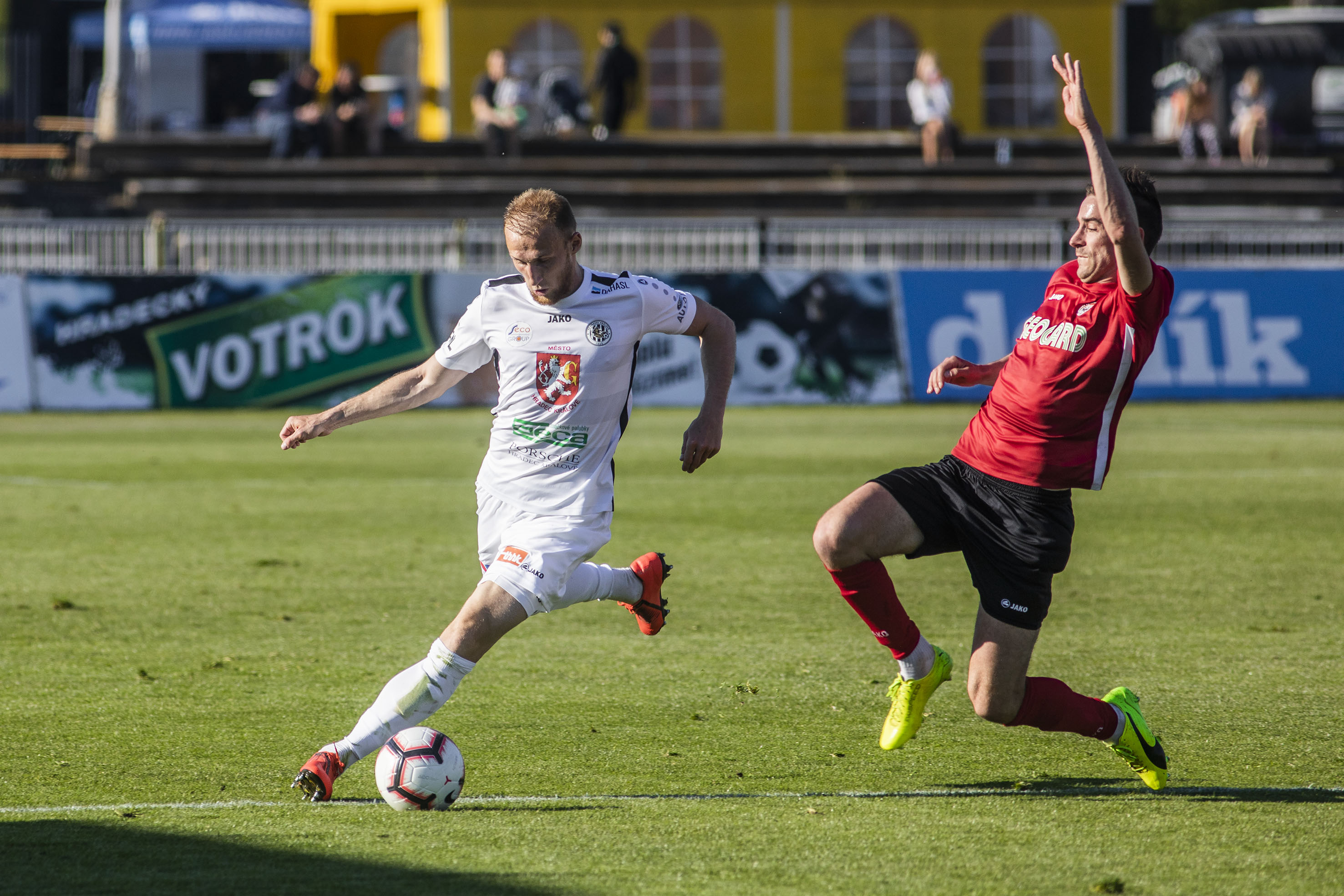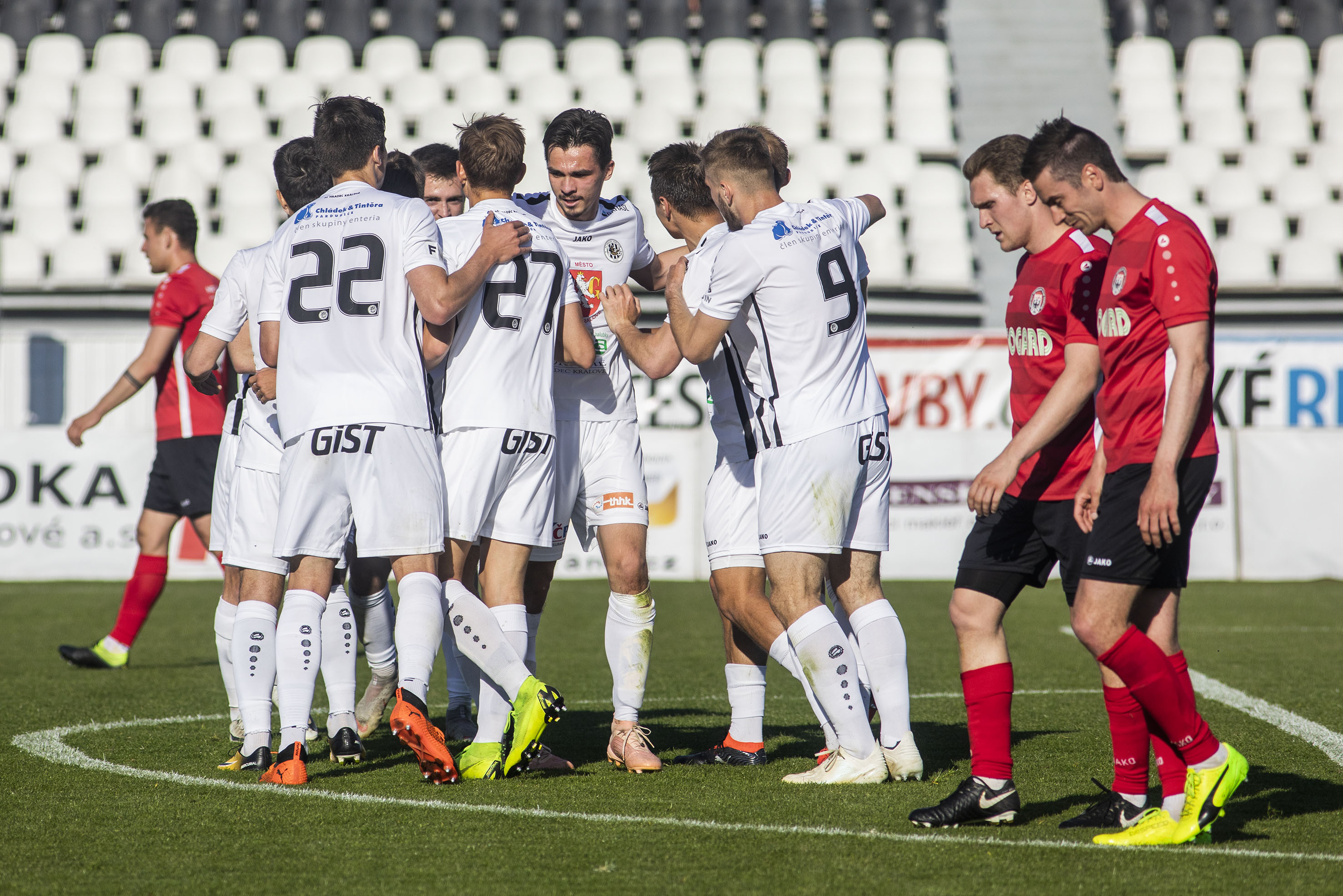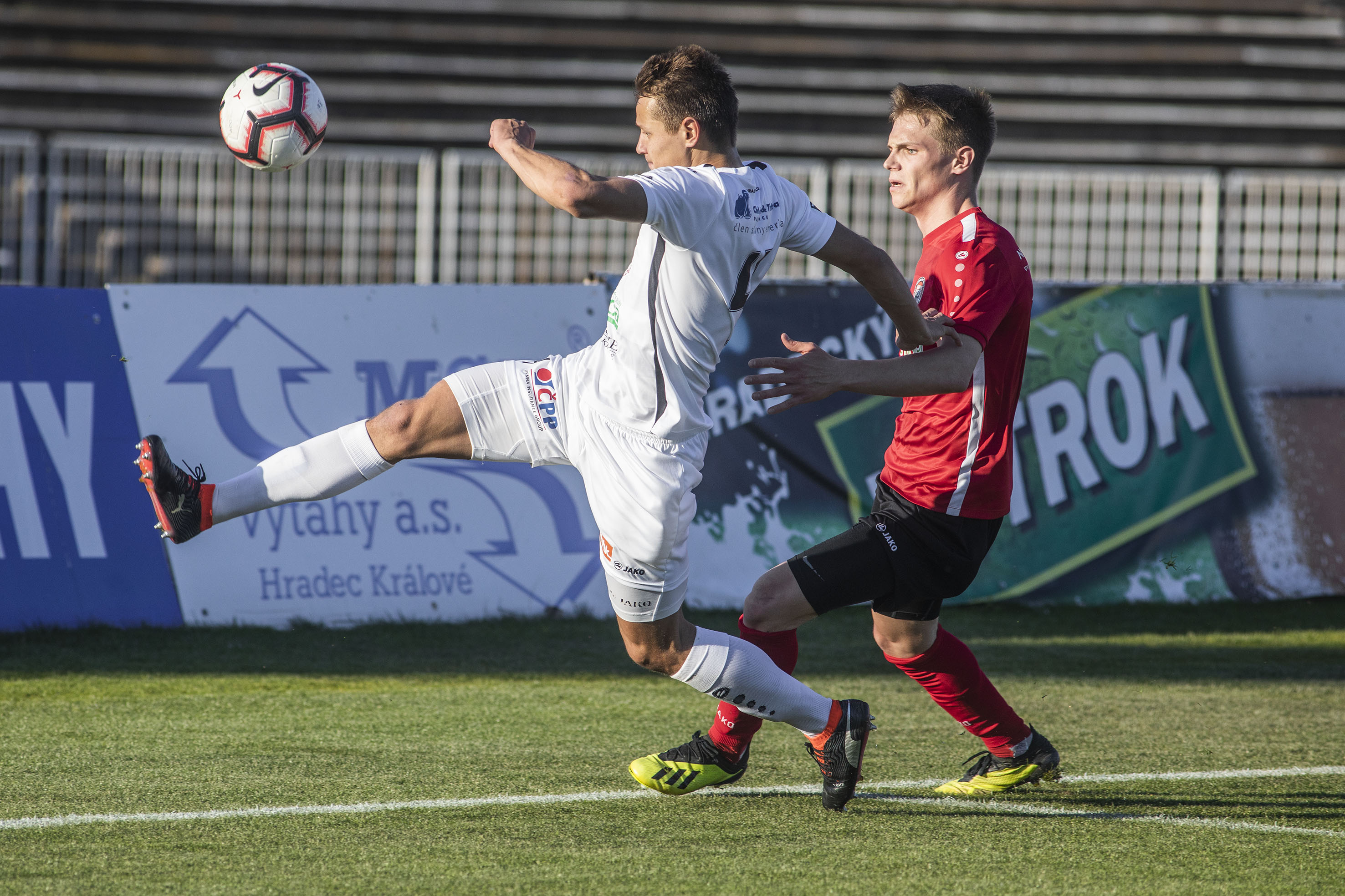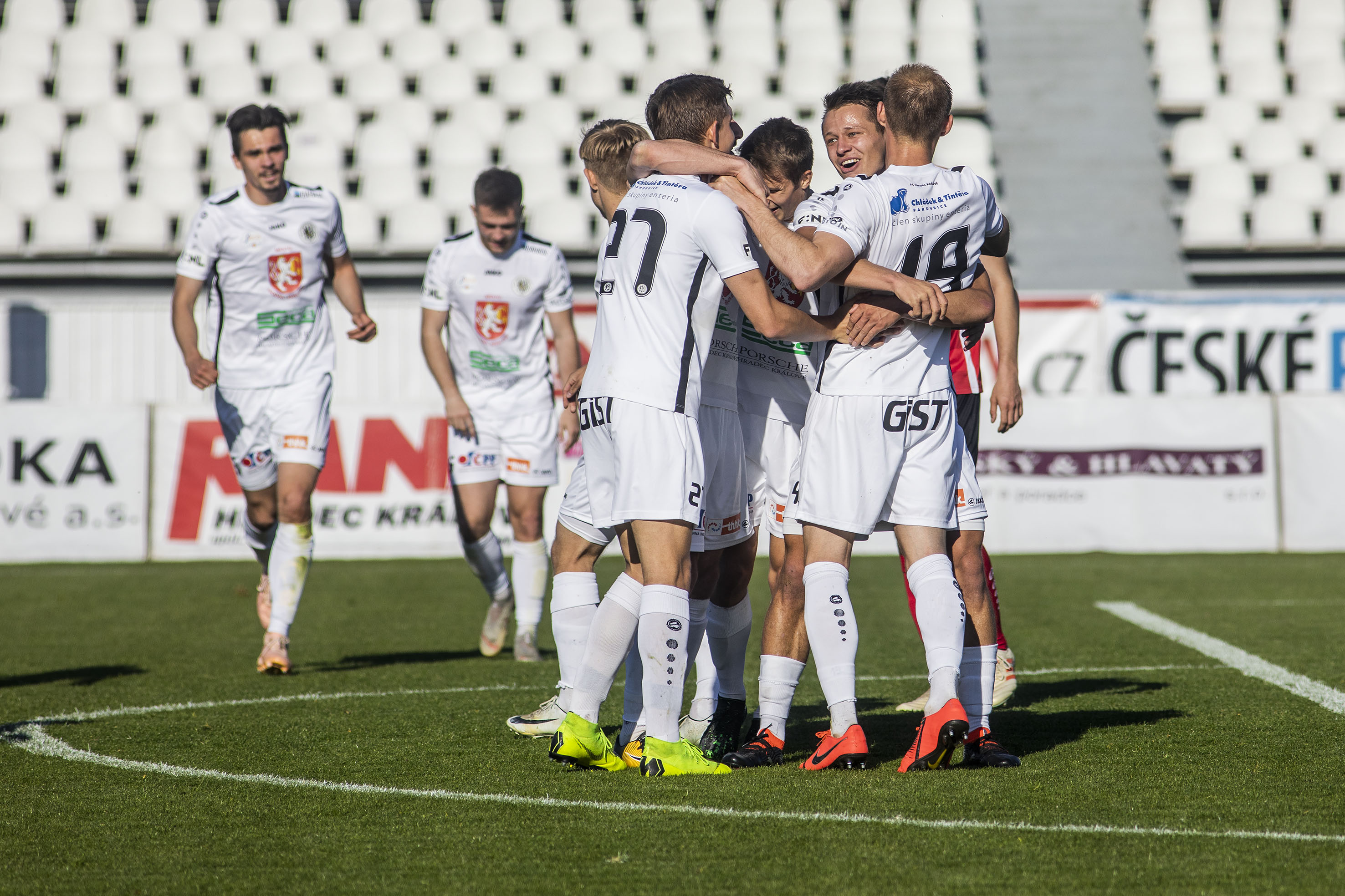 Votroky vedení uklidnilo a hru měli pod kontrolou. Dopředu jejich akcím chyběla větší přesnost, ale hrozby protiútoků hostů dokázali eliminovat v zárodku. Druhou trefu vybojovali Adam Vlkanova s Jakubem Šípkem. Mládežnický reprezentant, který na podzim hostoval právě v Chrudimi, vydoloval míč, který do vápna dostal Vlkanova, a přesnou střelou dal Hradci dvougólové vedení.