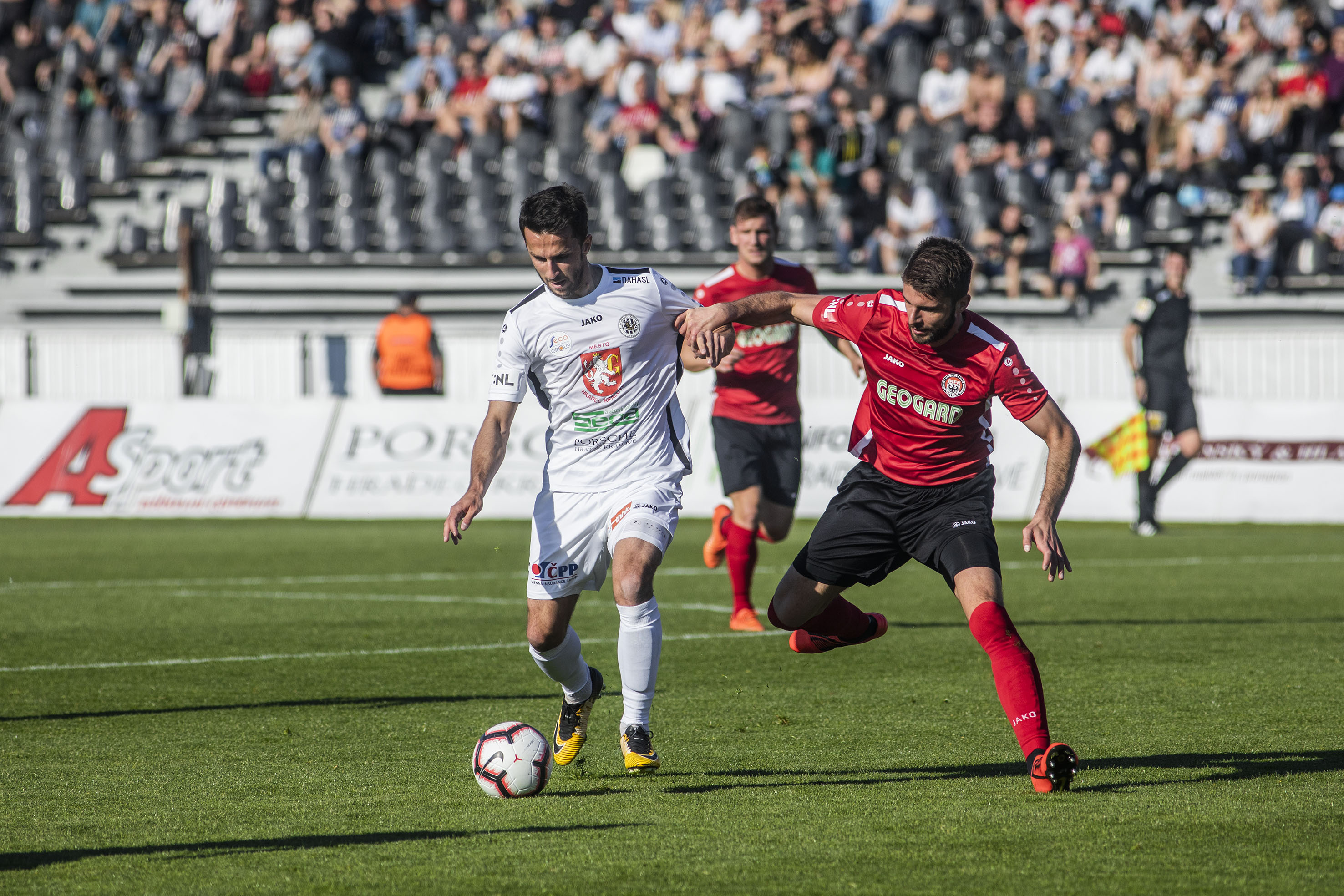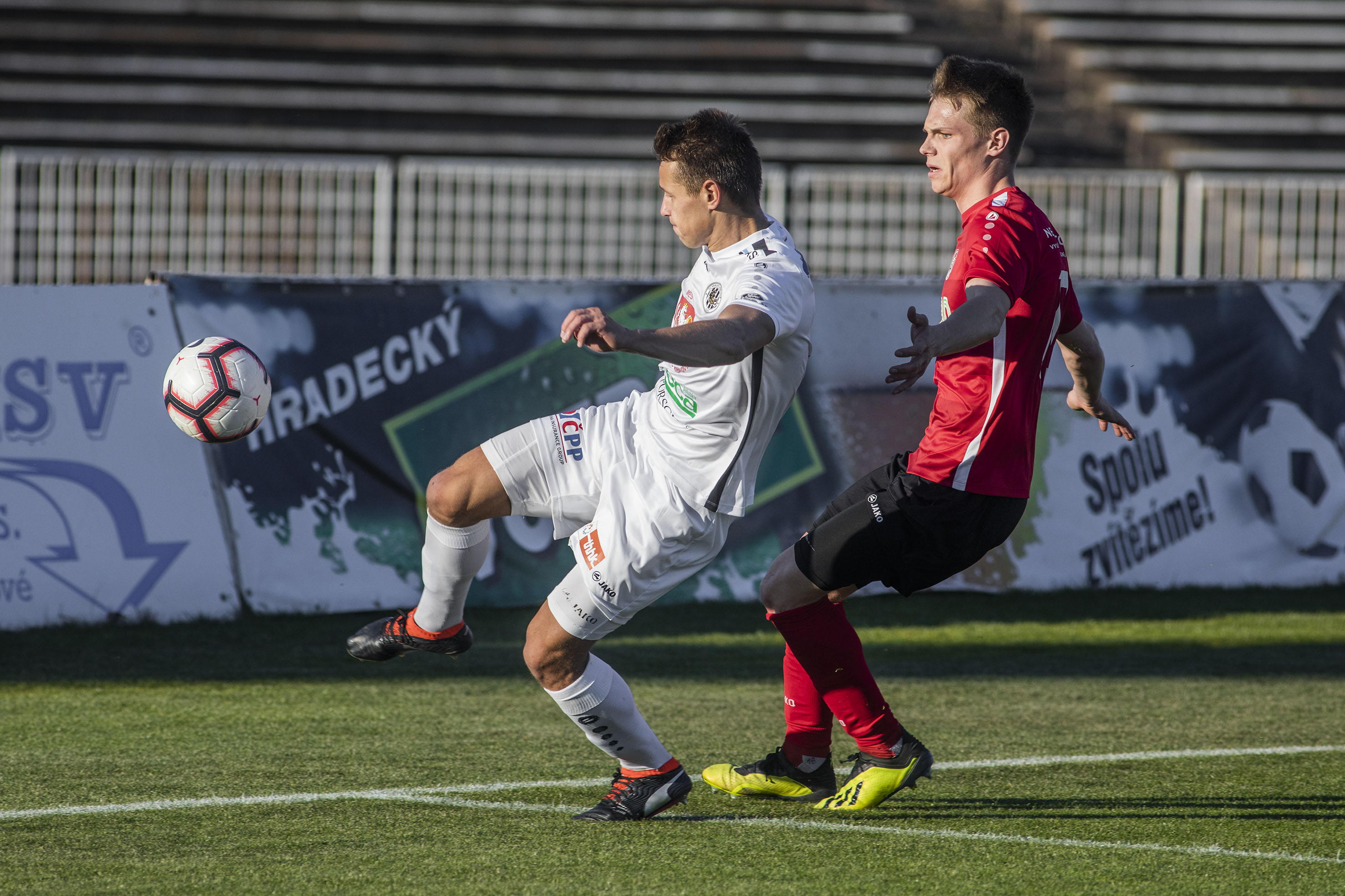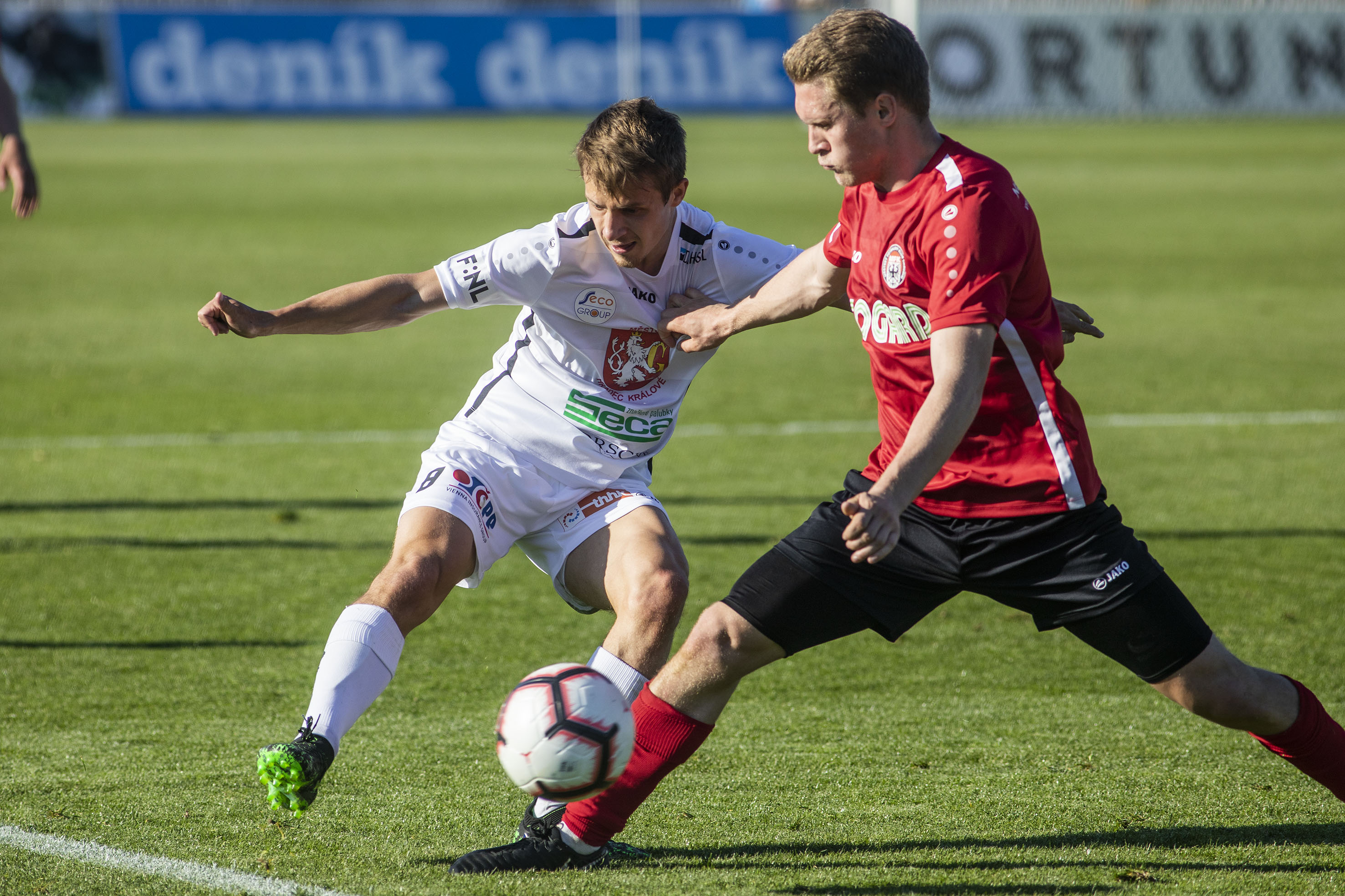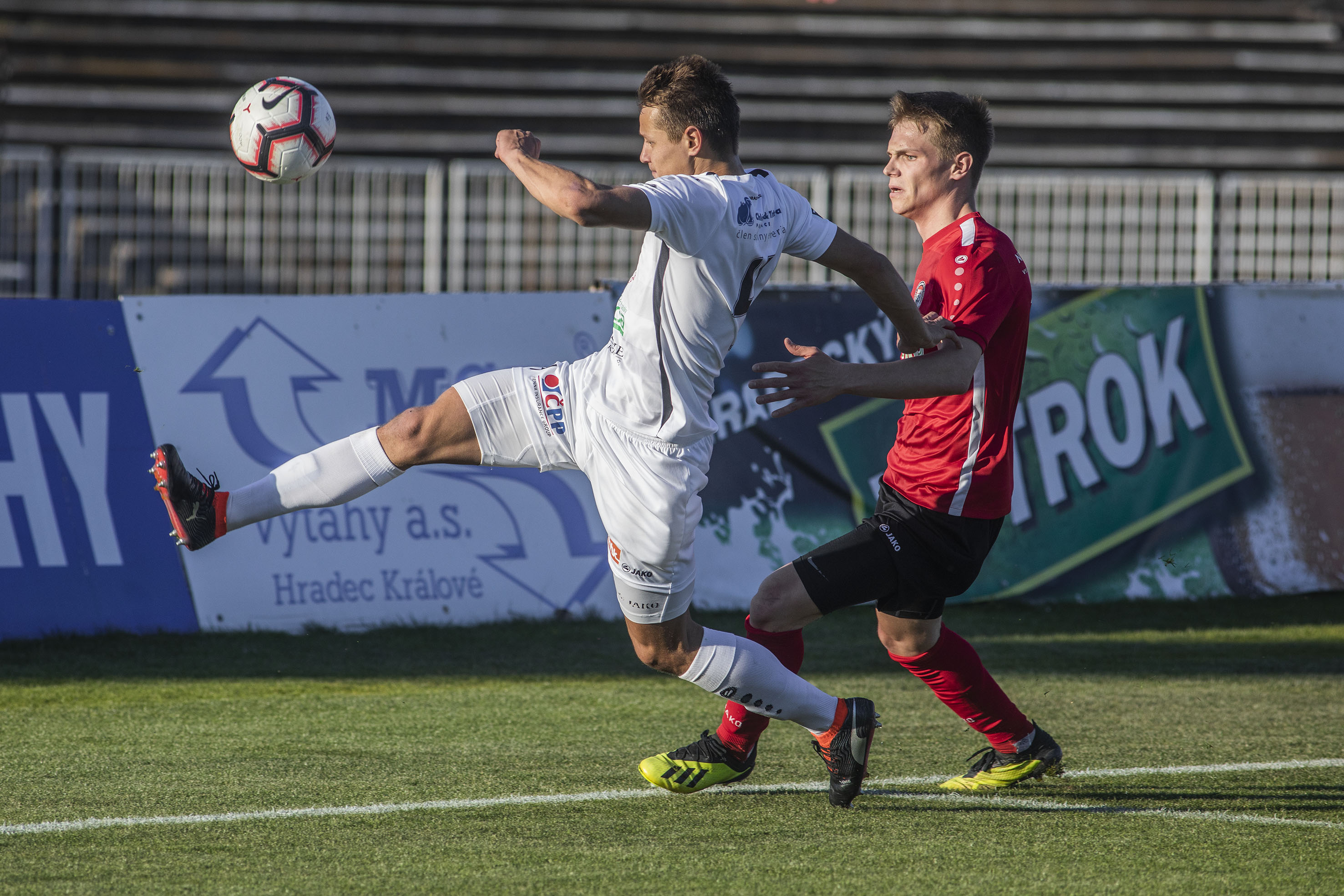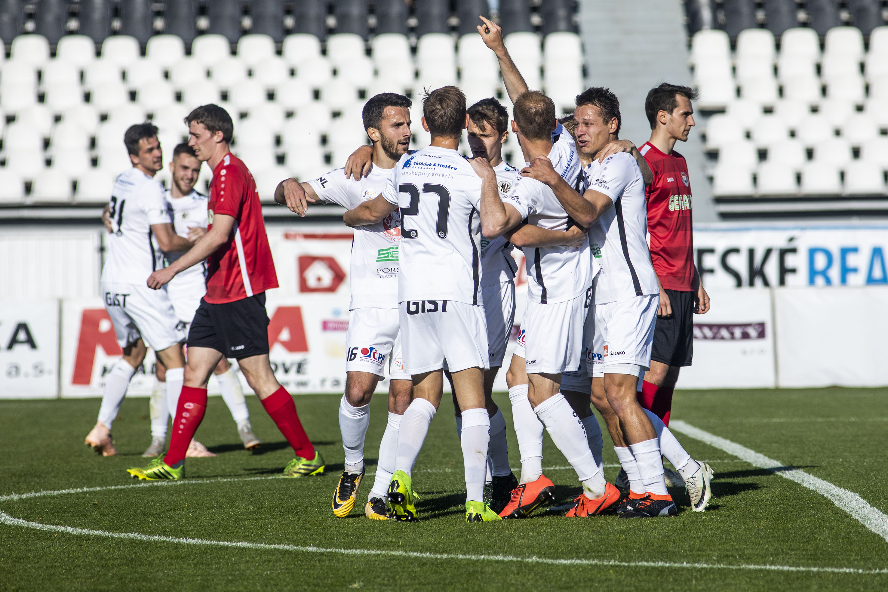 Votroky vedení uklidnilo a hru měli pod kontrolou. Dopředu jejich akcím chyběla větší přesnost, ale hrozby protiútoků hostů dokázali eliminovat v zárodku. Druhou trefu vybojovali Adam Vlkanova s Jakubem Šípkem. Mládežnický reprezentant, který na podzim hostoval právě v Chrudimi, vydoloval míč, který do vápna dostal Vlkanova, a přesnou střelou dal Hradci dvougólové vedení.