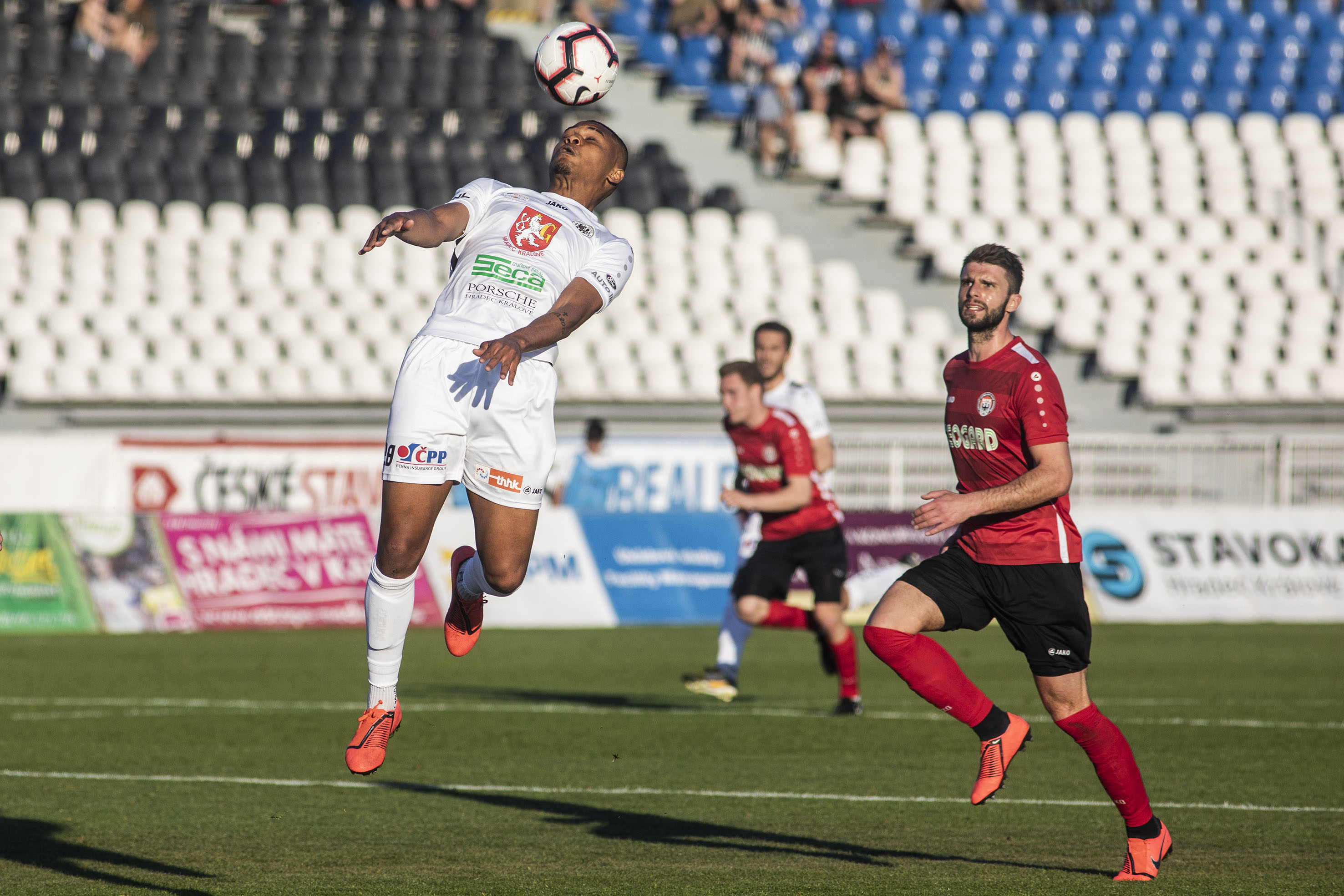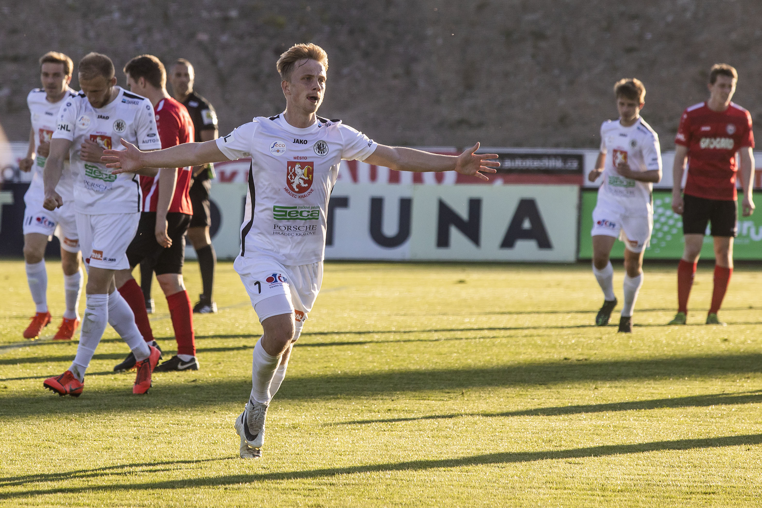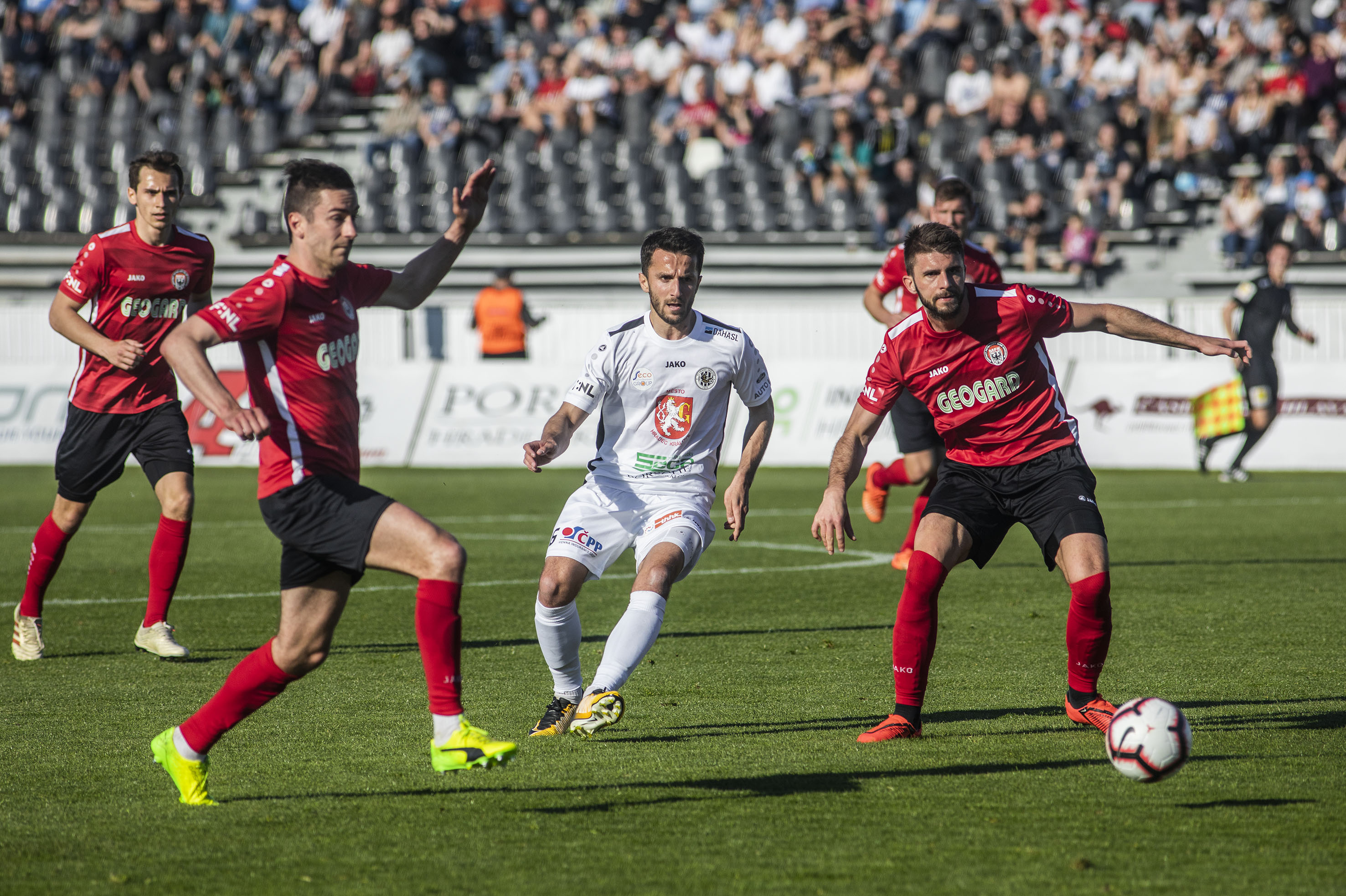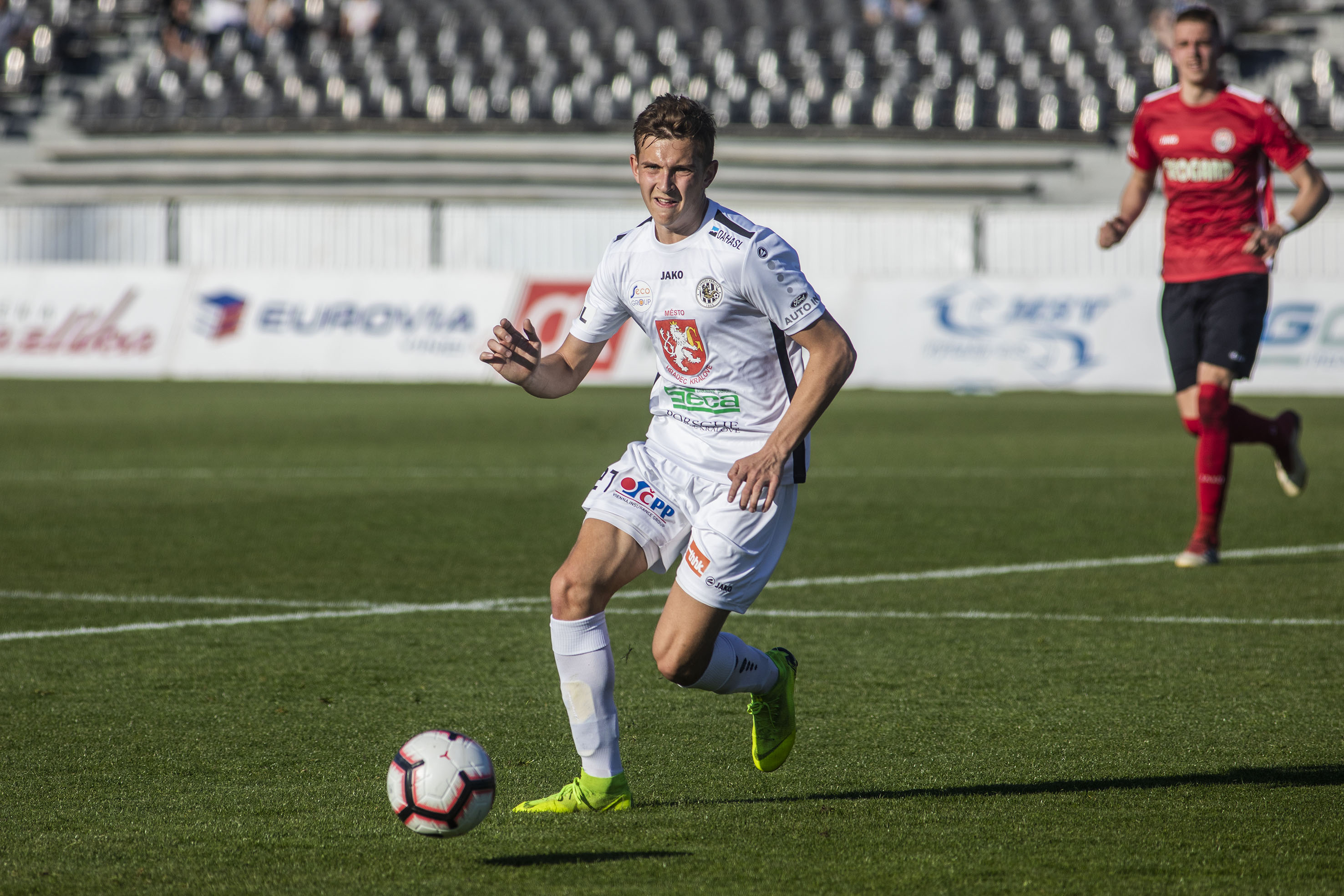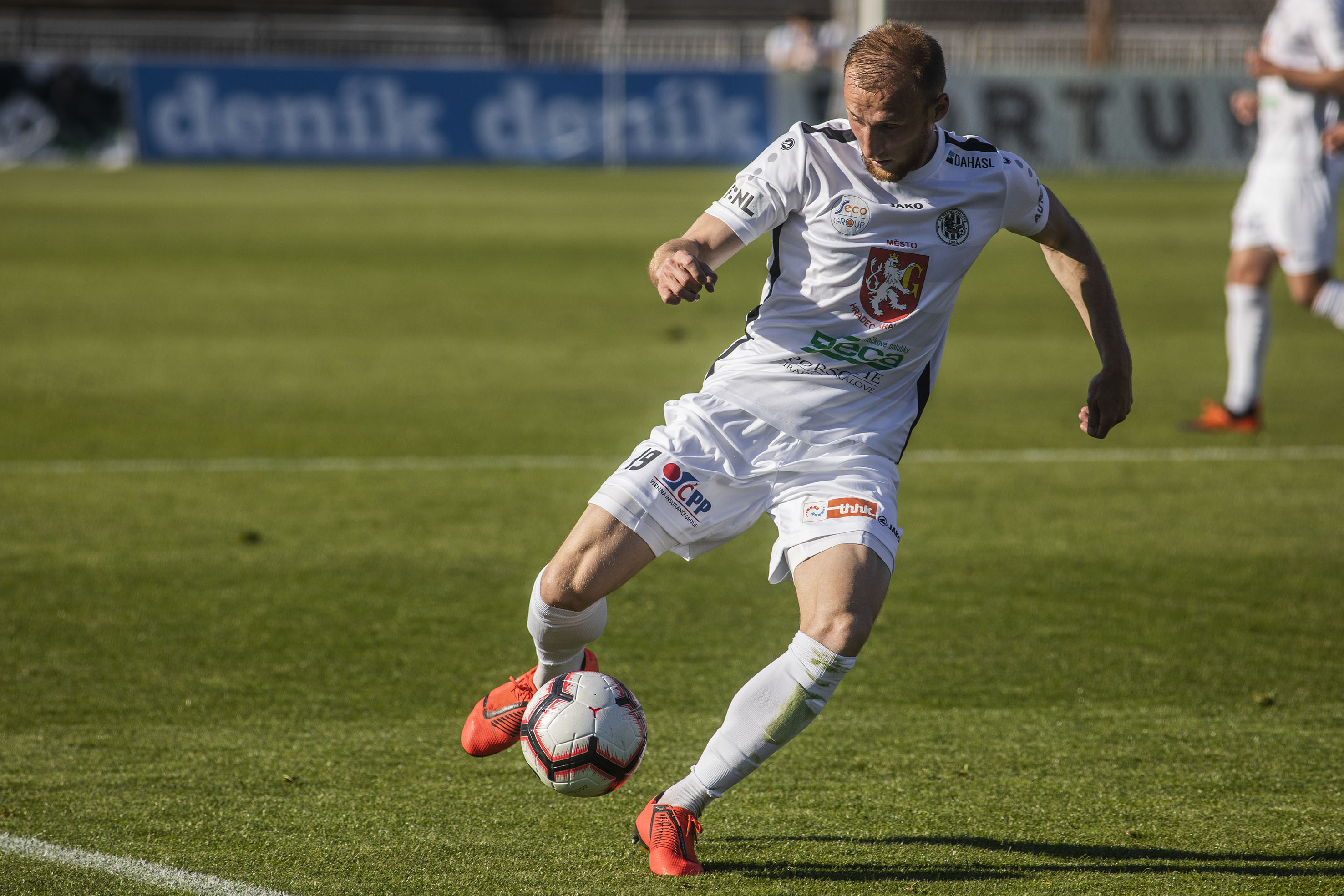 Votroky vedení uklidnilo a hru měli pod kontrolou. Dopředu jejich akcím chyběla větší přesnost, ale hrozby protiútoků hostů dokázali eliminovat v zárodku. Druhou trefu vybojovali Adam Vlkanova s Jakubem Šípkem. Mládežnický reprezentant, který na podzim hostoval právě v Chrudimi, vydoloval míč, který do vápna dostal Vlkanova, a přesnou střelou dal Hradci dvougólové vedení.