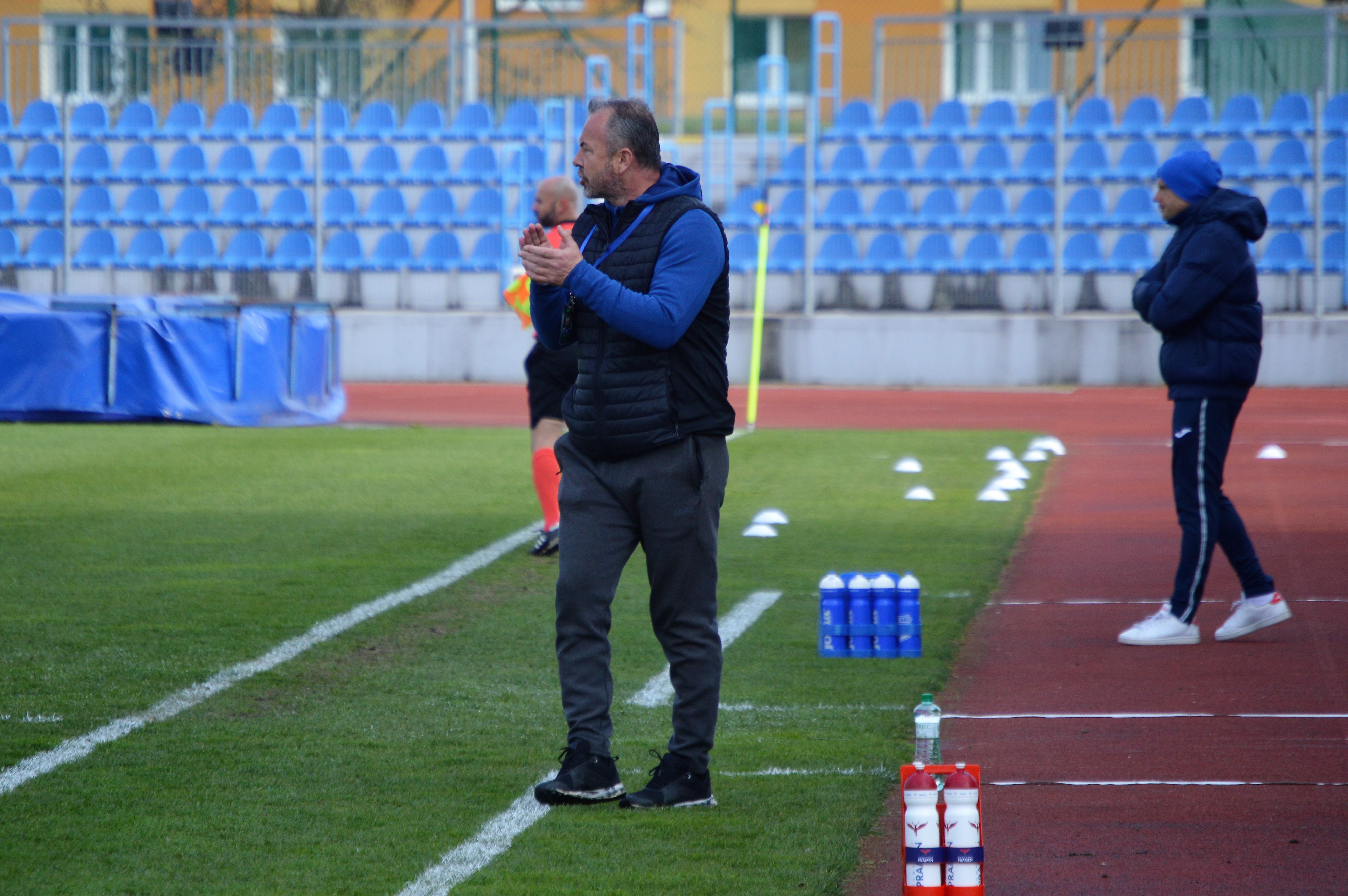 Za silného povětří byl úvod utkání z obou stran opatrný. Na první slibnou možnost jsme si museli počkat do 32. minuty, kdy se k centru z pravé strany dostal Denis Donát, míč propadl až na Adama Vlkanovu, který z úhlu tvrdě vypálil. Brankář Tvrdoň měl plné ruce práce. O pár minut později střílel z vápna Pavel Dvořák, míč tečoval ještě Daniel Vašulín, ale domácí Tvrdoň pohotově vyrazil a poradil si i s následným závarem.