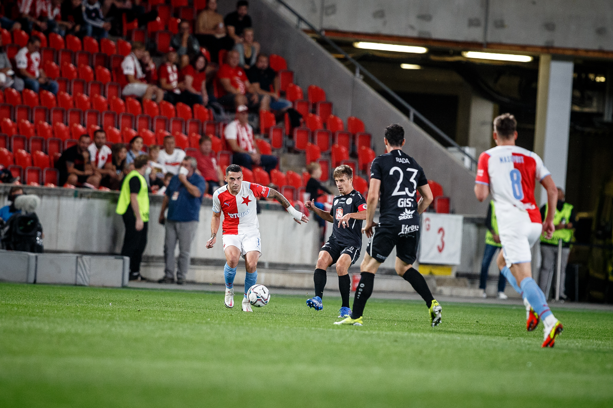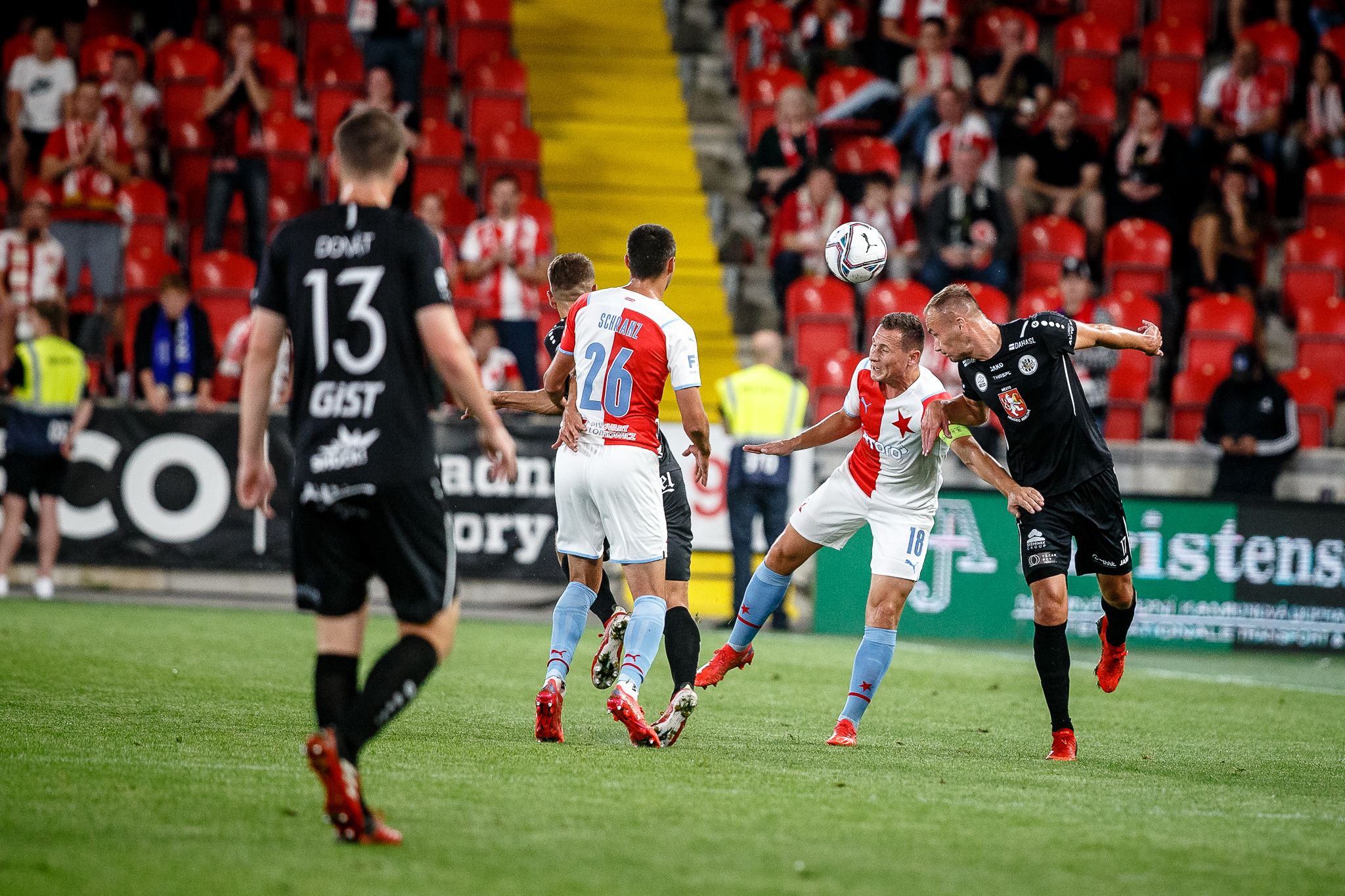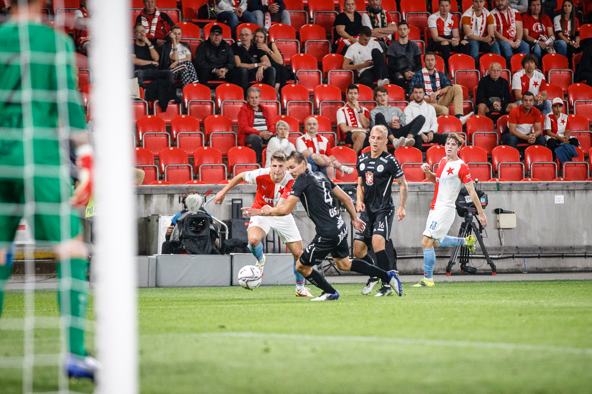Tým s červenou hvězdou ve znaku dostal ve 27. minutě zajímavou příležitost v podobě přímého kopu v blízkosti pokutového území Východočechů. Za Fendrichem to jen zašumělo poté, co míč ze Stanciovy kopačky jen o desítky centimetrů minul pravou tyč.