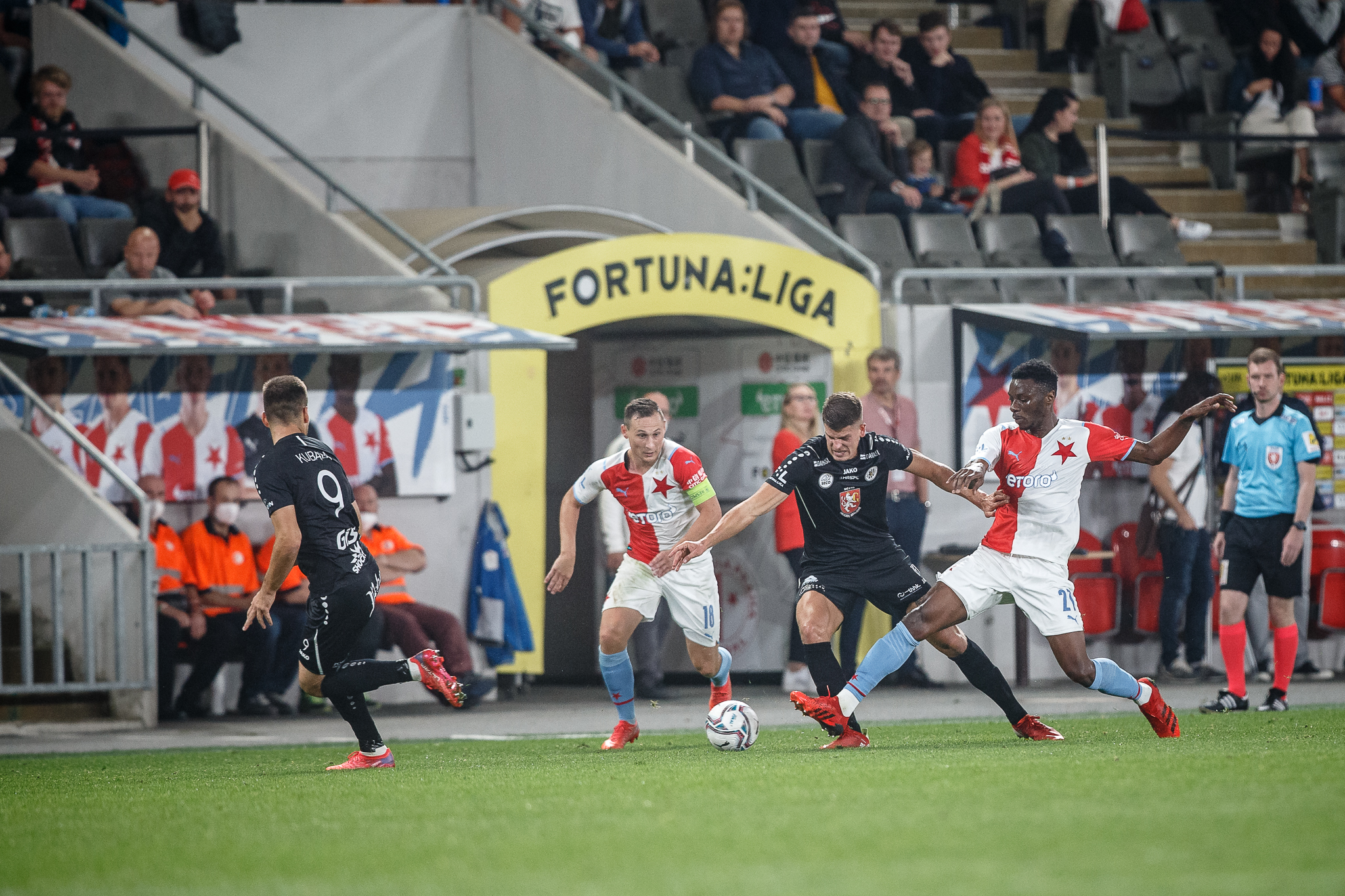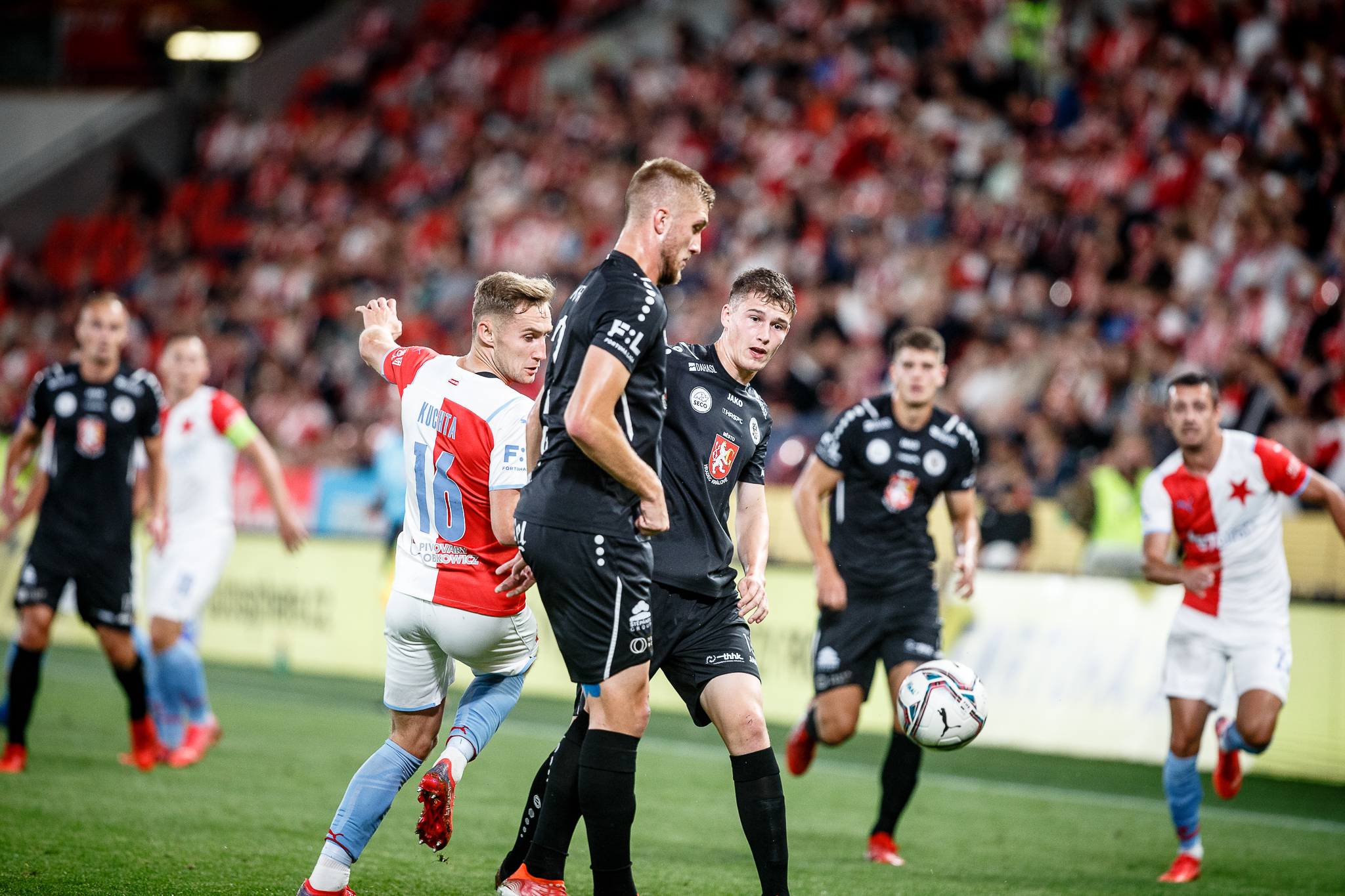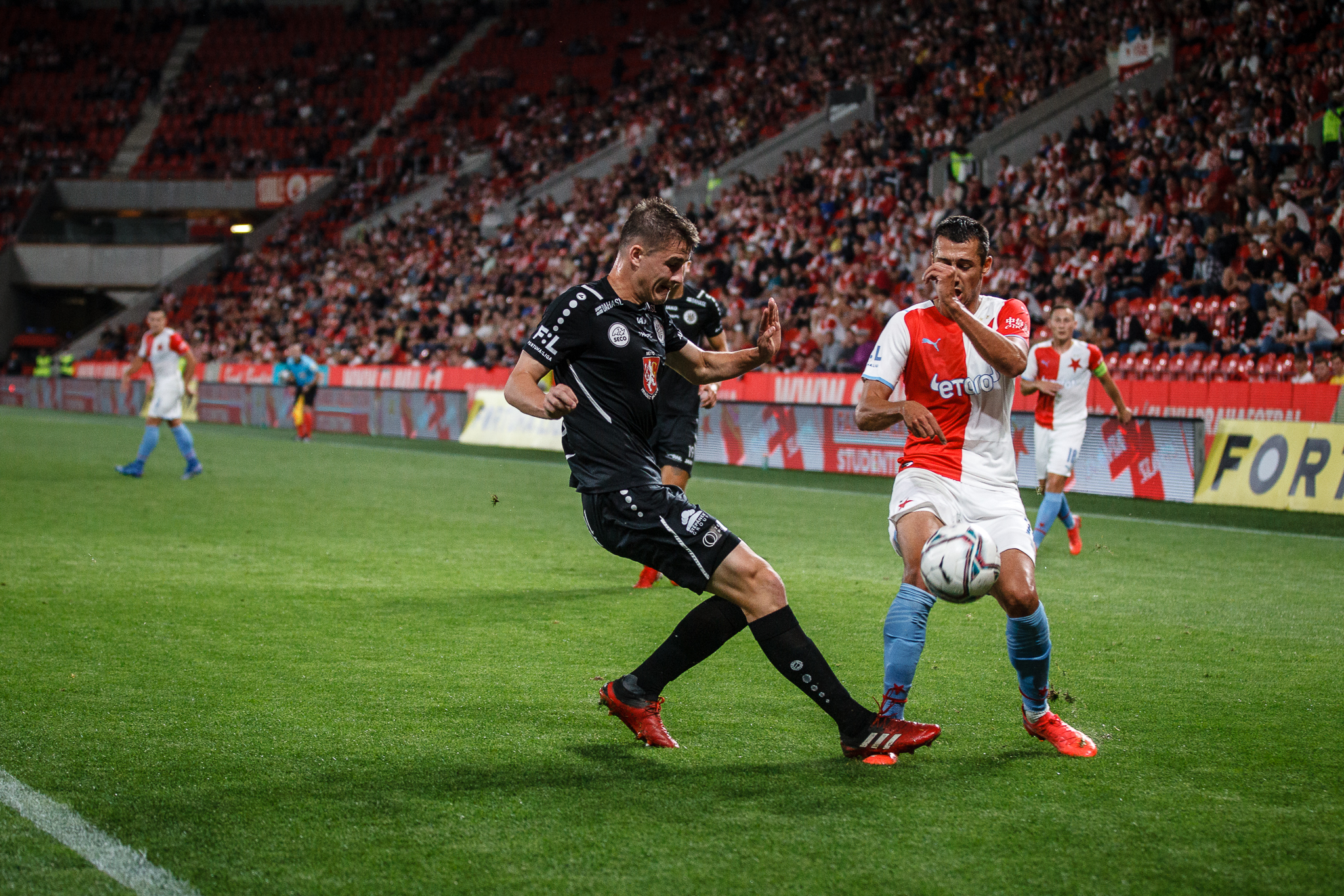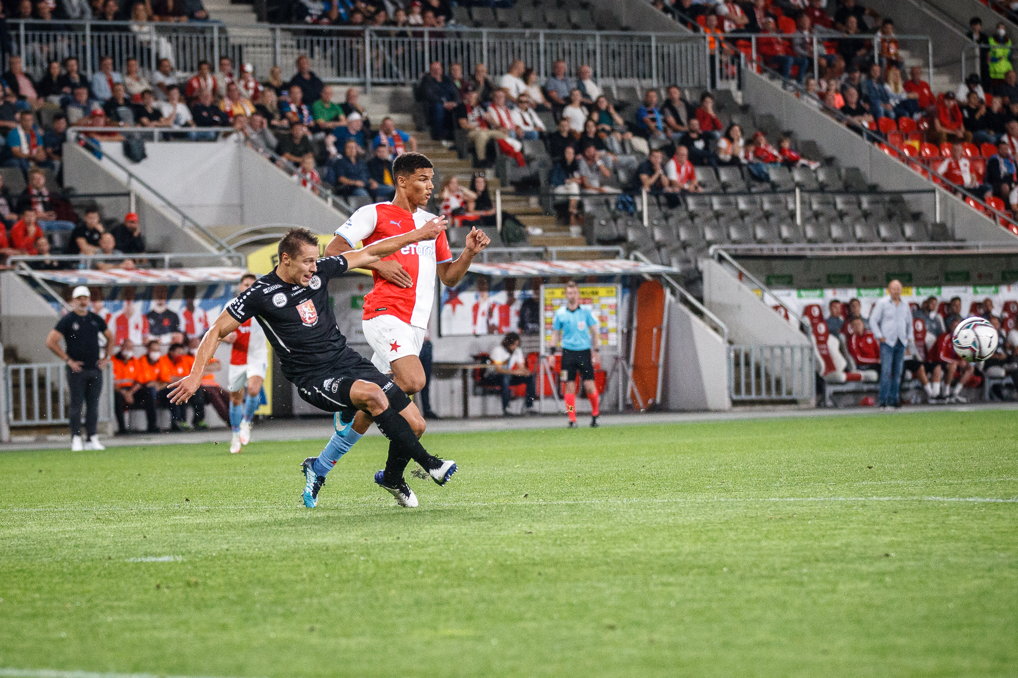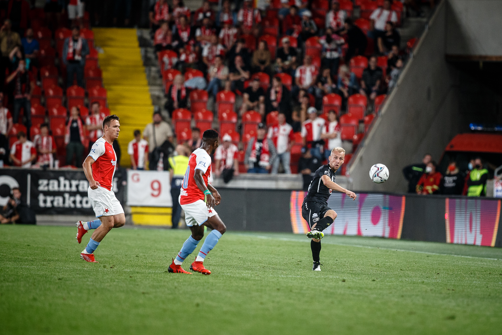 Votroci nastoupili v 9. kole FORTUNA:LIGY na půdě úřadujícího mistra proti Slavii. Zkraje zápasu byla k vidění spíše opatrná hra a první chyba, bohužel pro hradecké, znamenala první vstřelený gól do jejich sítě. Fendrich neudržel Ševčíkův prudký centr, k míči se jako první dostal Jan Kuchta a ten už měl snadnou pozici pro zakončení – 1:0.