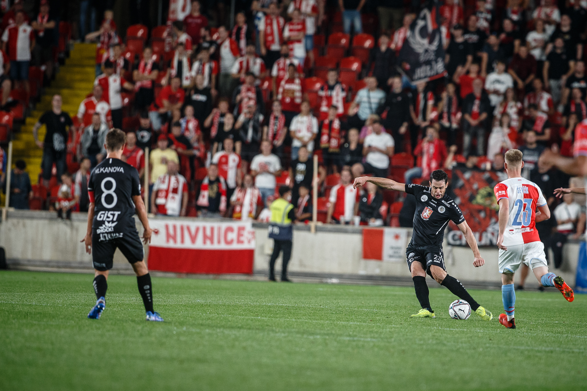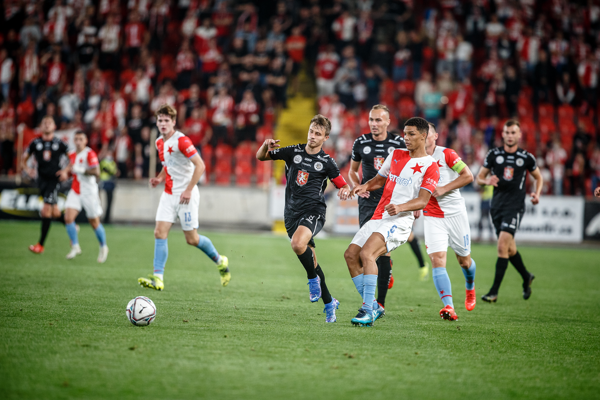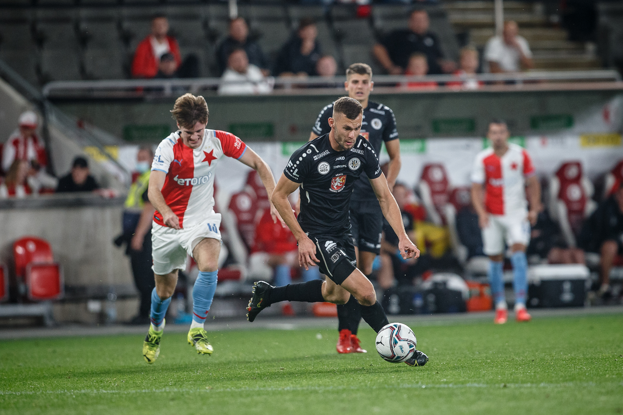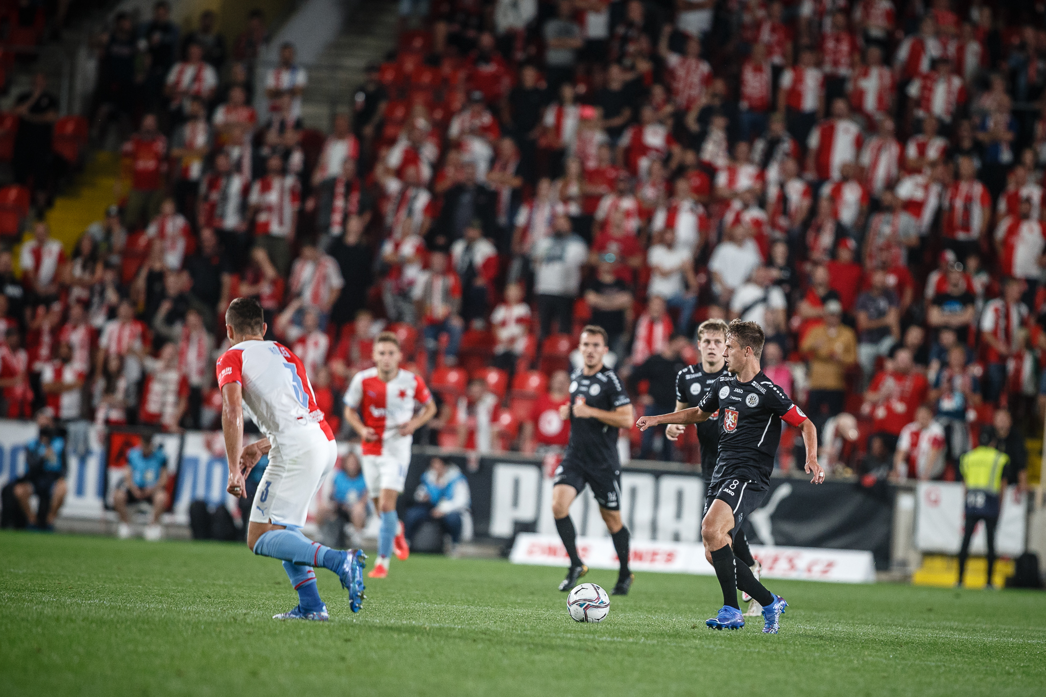 Votroci nastoupili v 9. kole FORTUNA:LIGY na půdě úřadujícího mistra proti Slavii. Zkraje zápasu byla k vidění spíše opatrná hra a první chyba, bohužel pro hradecké, znamenala první vstřelený gól do jejich sítě. Fendrich neudržel Ševčíkův prudký centr, k míči se jako první dostal Jan Kuchta a ten už měl snadnou pozici pro zakončení – 1:0.