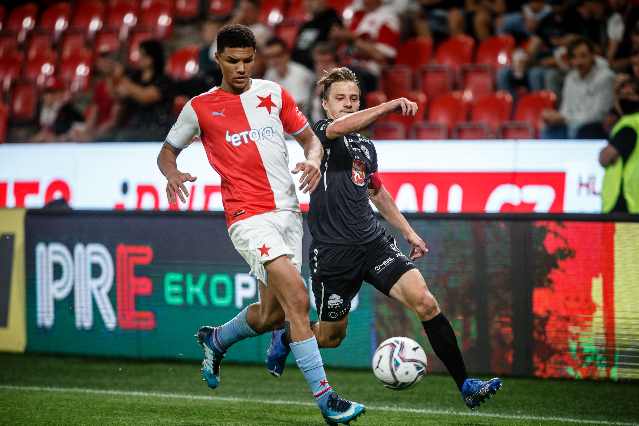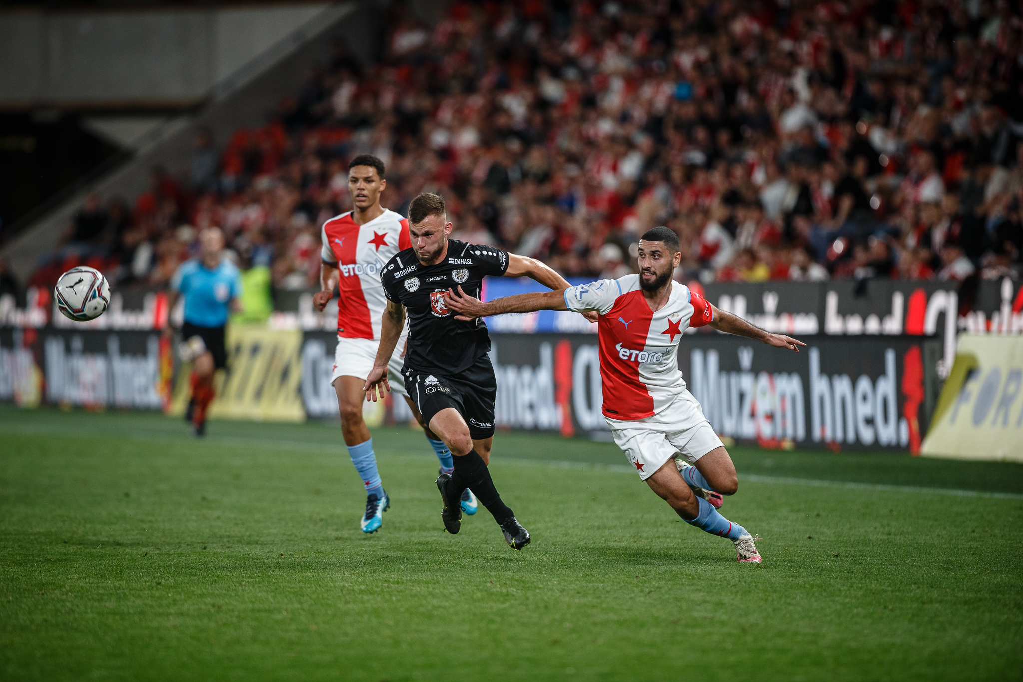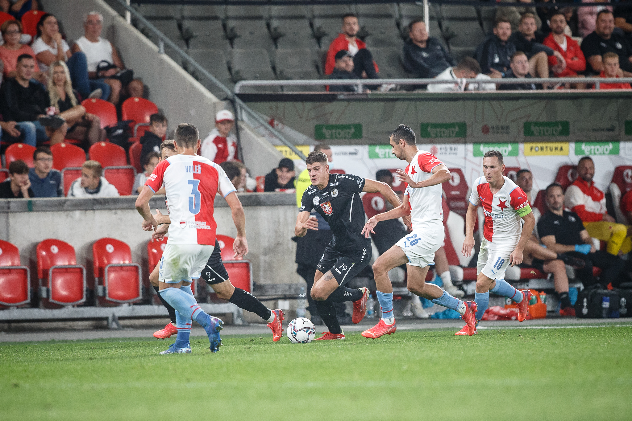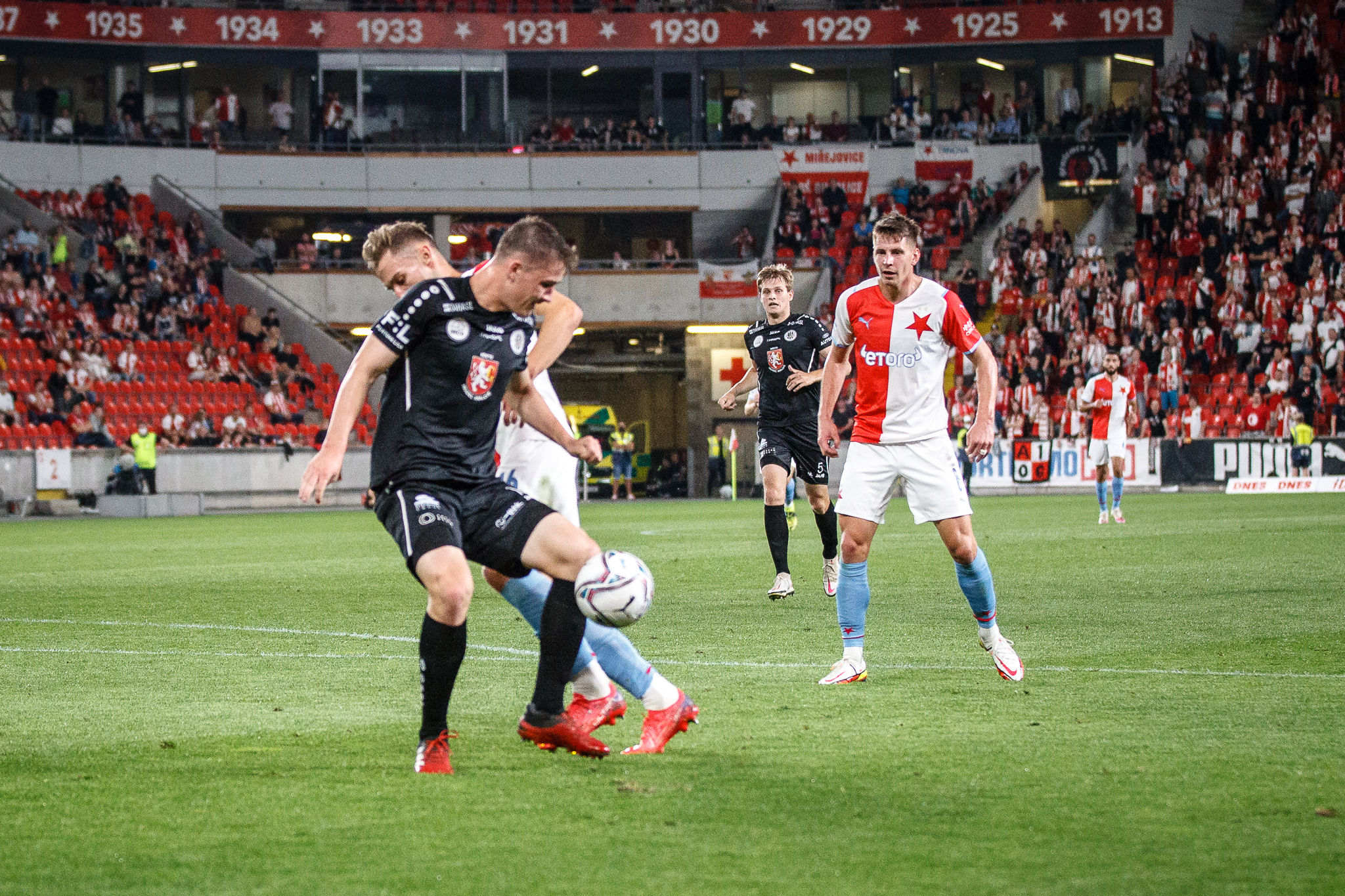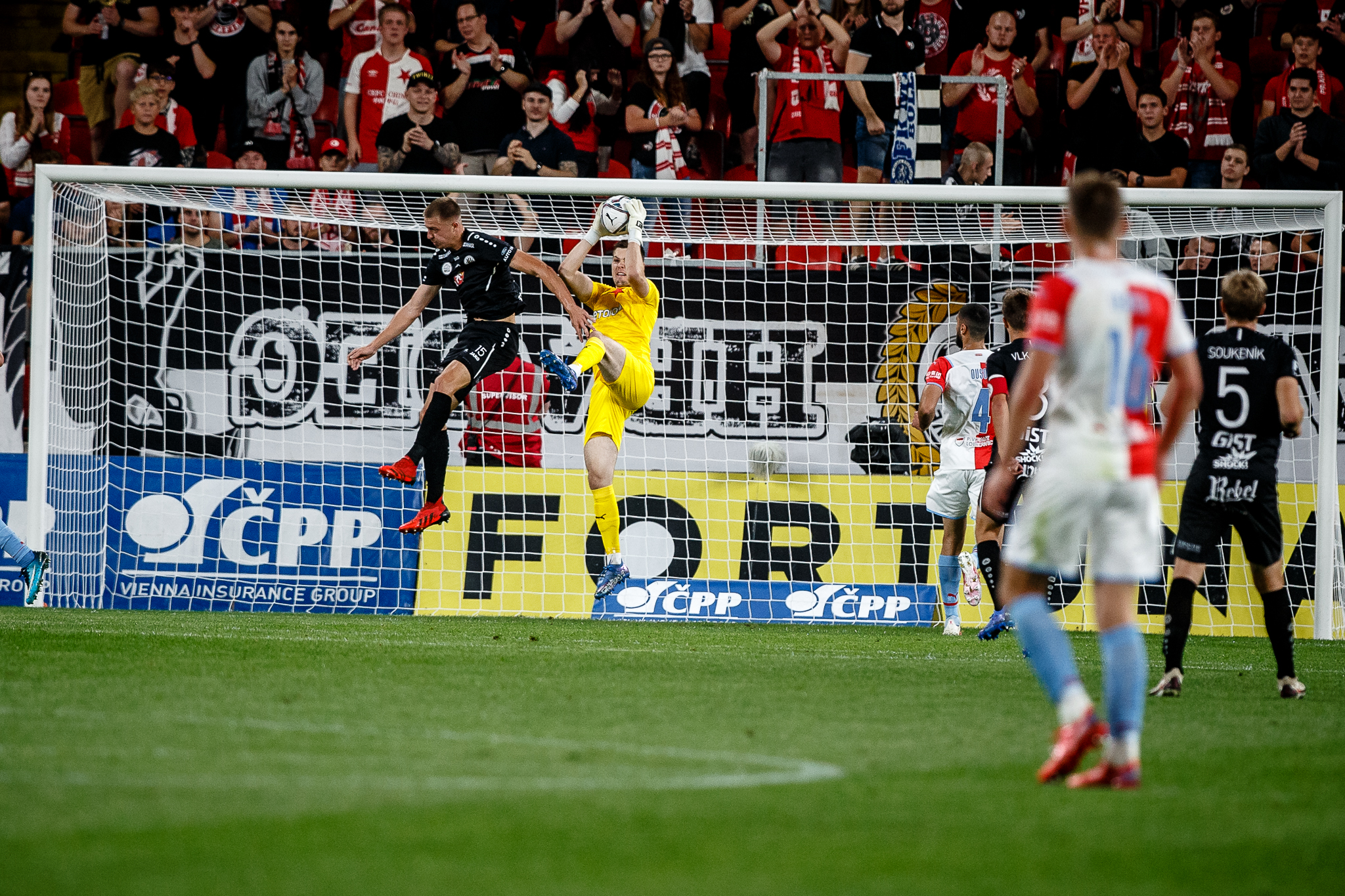 Votroci nastoupili v 9. kole FORTUNA:LIGY na půdě úřadujícího mistra proti Slavii. Zkraje zápasu byla k vidění spíše opatrná hra a první chyba, bohužel pro hradecké, znamenala první vstřelený gól do jejich sítě. Fendrich neudržel Ševčíkův prudký centr, k míči se jako první dostal Jan Kuchta a ten už měl snadnou pozici pro zakončení – 1:0.