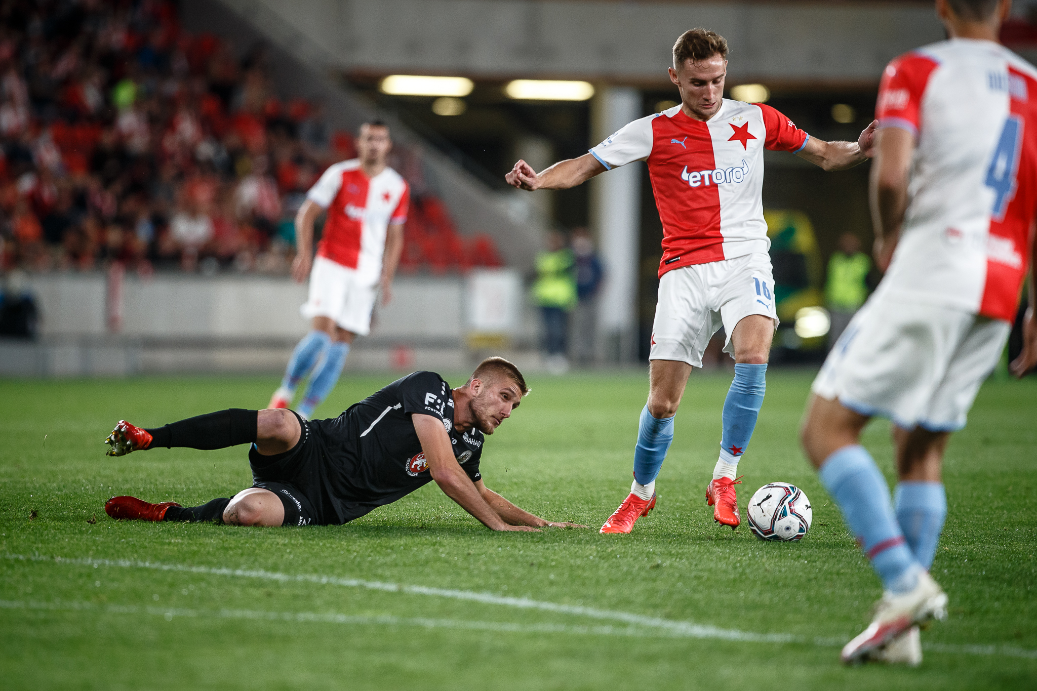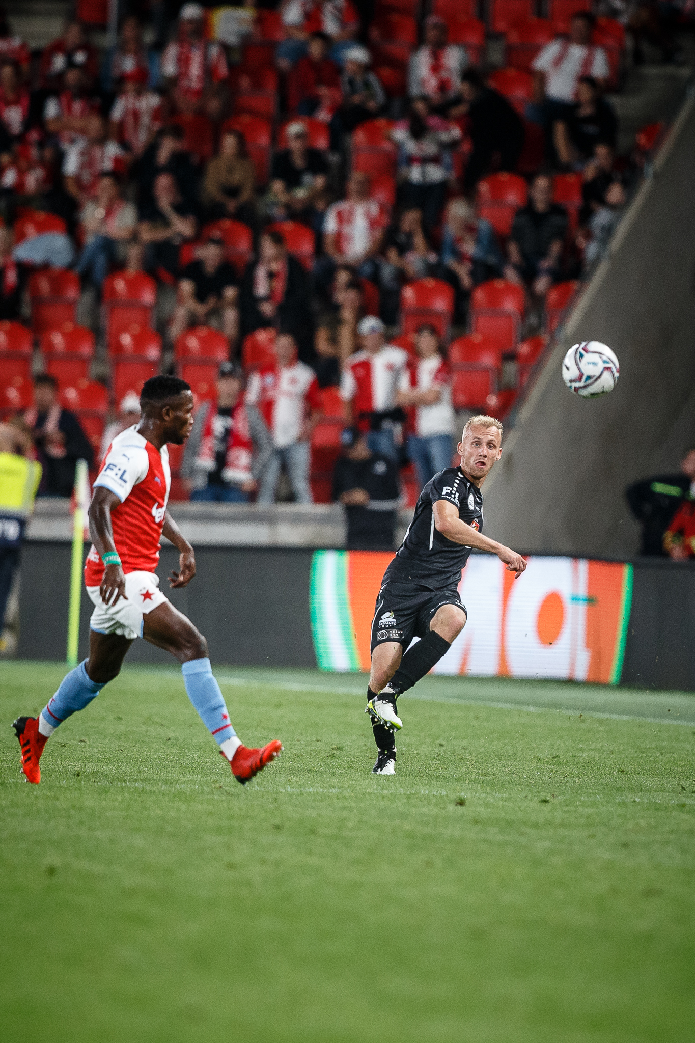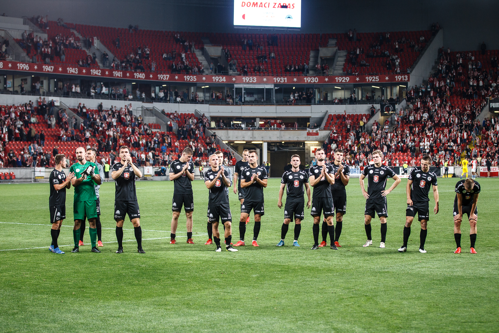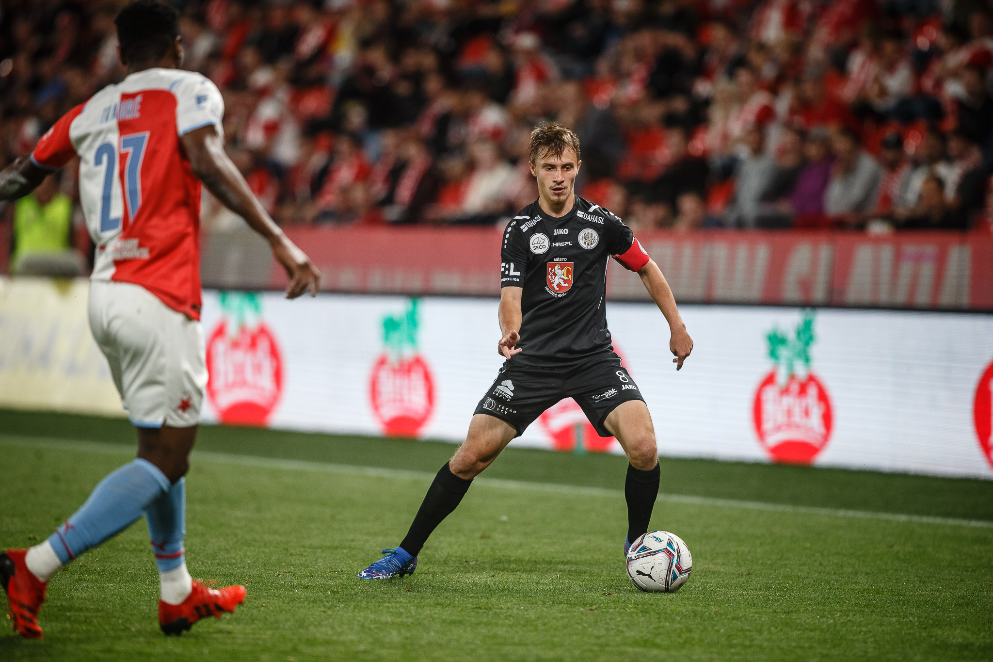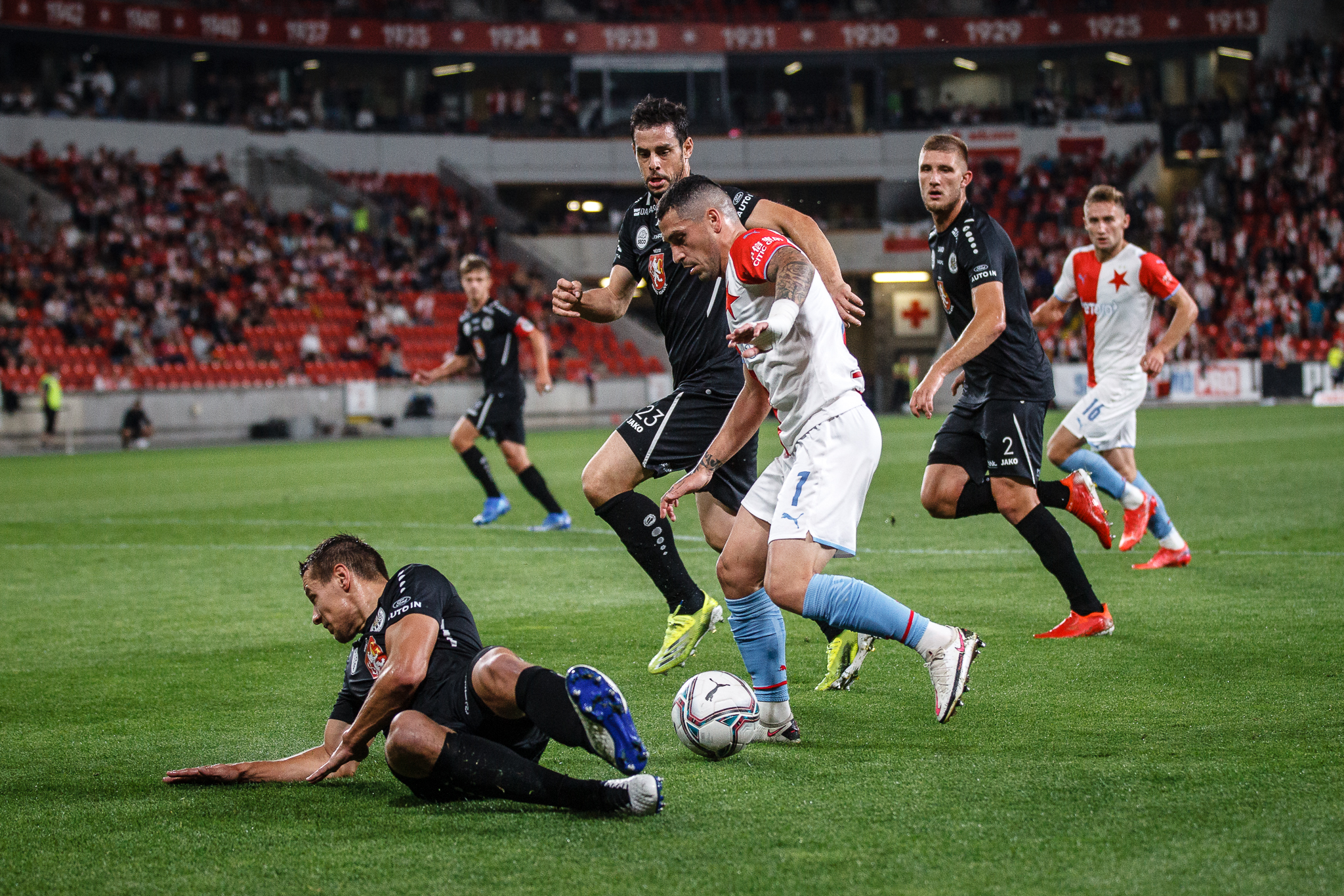 Votroci nastoupili v 9. kole FORTUNA:LIGY na půdě úřadujícího mistra proti Slavii. Zkraje zápasu byla k vidění spíše opatrná hra a první chyba, bohužel pro hradecké, znamenala první vstřelený gól do jejich sítě. Fendrich neudržel Ševčíkův prudký centr, k míči se jako první dostal Jan Kuchta a ten už měl snadnou pozici pro zakončení – 1:0.