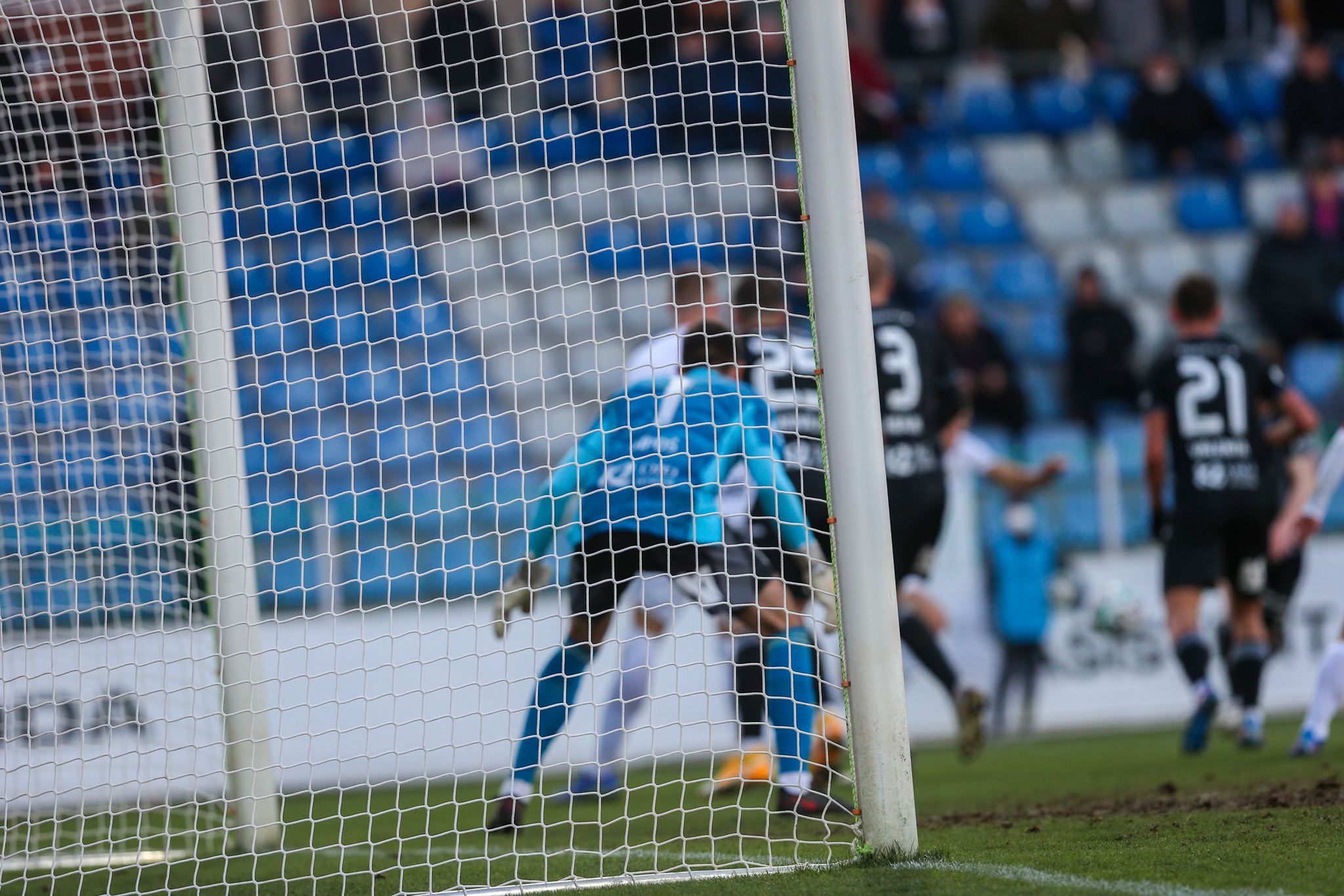 Hradec vycítil momentum a v dalších několika minutách házenkářsky kroužil kolem brány Šípoše. Vyvrcholením byl stříleným centrem rozehraný přímý kop Adama Vlkanovy, který přistál na hlavě Novotného, od nějž se však míč odrazil nad budějovickou bránu.