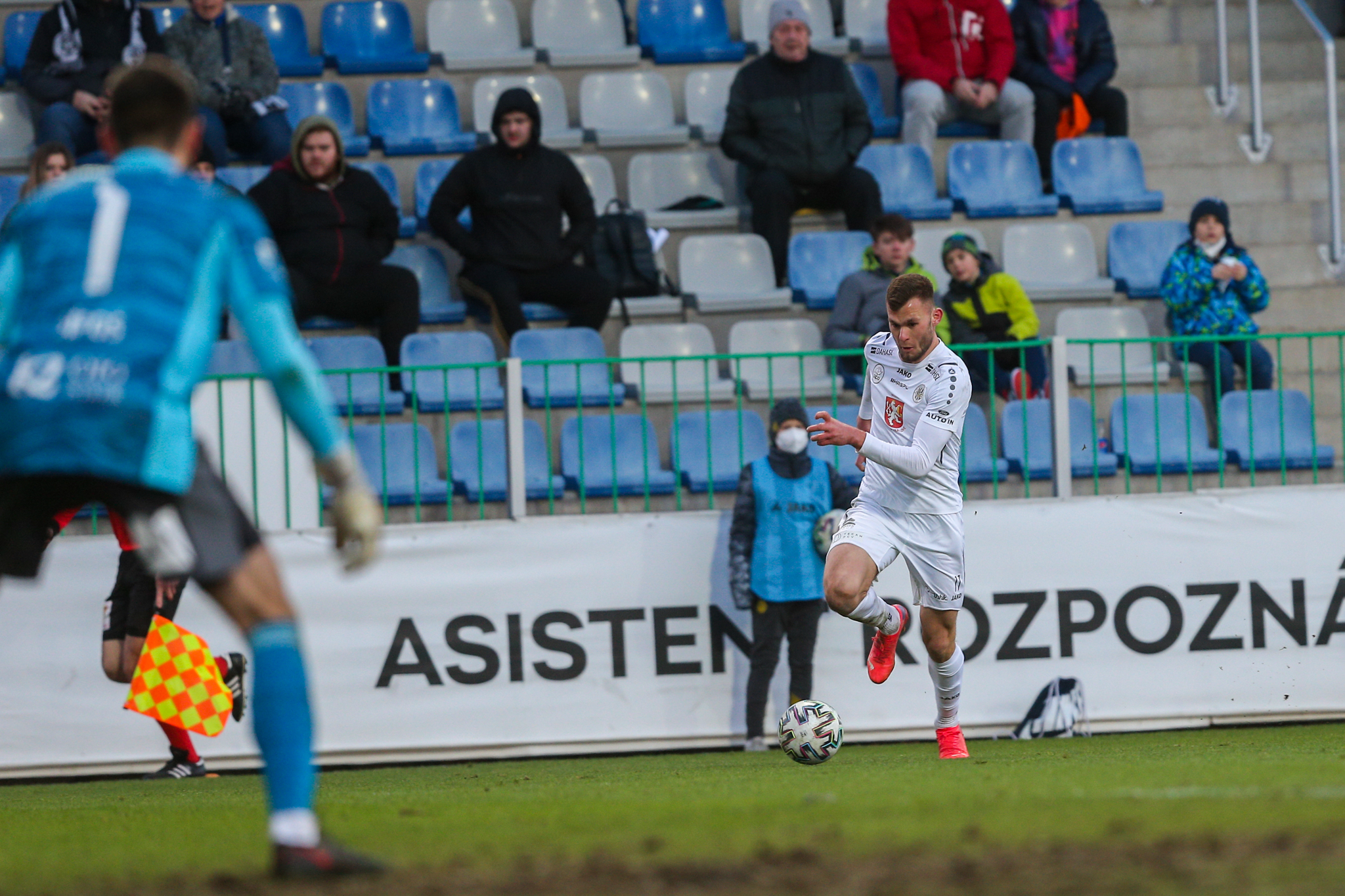 Východočeši dobře vystupovali a znemožňovali hostům v klidu rozehrát. Mohlo to přinést ovoce v 19. minutě, kdy se po Vlkanovově průniku směrem k brankové čáře a jeho zpětné přihrávce dostal k tvrdému zakončení z hranice šestnáctky Filip Novotný, Šípoš jeho střelu srazil na roh.