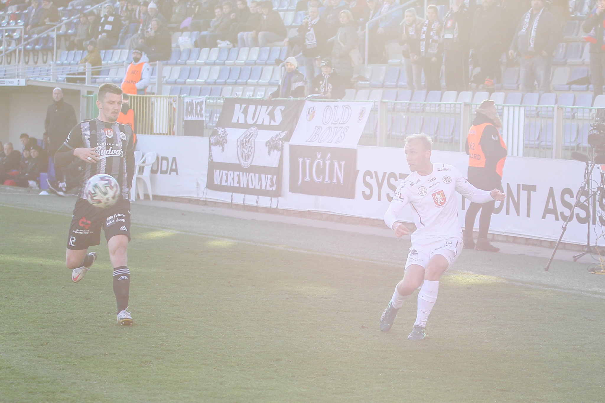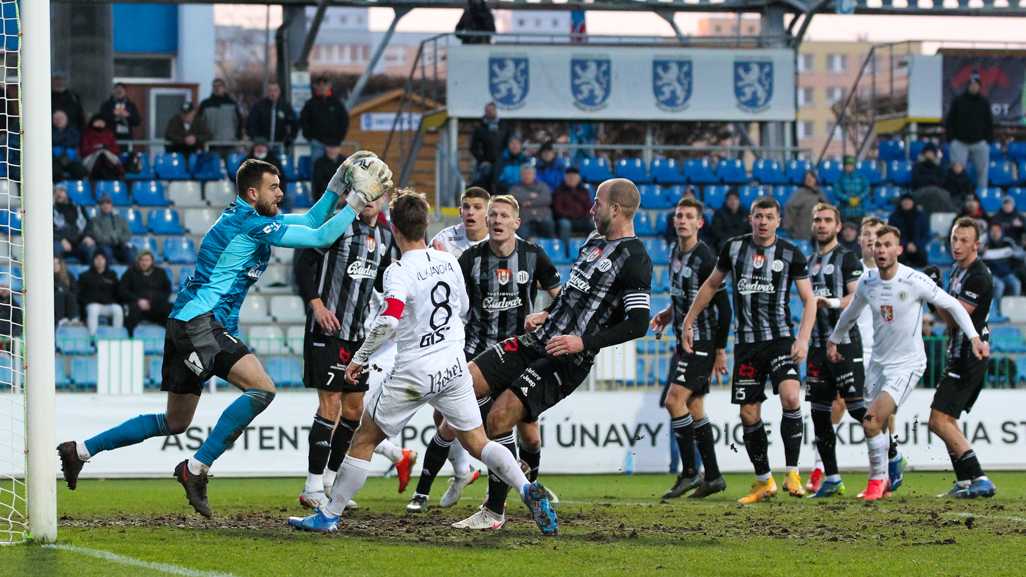České Budějovice, jeden z hradeckých nejčastějších ligových soupeřů, měly během prvního poločasů osm rohových kopů. Prvních sedm z nich skončilo bez výsledku, ale ten osmý, v nastaveném čase druhého poločasu, už dokázali hráči Jihočechů zmaterializovat. Havel vyhrál hlavičkový souboj s Kodešem a přiťuknul míč před sebe, kde se do něj akrobaticky položil Van Buren a poslal za Fendrichova záda – 1:1. Gól do šatny tak byl pro aktivnější Votroky studenou sprchou.