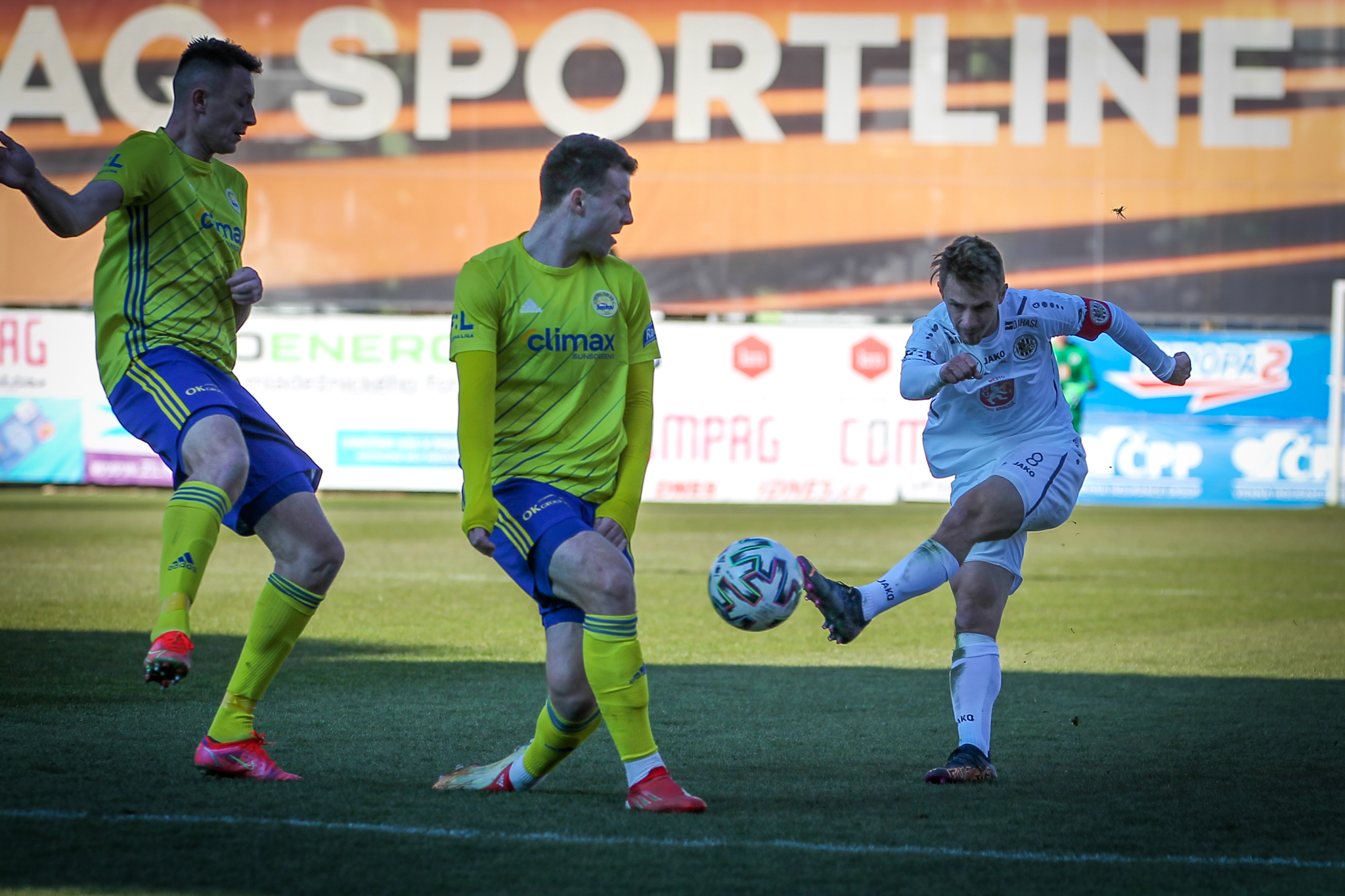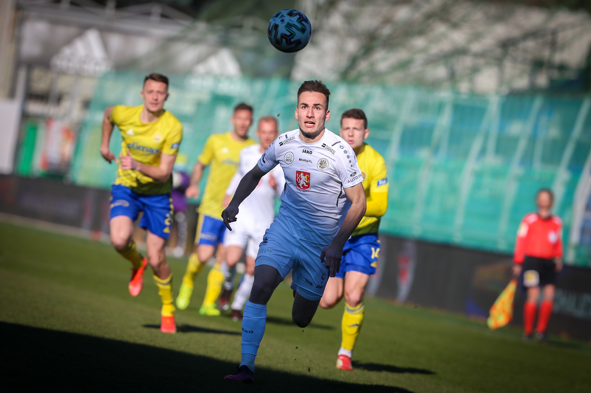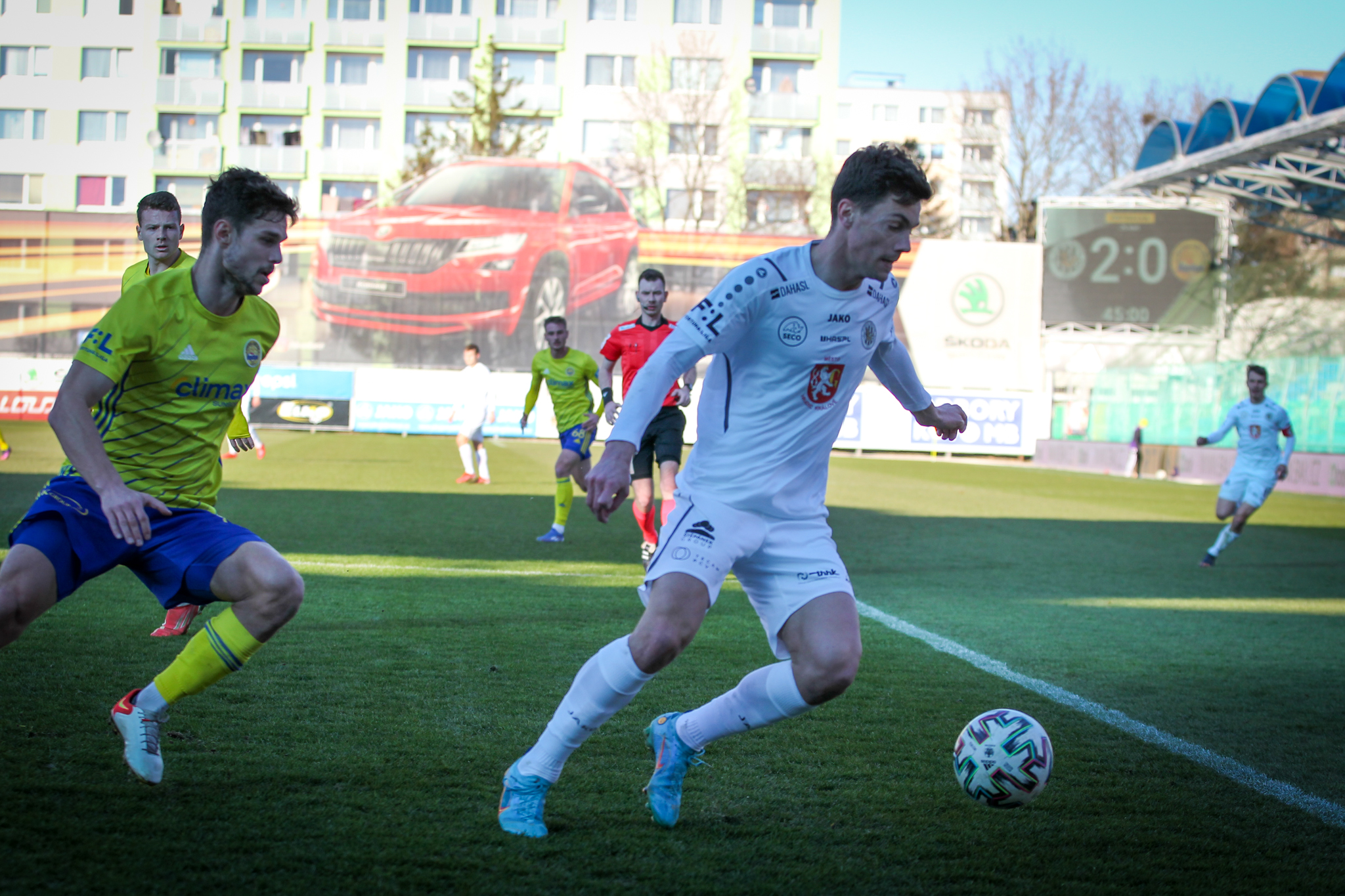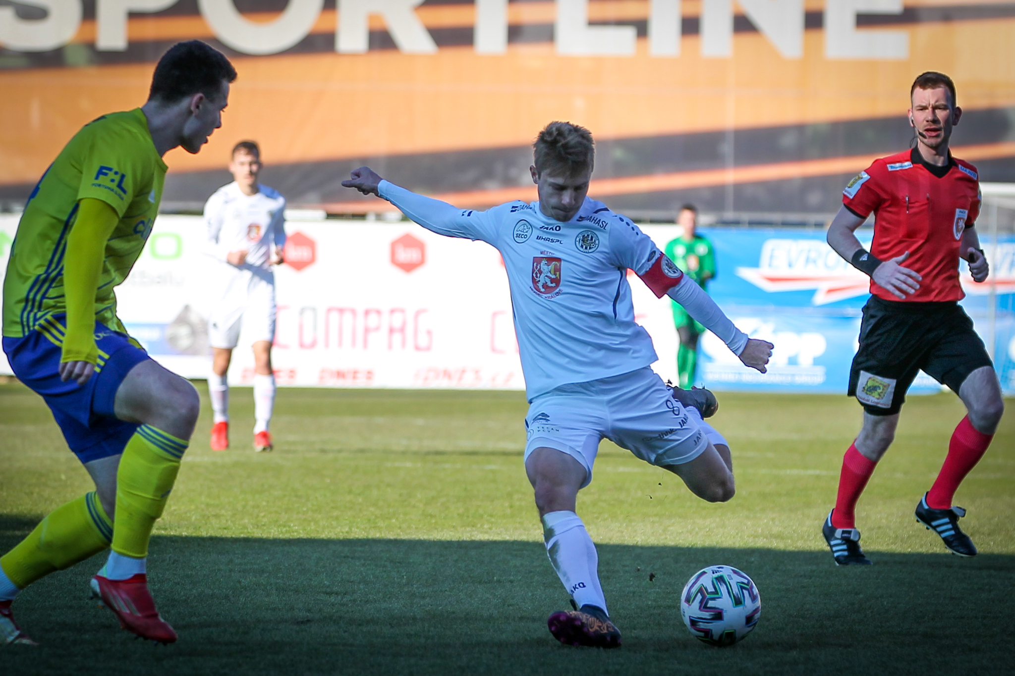 Úvod zápasu přinesl šance po standardních situacích. Ve 4. minutě hlavičkoval po přímém volném kopu z pravé strany mimo hradeckou bránu Dominik Simerský, hned potom se ale začalo dařit domácím.