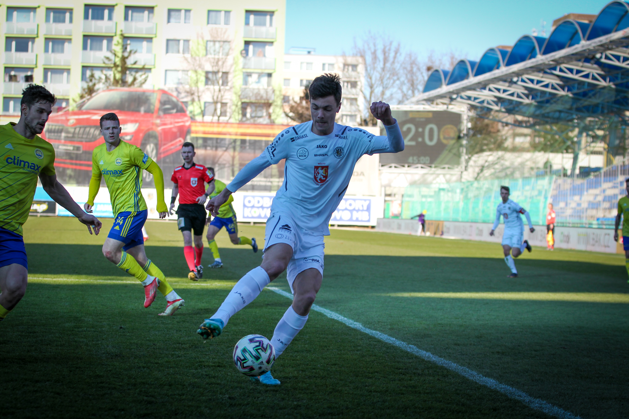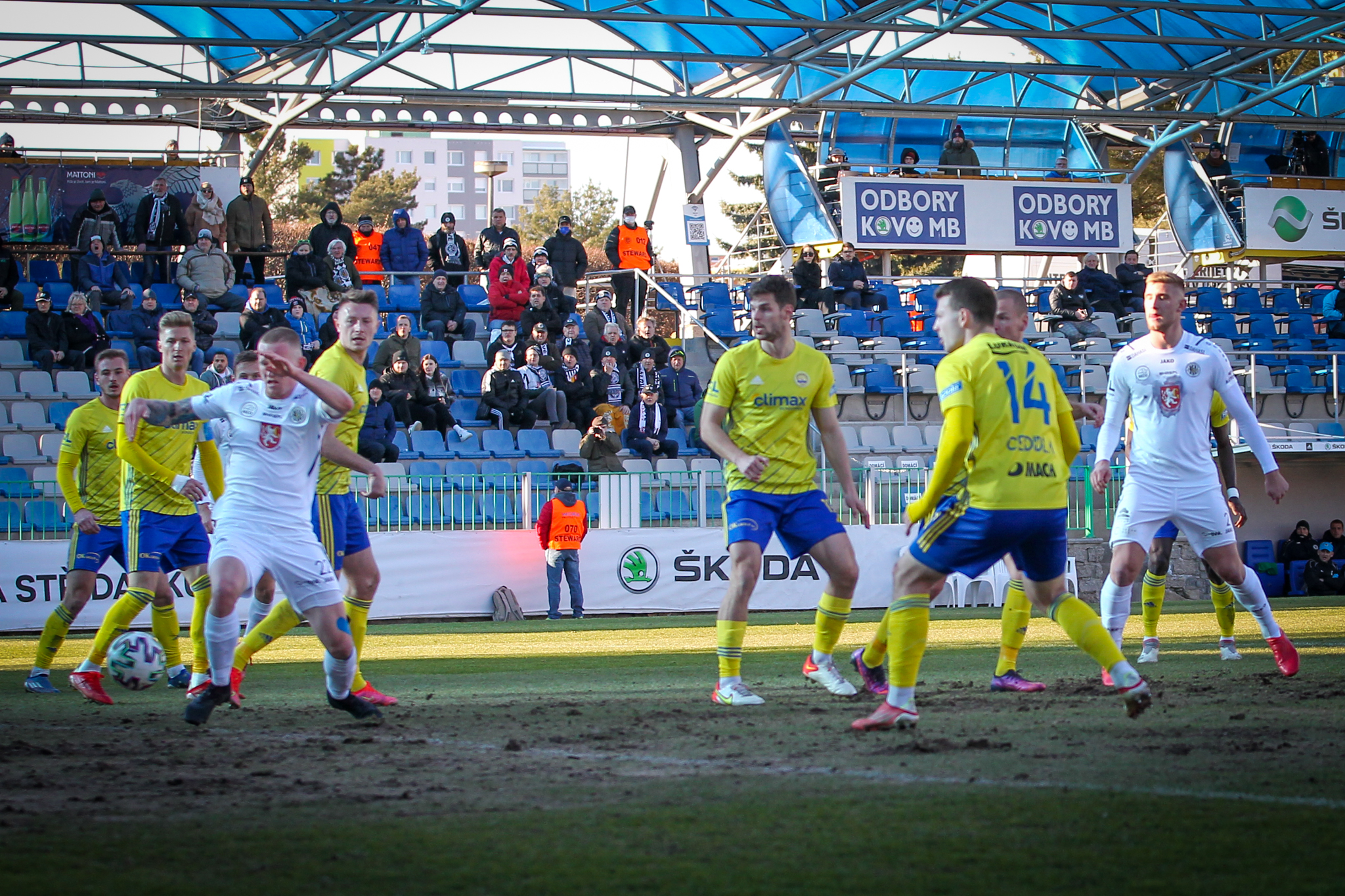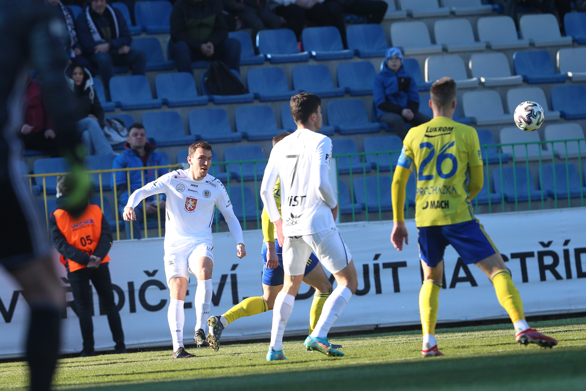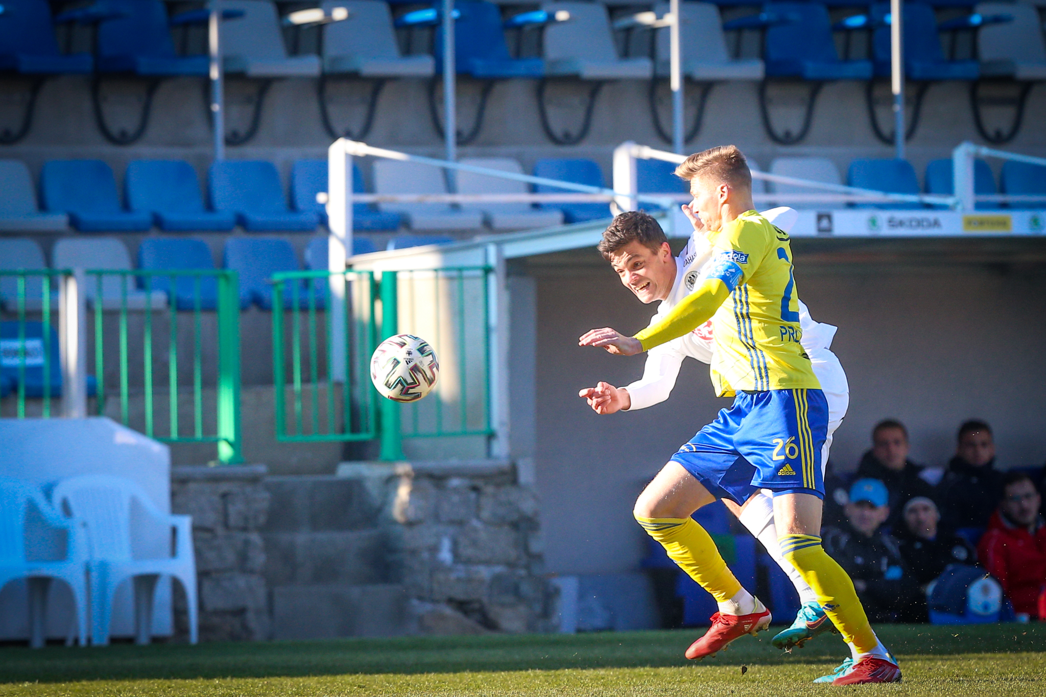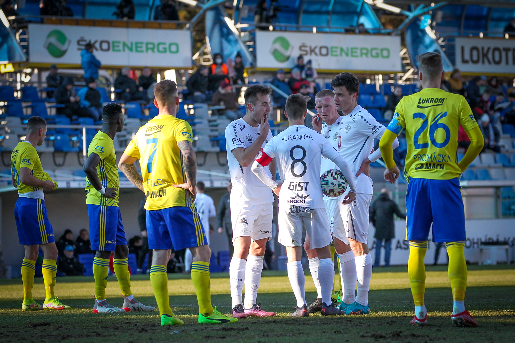 V 11. minutě Adam Vlkanova zahrával přímý volný kop z levé strany těsně vedle vápna, obrana hostů odvrátila míč jen k Dominiku Soukeníkovi a ten ho s pomocí teče dostal do brány. 1:0 pro Votroky!