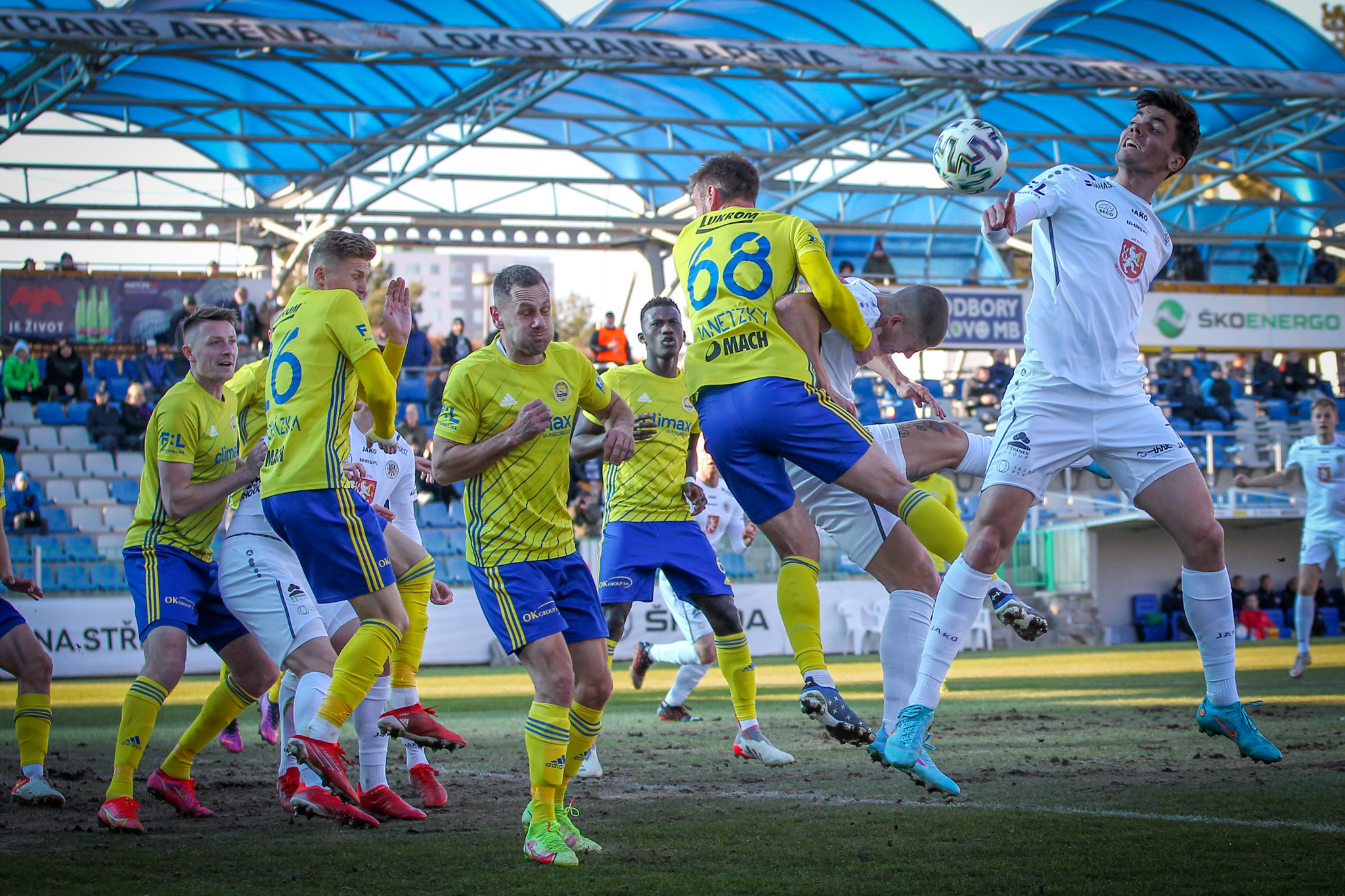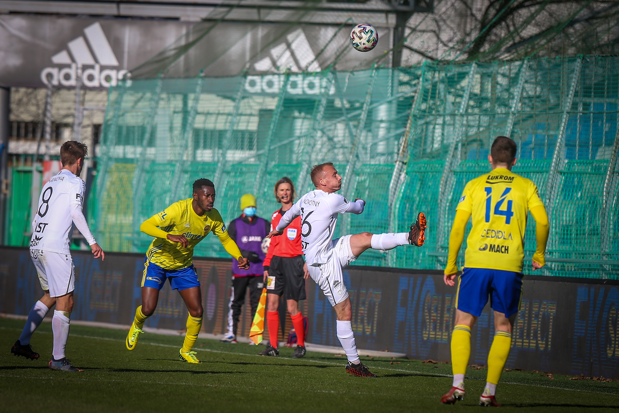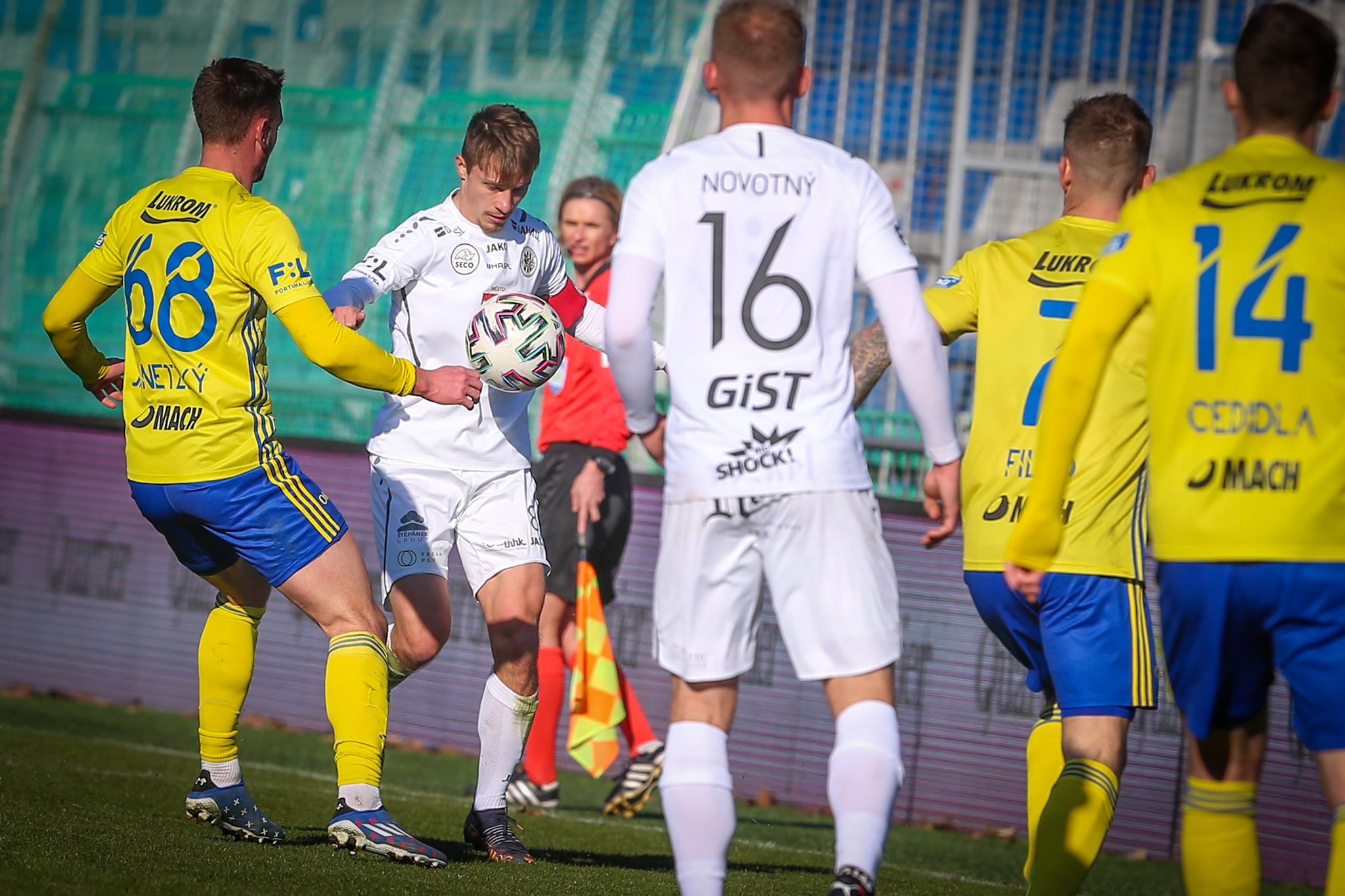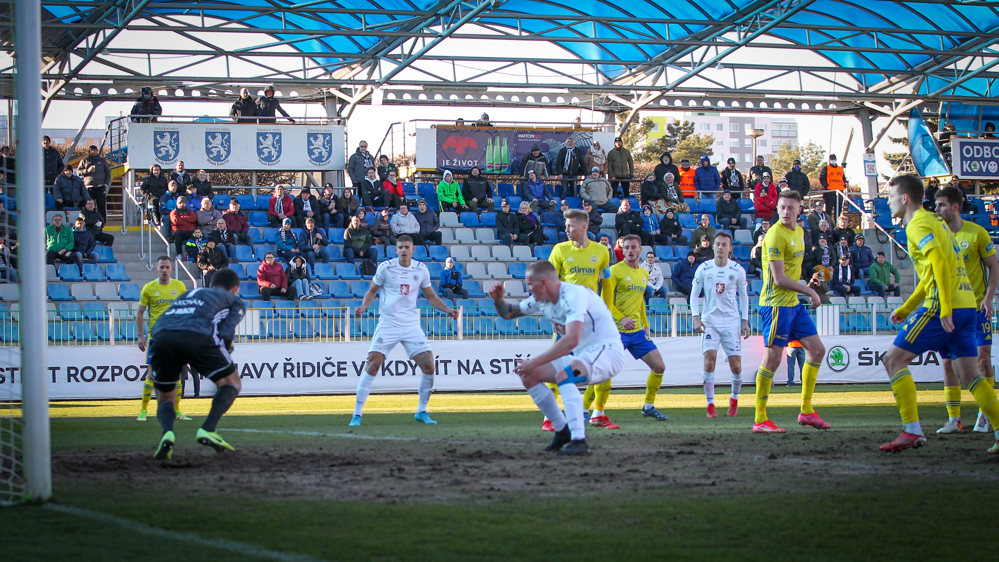 V 11. minutě Adam Vlkanova zahrával přímý volný kop z levé strany těsně vedle vápna, obrana hostů odvrátila míč jen k Dominiku Soukeníkovi a ten ho s pomocí teče dostal do brány. 1:0 pro Votroky!
