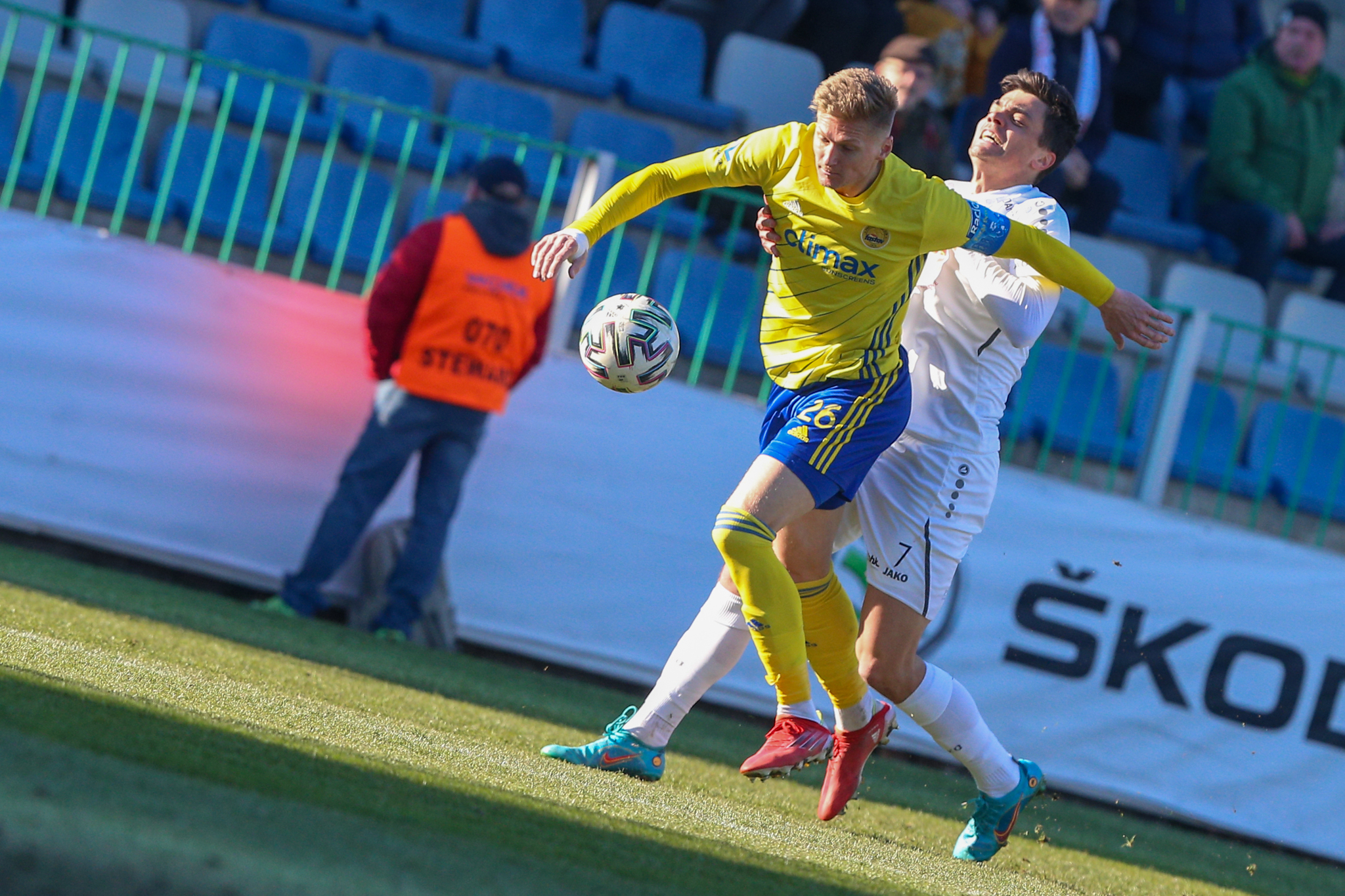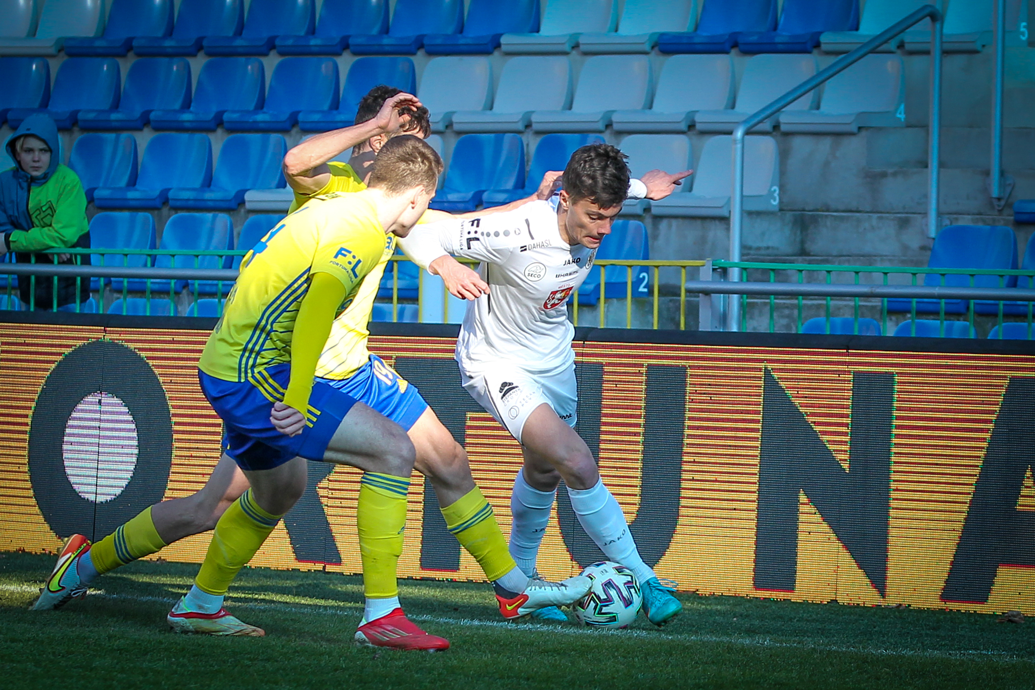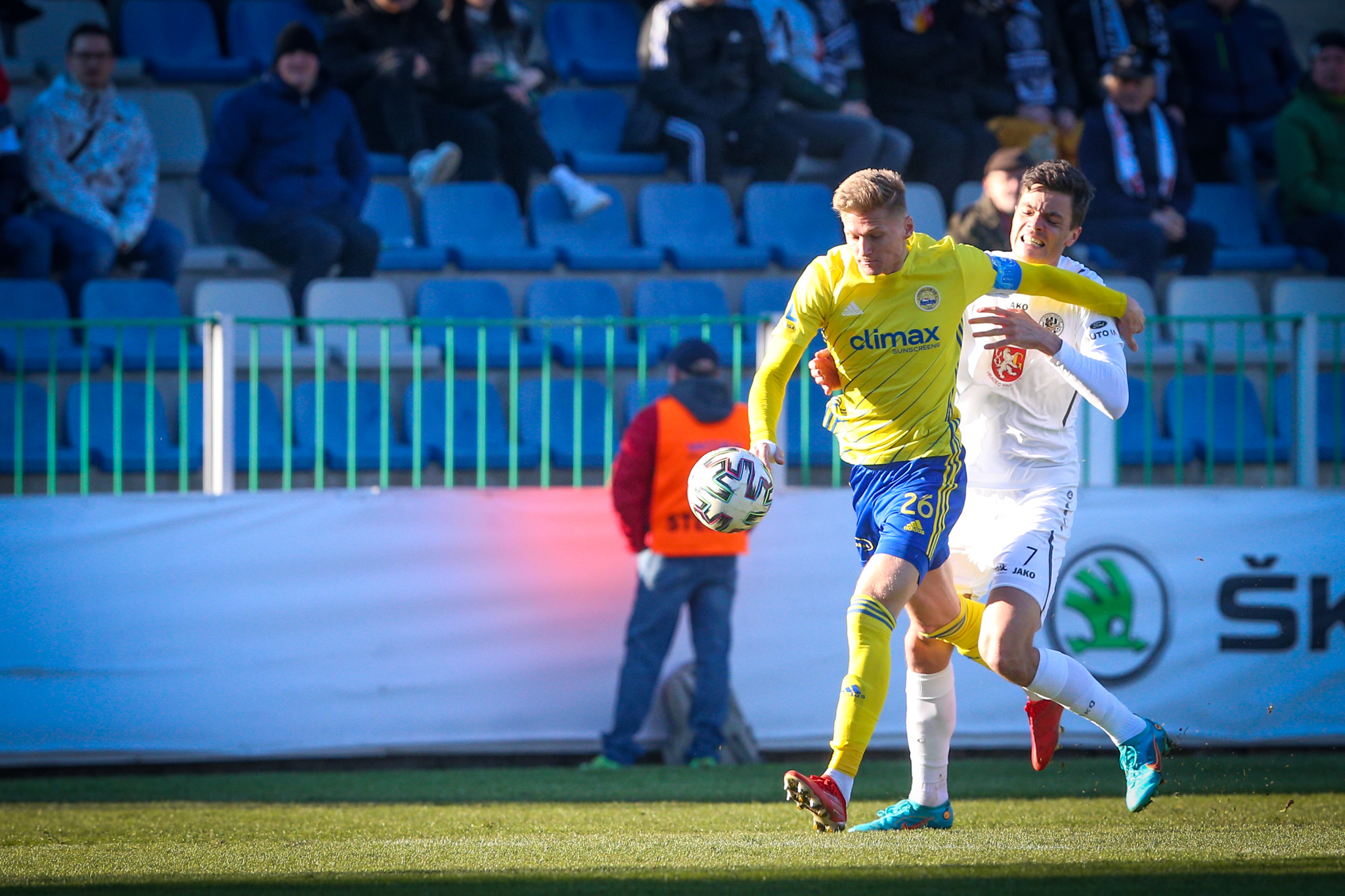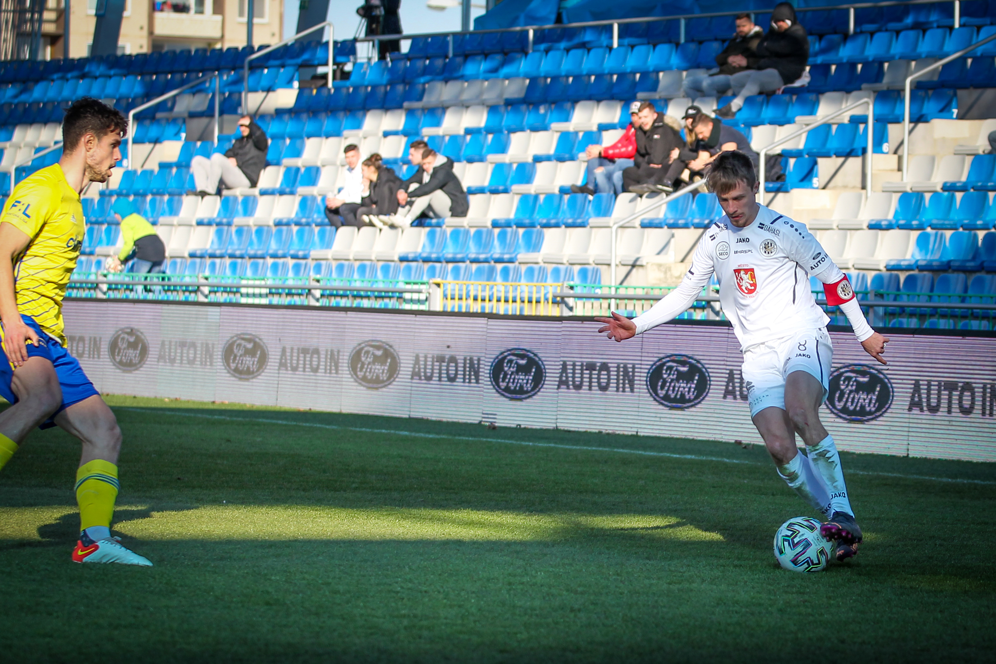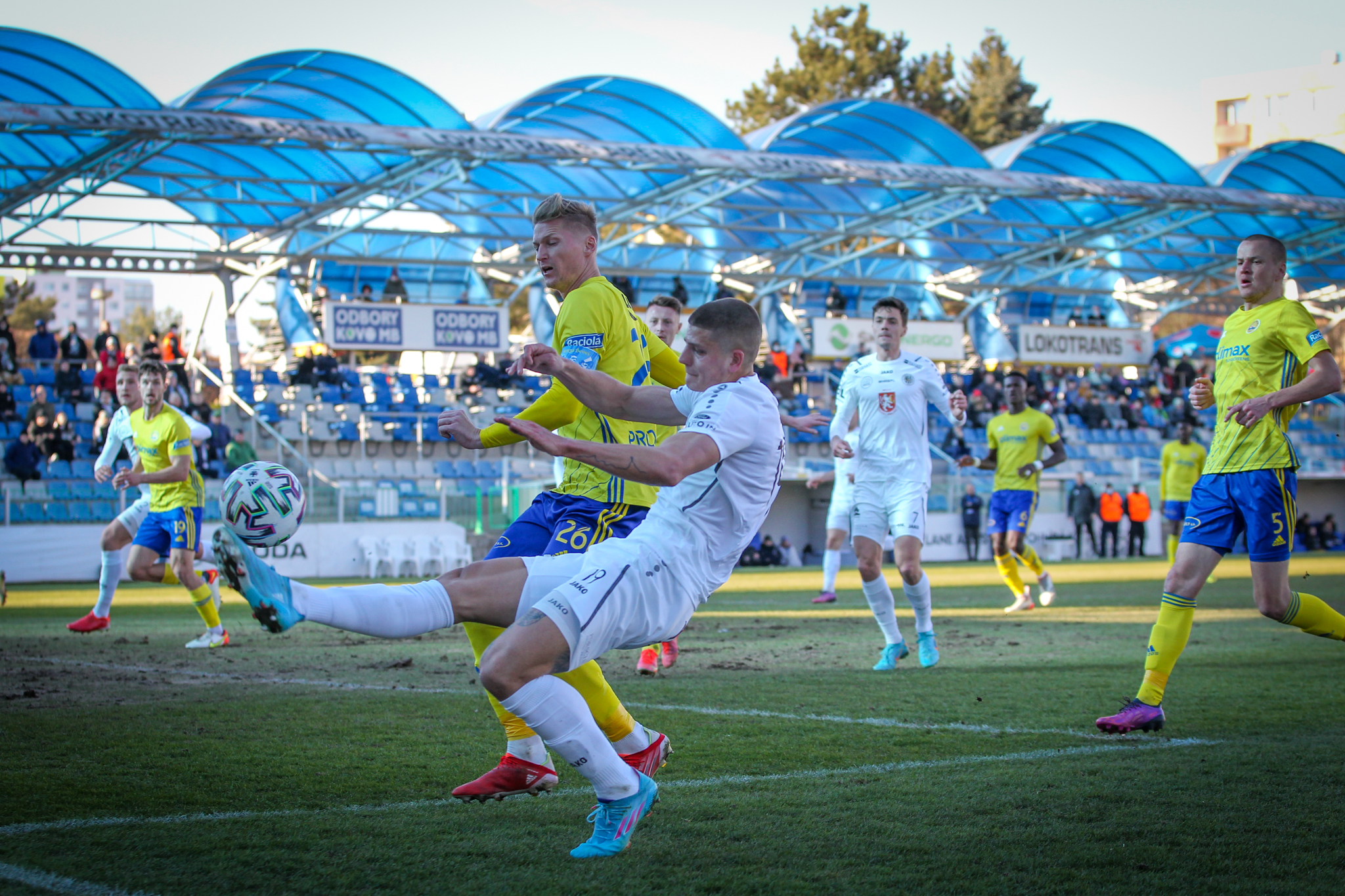 V 11. minutě Adam Vlkanova zahrával přímý volný kop z levé strany těsně vedle vápna, obrana hostů odvrátila míč jen k Dominiku Soukeníkovi a ten ho s pomocí teče dostal do brány. 1:0 pro Votroky!