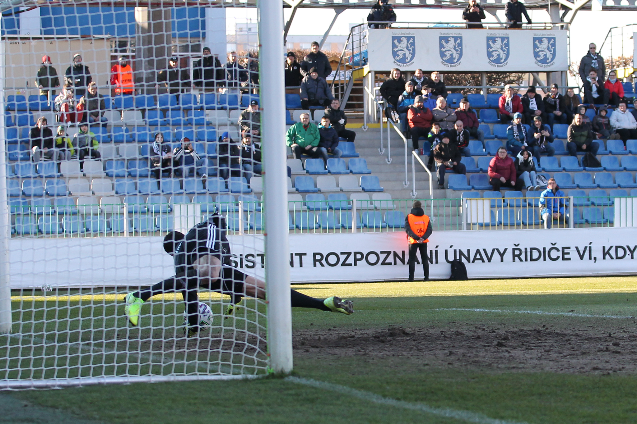 Deset minut před pauzou bylo v šestnáctce hostů opět živo. Jan Mejdr doběhl míč směřující za brankovou čáru, zvedl ho za sebe a hlavičku Františka Čecha zastavil Martin Cedidla rukou. Rozhodčí Josef Krejsa nařídil po zhlédnutí záznamu na obrazovce VAR penaltu, k míči se opět postavil Kubala, mířil na stejnou stranu jako prvně, ale tentokrát jeho střelu zlínský gólman vyrazil.
