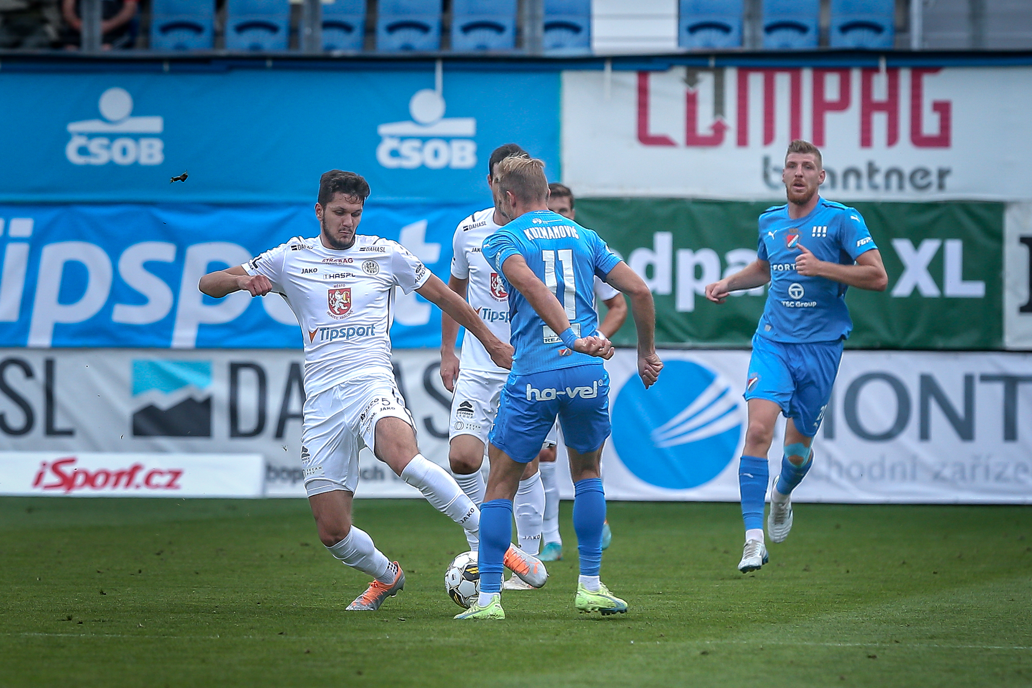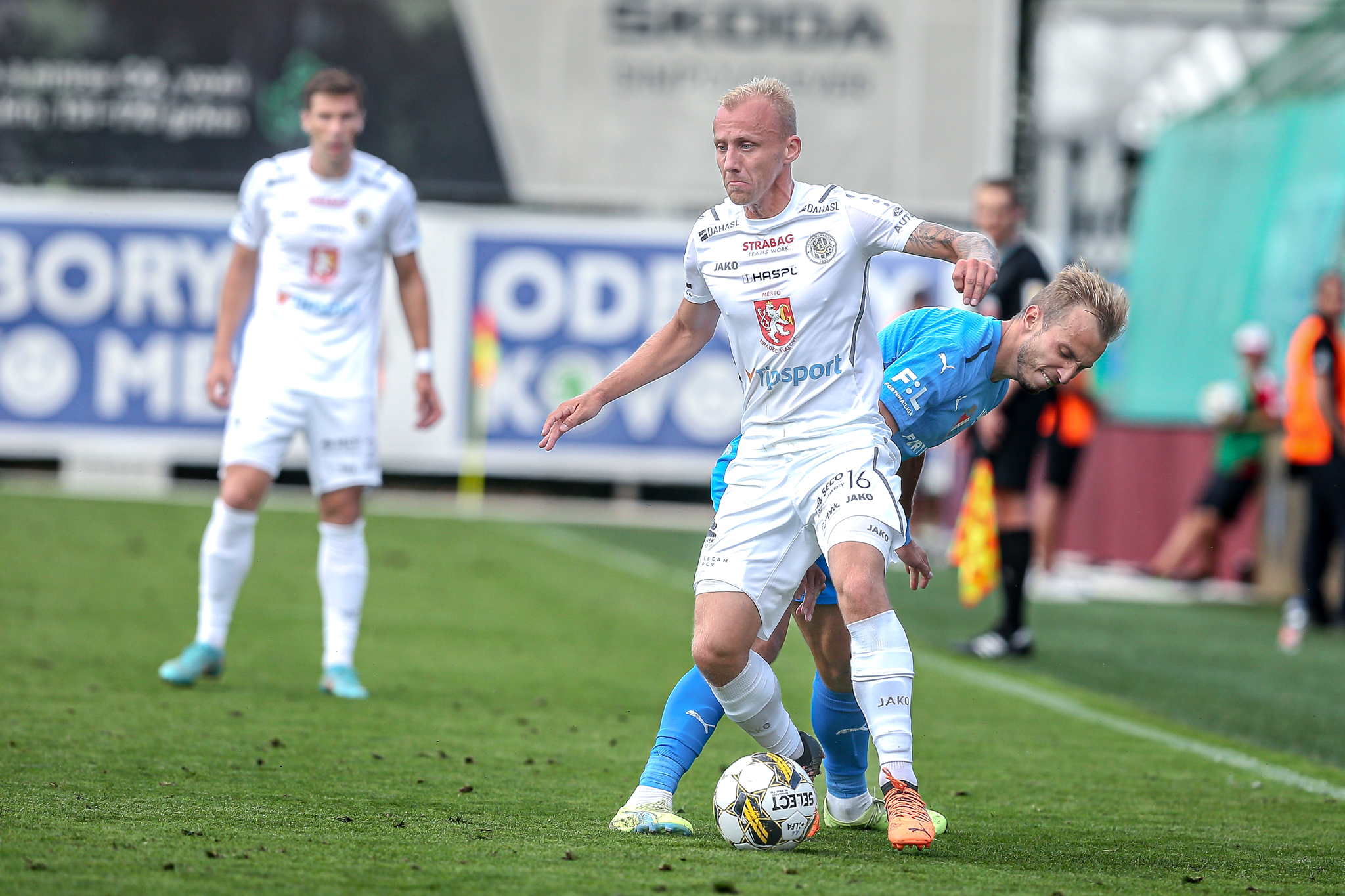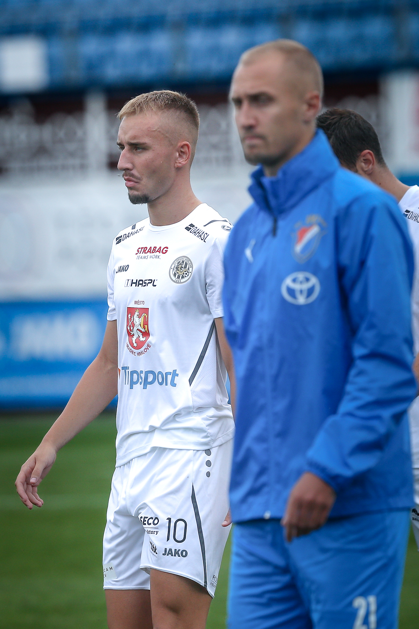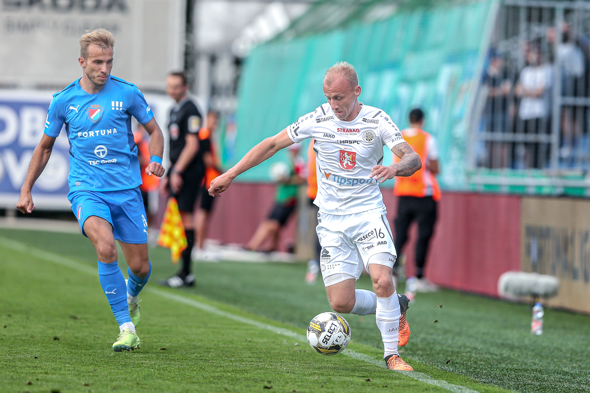 Hradec nasadil do základní sestavy i obě čerstvé posily, hosty z plzeňské Viktorie Filipa Čiháka a Mateje Trusu. Čihák nahradil ve stoperské trojici vykartovaného Čecha, Trusa měl za úkol podporovat útočné duo Vašulín – Kubala.