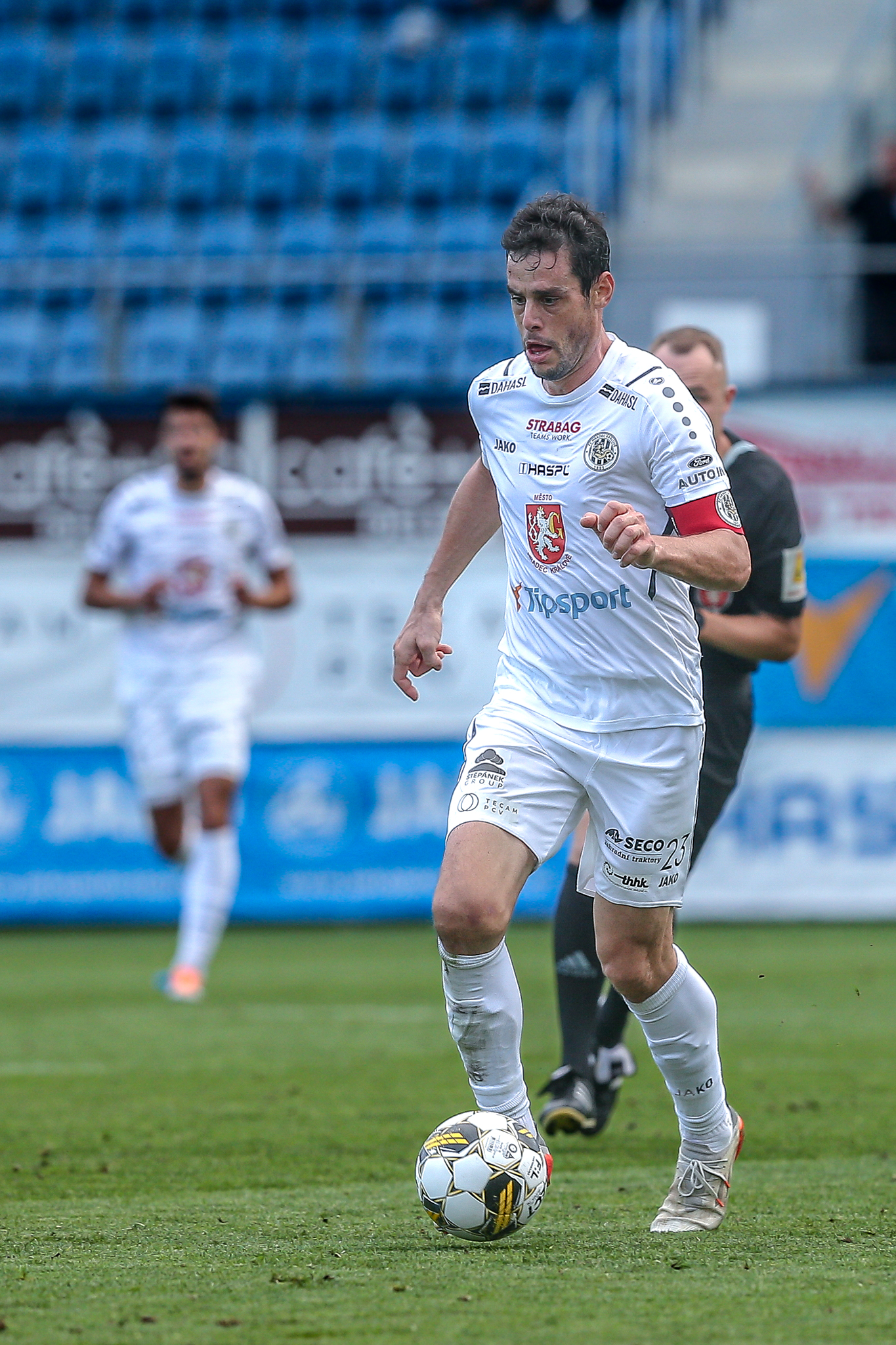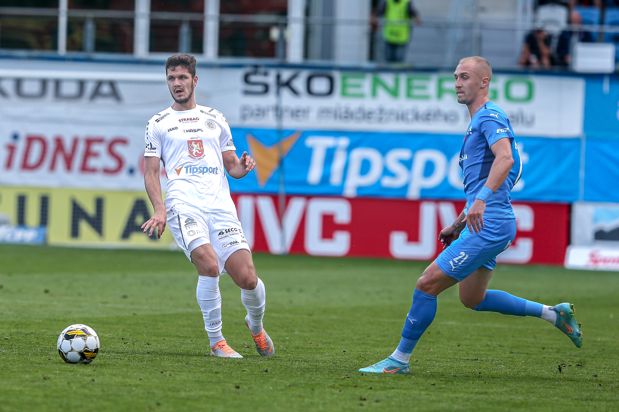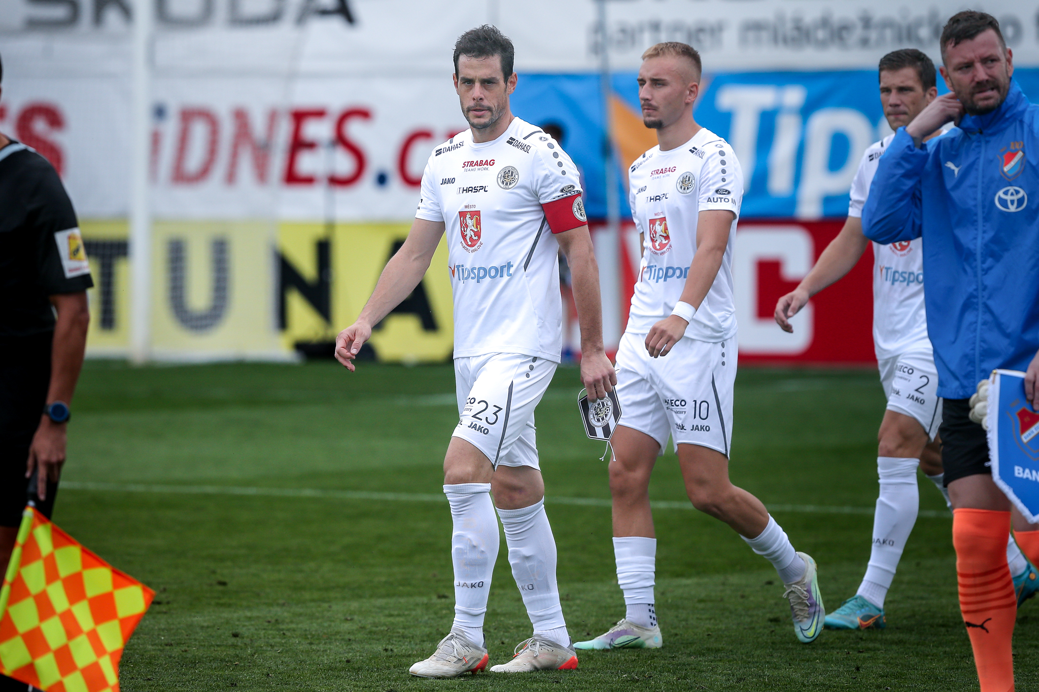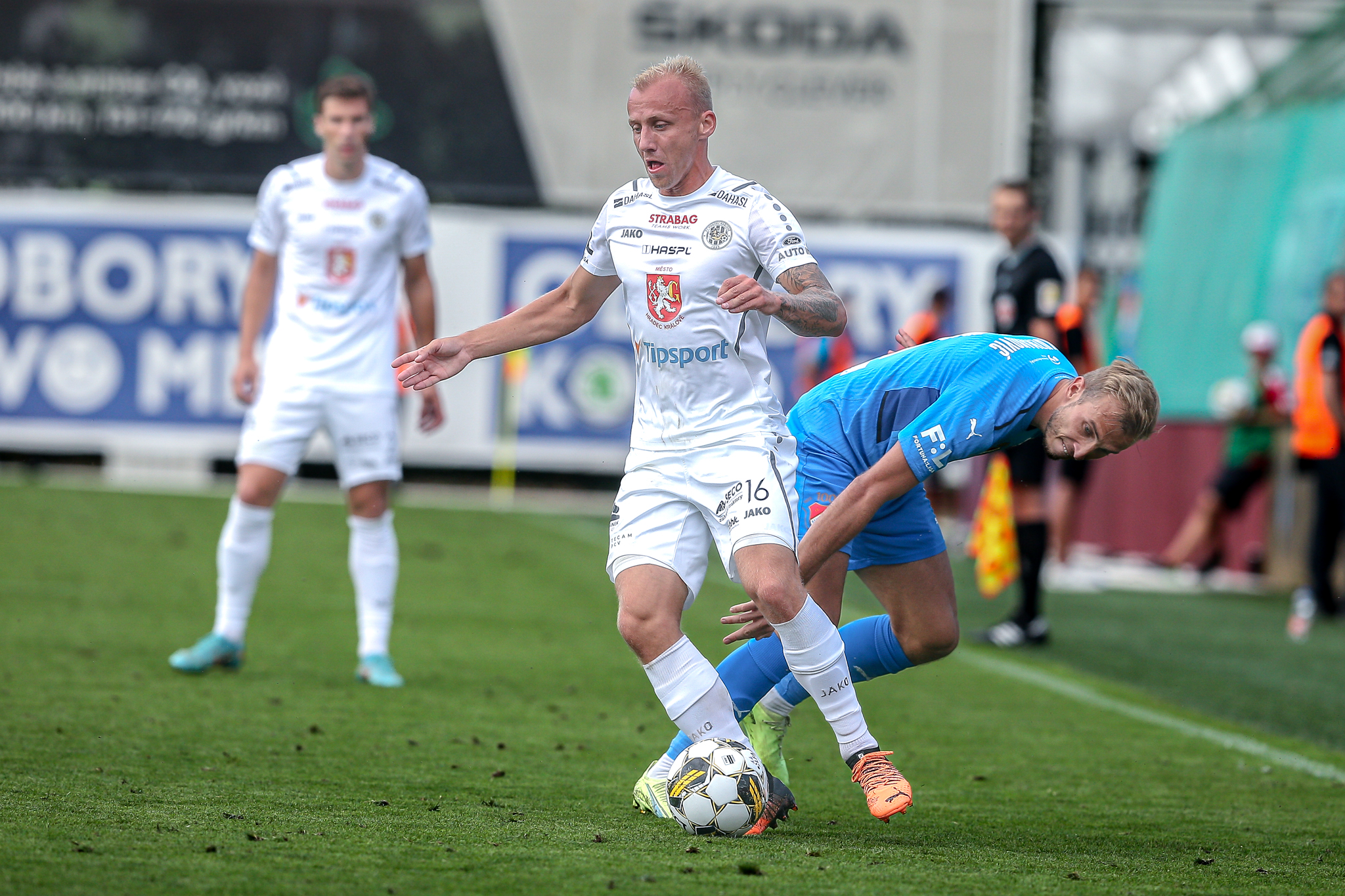 Hradec nasadil do základní sestavy i obě čerstvé posily, hosty z plzeňské Viktorie Filipa Čiháka a Mateje Trusu. Čihák nahradil ve stoperské trojici vykartovaného Čecha, Trusa měl za úkol podporovat útočné duo Vašulín – Kubala.