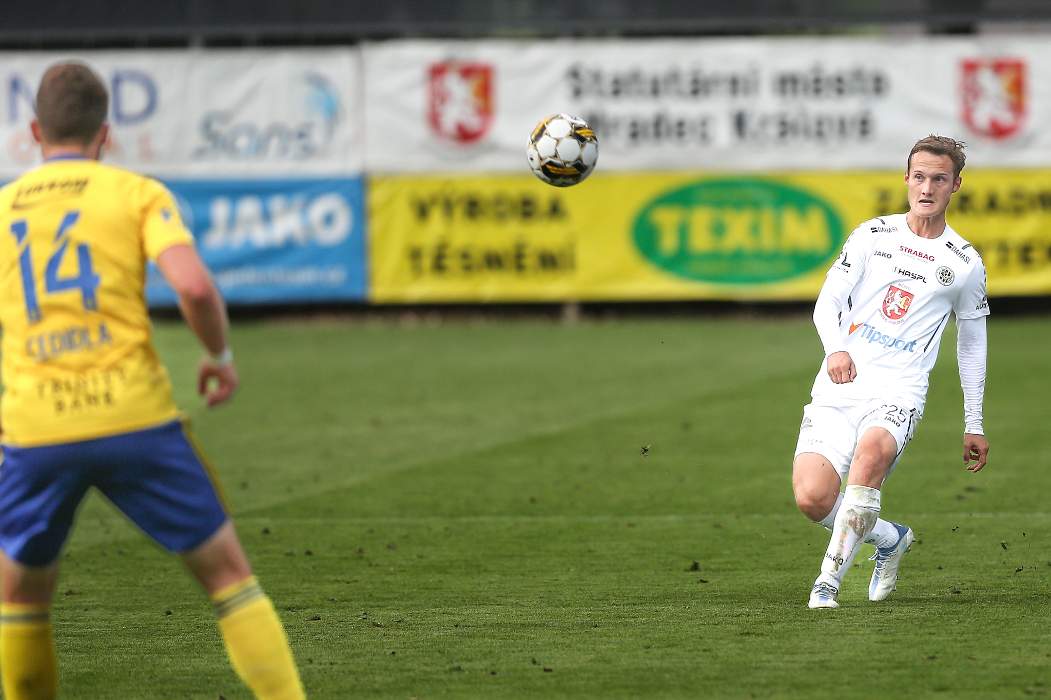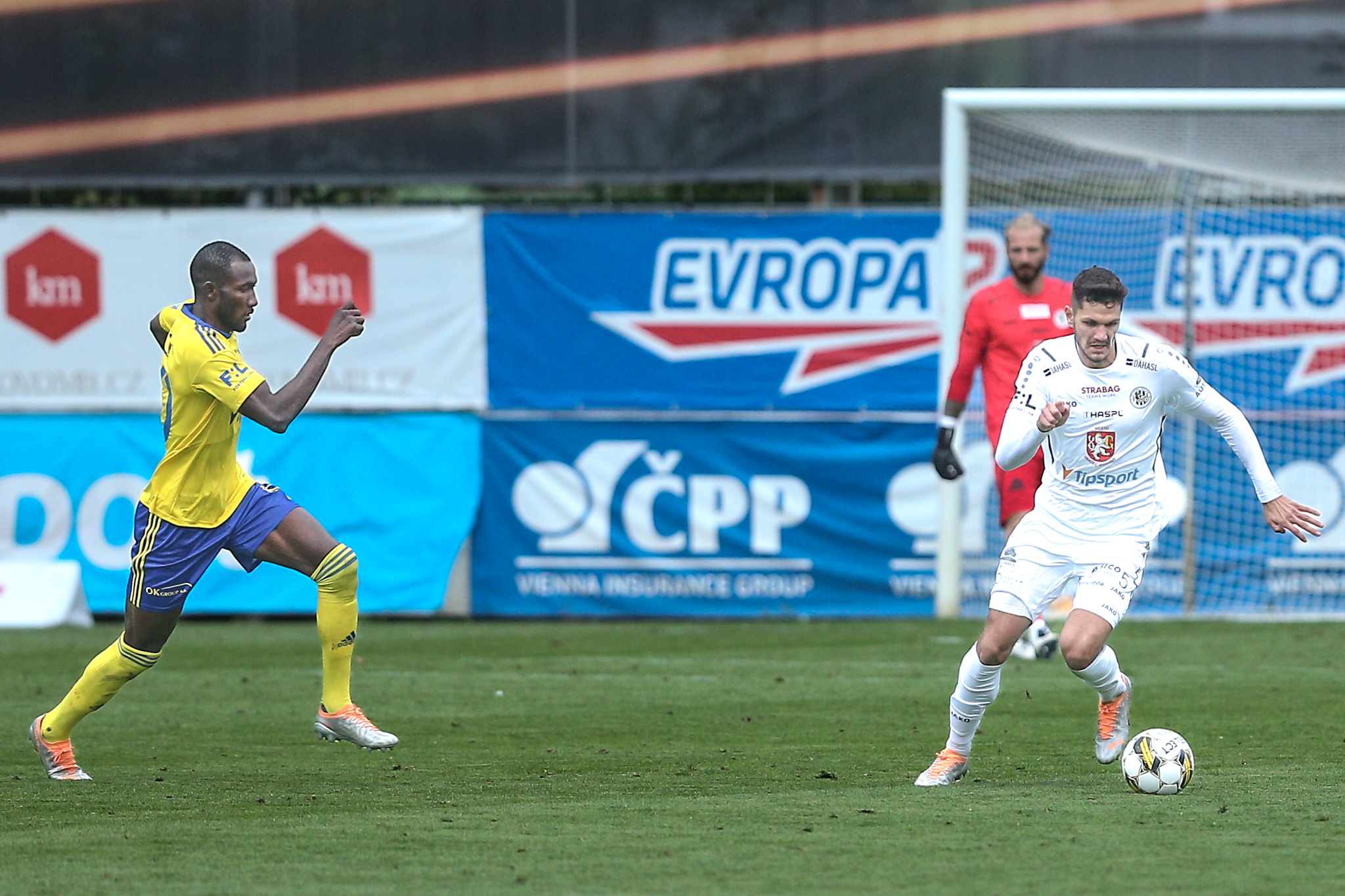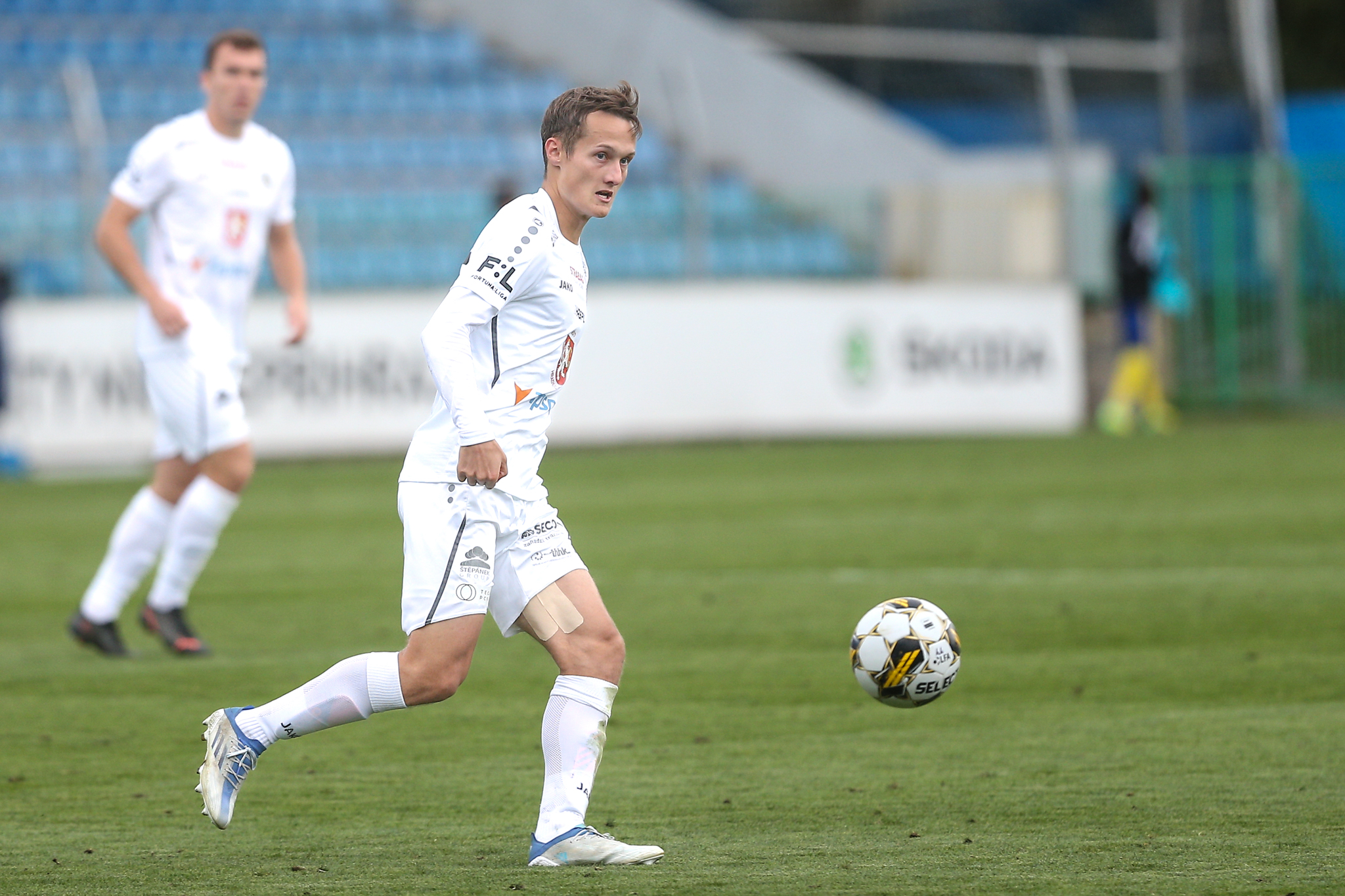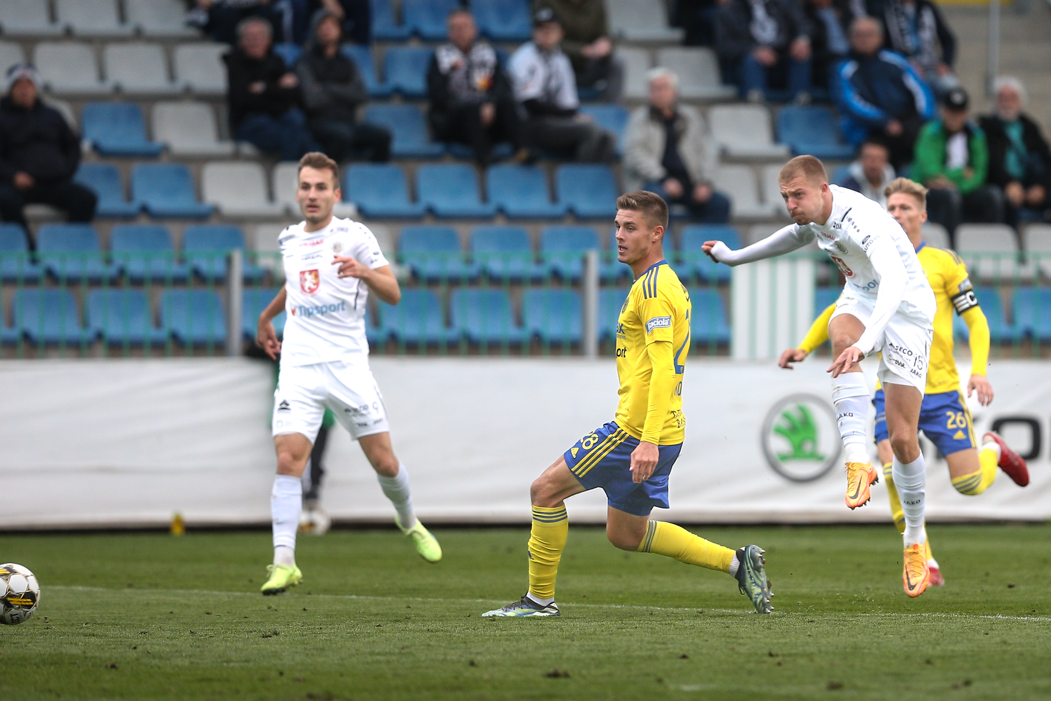Domácí dál soupeře tlačili a v závěru poločasu vyslal povedenou střelu metr nad břevno z velkého vápna svou slabší pravačkou Matěj Ryneš, po trestném kopu v nastavení skončila v podobných místech i střela Daniela Vašulína z otočky ve skrumáži.