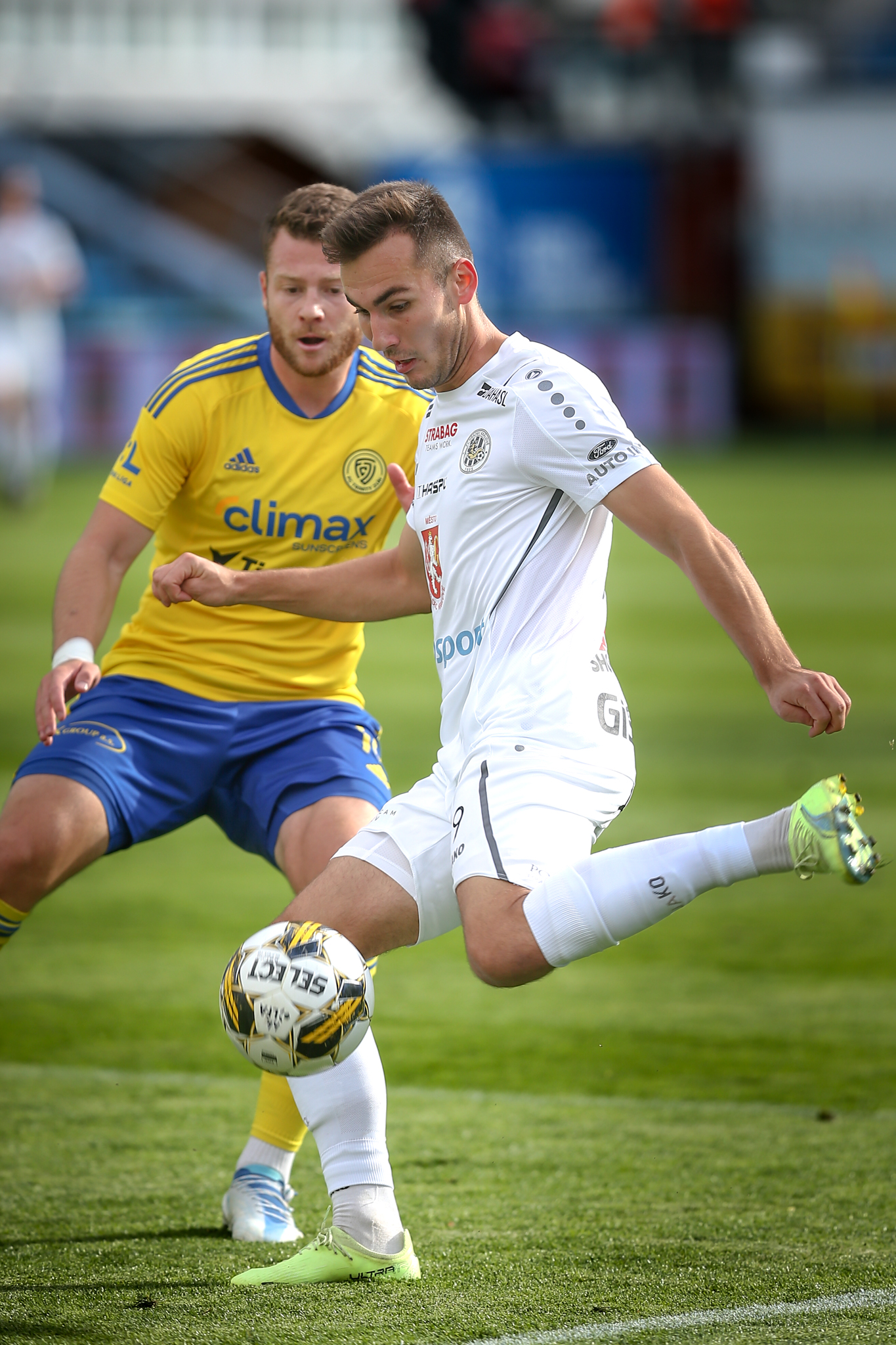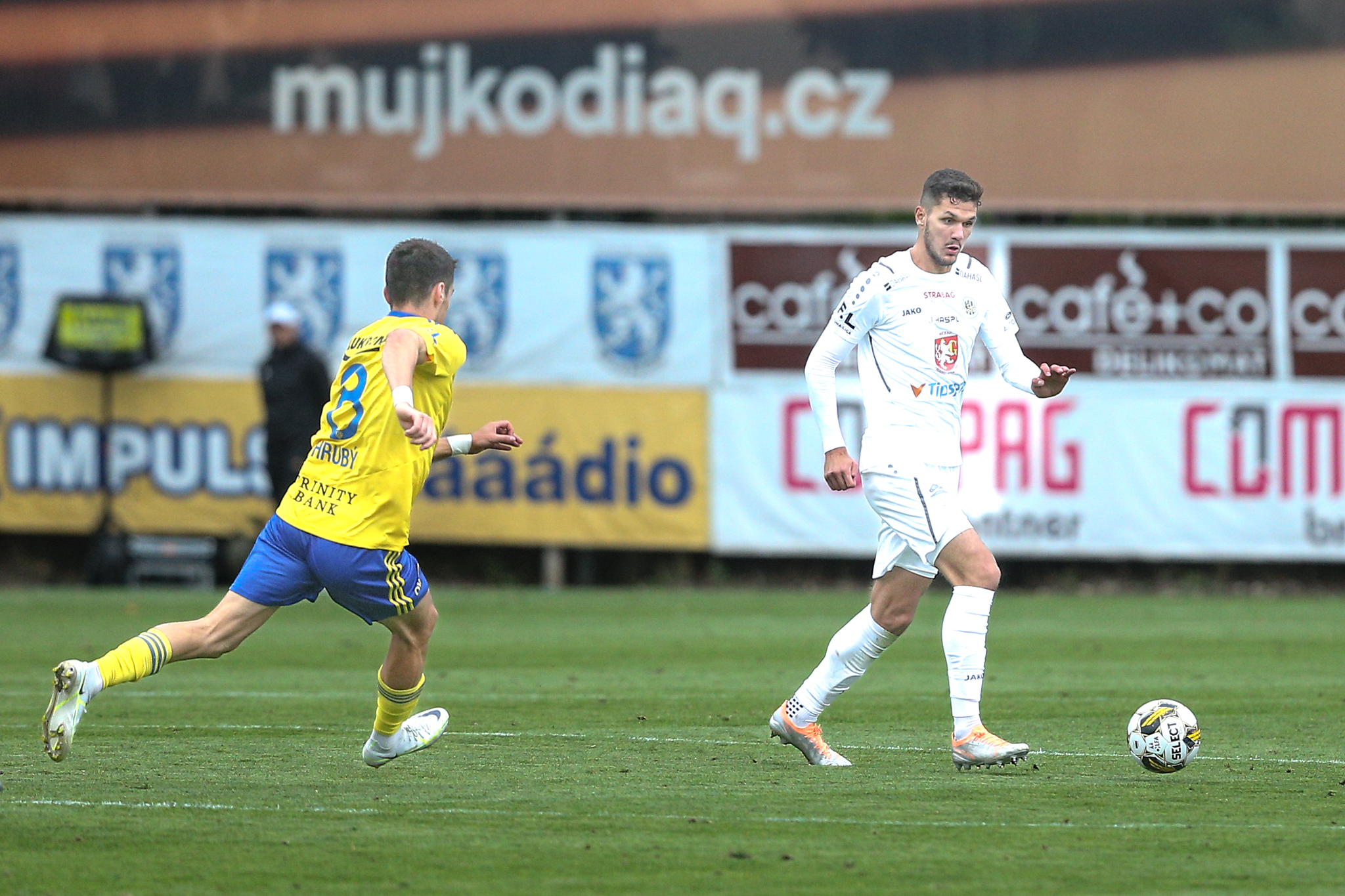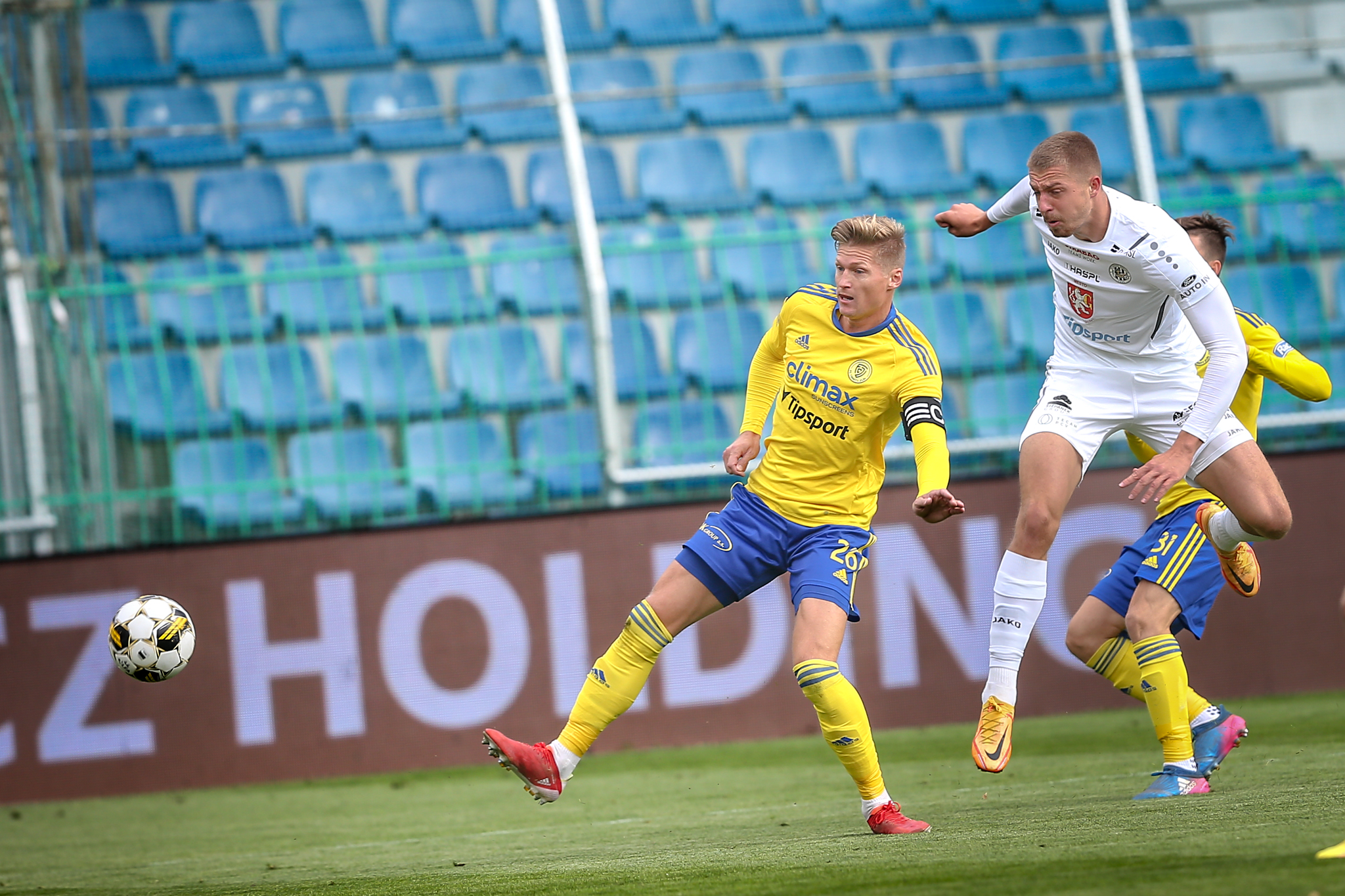 Domácí dál soupeře tlačili a v závěru poločasu vyslal povedenou střelu metr nad břevno z velkého vápna svou slabší pravačkou Matěj Ryneš, po trestném kopu v nastavení skončila v podobných místech i střela Daniela Vašulína z otočky ve skrumáži.