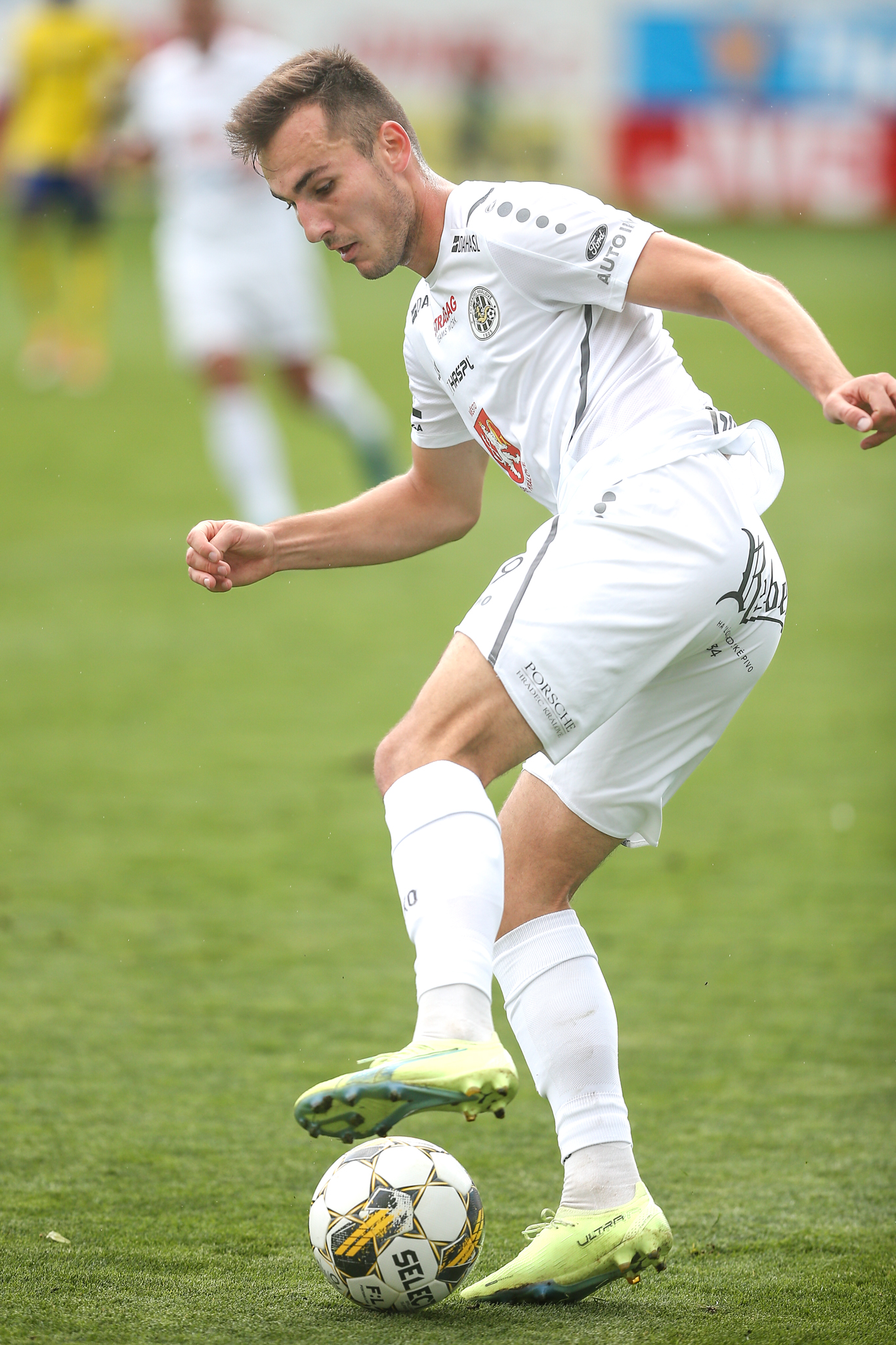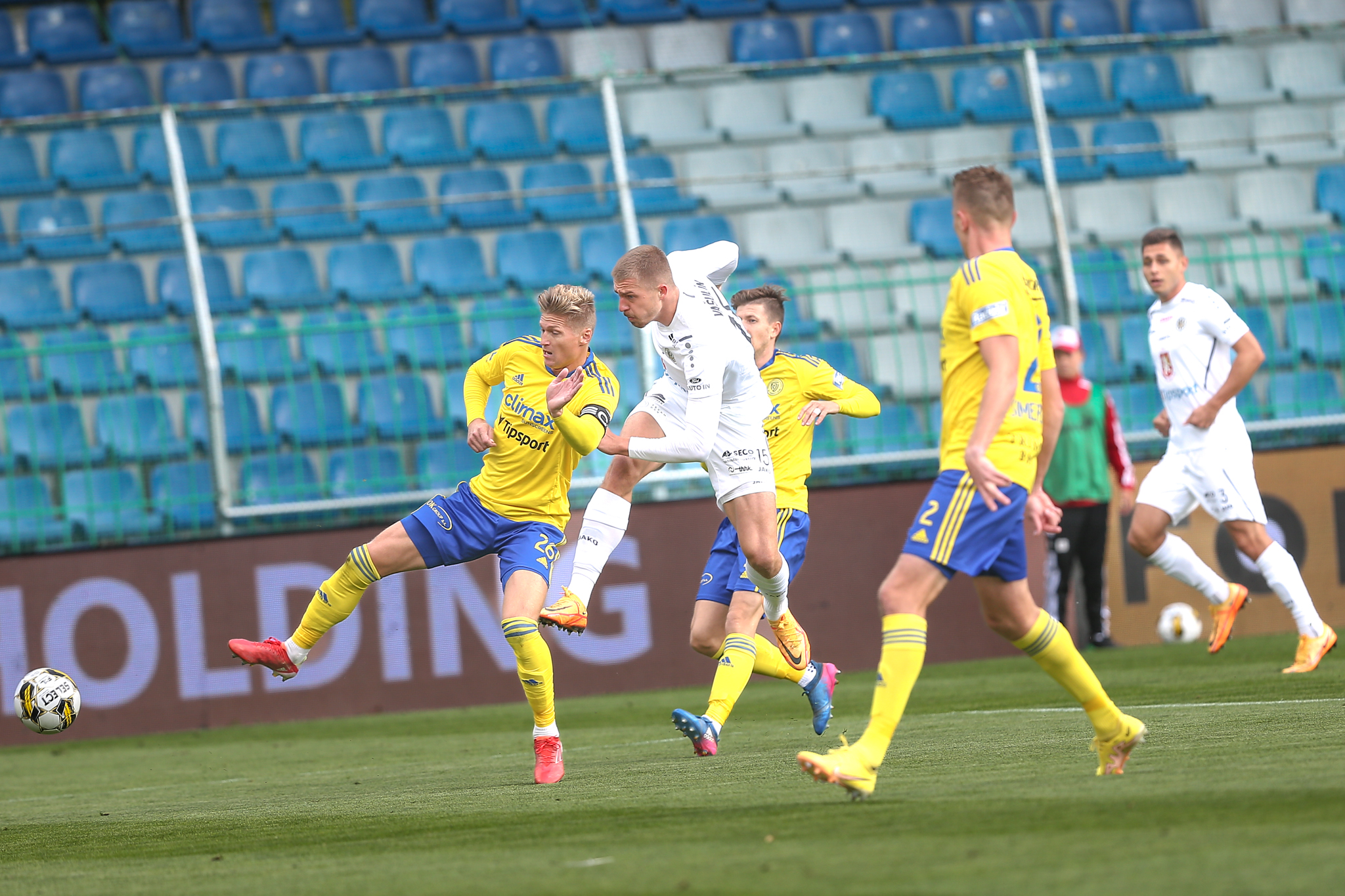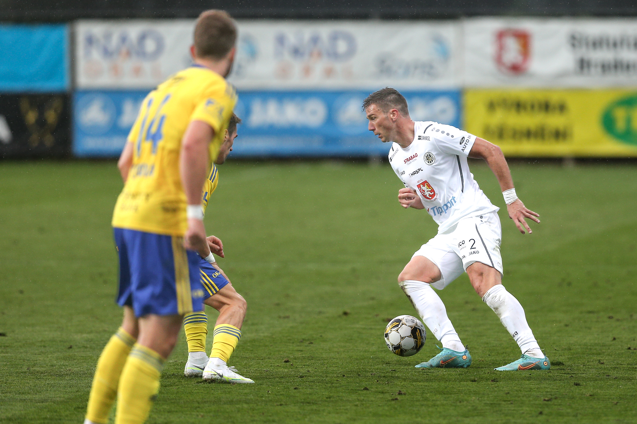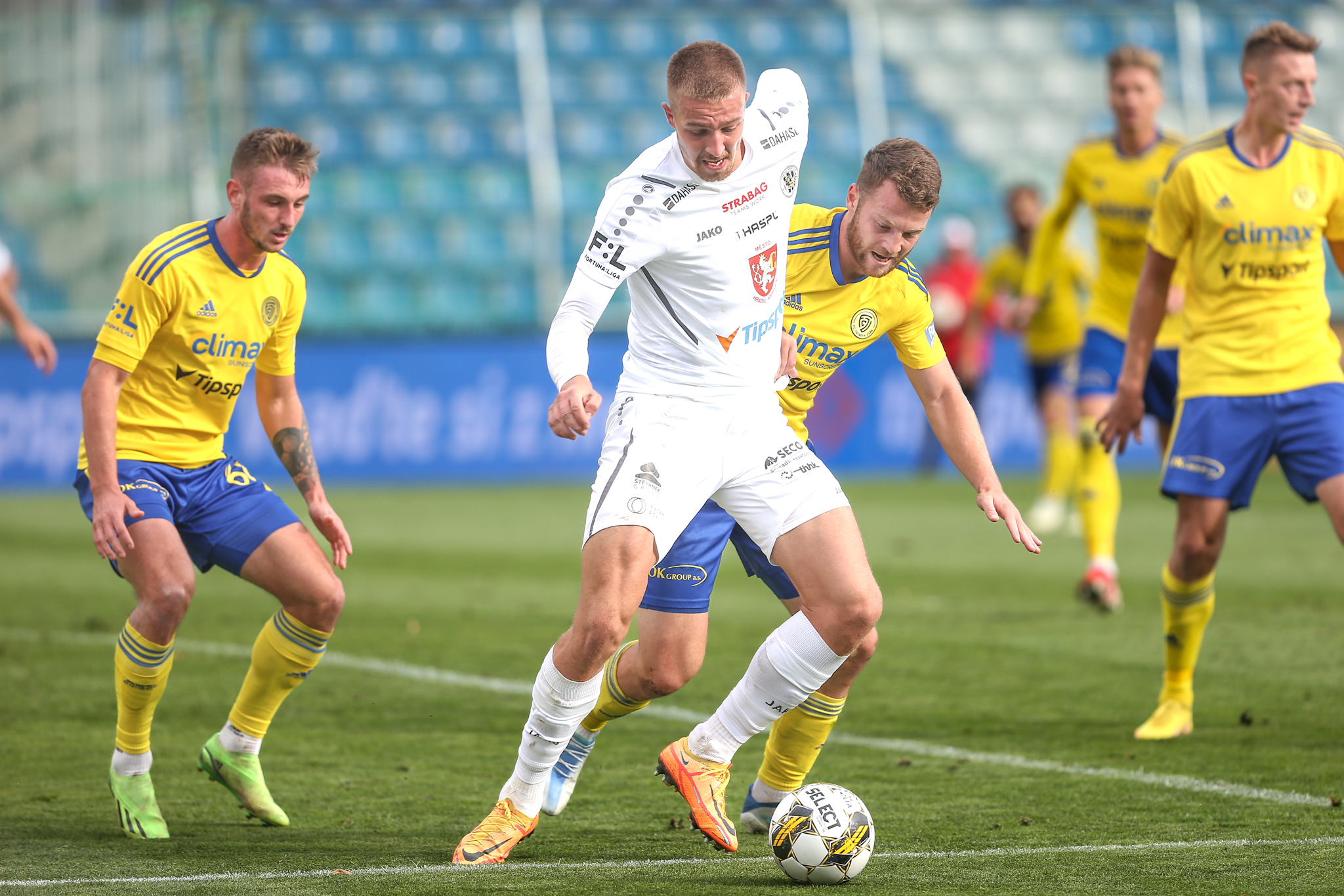 Domácí dál soupeře tlačili a v závěru poločasu vyslal povedenou střelu metr nad břevno z velkého vápna svou slabší pravačkou Matěj Ryneš, po trestném kopu v nastavení skončila v podobných místech i střela Daniela Vašulína z otočky ve skrumáži.