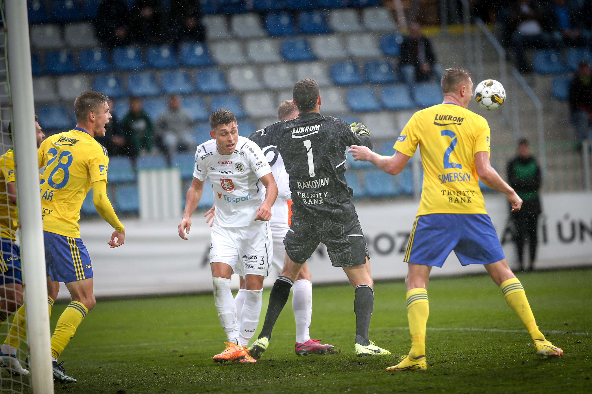 Až ve 30. minutě poslal Vojtěch Smrž další kroucený pas do šestnáctky vzduchem. Brankář Rakovan nebyl jistý při výběhu, kuriózní hlavička klečícího Kodeše ho přeletěla a situaci pojistil po Kubalově dorážce z úhlu do odkryté brány vlastním tělem za cenu rohu Simerský.