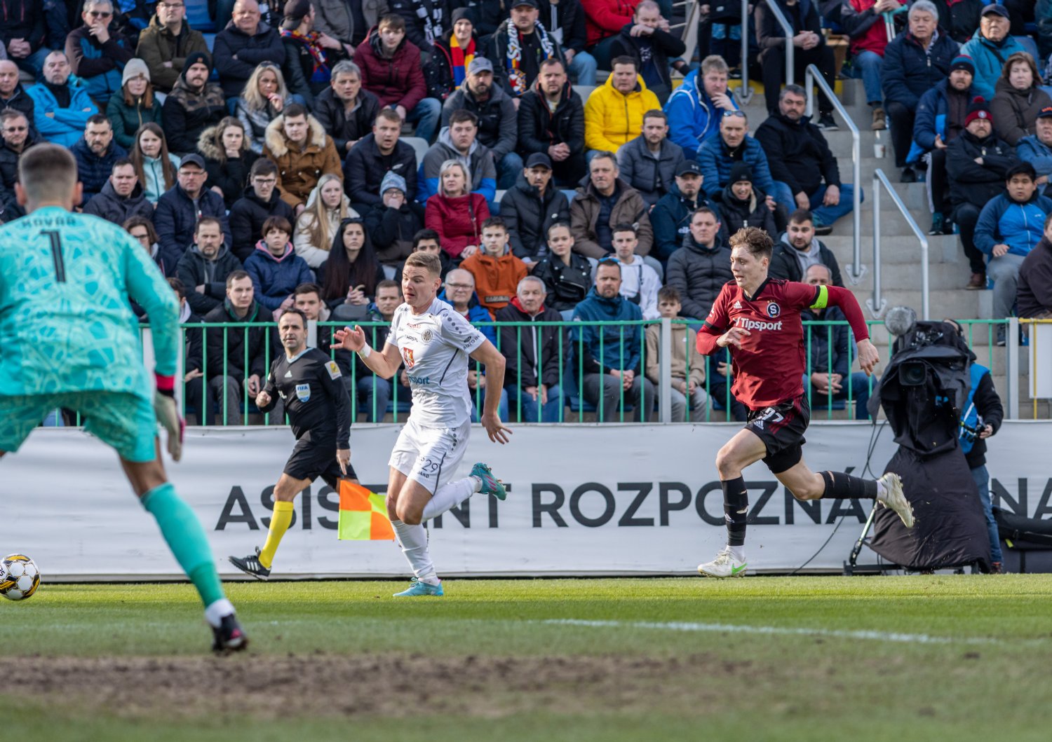 Po půlhodině hry se Pražané radovali z úvodní trefy, když míč do branky po rohovém kopu uklidil Krejčí. Rozhodčí ale ihned signalizoval, že se na celou situaci podívá ještě na videu. Tam nakonec zjistil, že Kuchta, který byl v ofsajdové pozici, jasně ovlivnil hru a branka tak nemohla platit. Krátce před koncem první půle ale Sparta přeci jen skórovala. Čvančara využil volného prostoru, vypálil, a i když Bajza dokázal jeho pokus vyrazit, na šťastnou dorážku Lukáše Haraslína už byl krátký – 0:1.