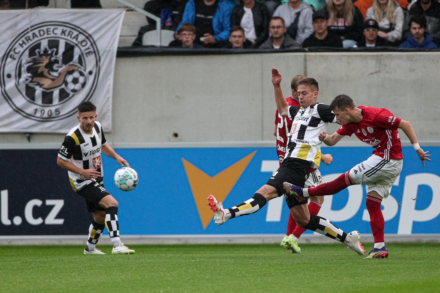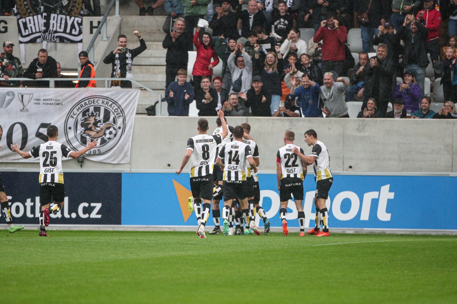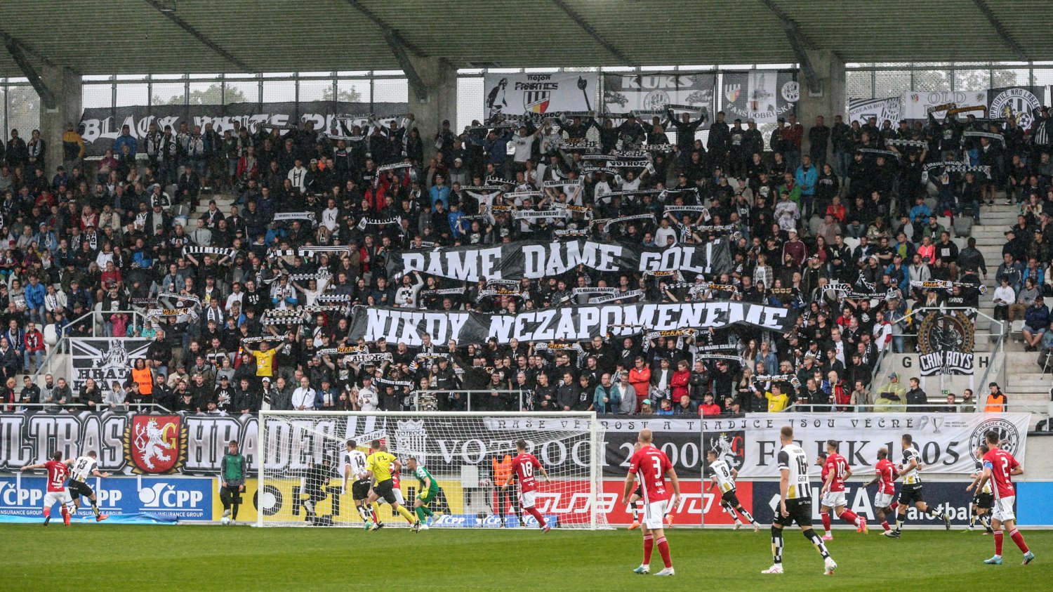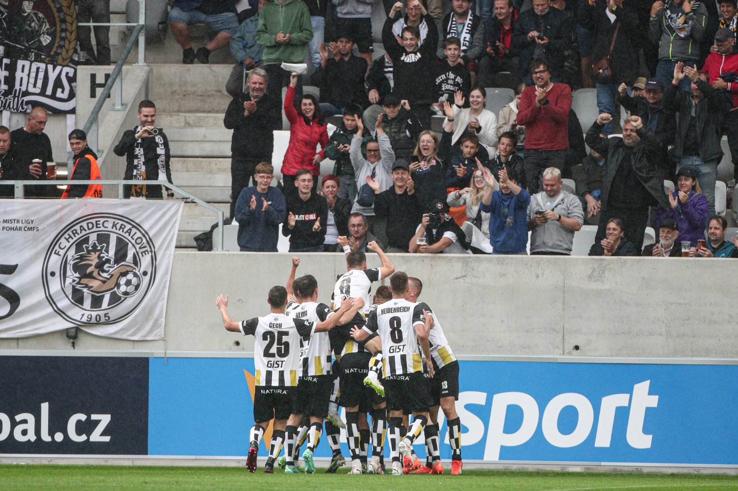 O to se v 19. minutě poprvé postaral doklepnutím z extrémní blízkosti Daniel Vašulín a stylově se nesmazatelně zapsal do historie klubu právě hlavní útočník A-týmu. O tři minuty později už kdejakému pravému hradeckému fanouškovi z euforie vytryskly slzy dojetí do očí. Po krásné kombinaci už mohl zakončovat Ladislav Krejčí, ale míč propadl ještě k Danielu Horákovi a ten zkušeně zakončil za Šípoše a připsal si svůj premiérový gól ve FORTUNA:LIZE.