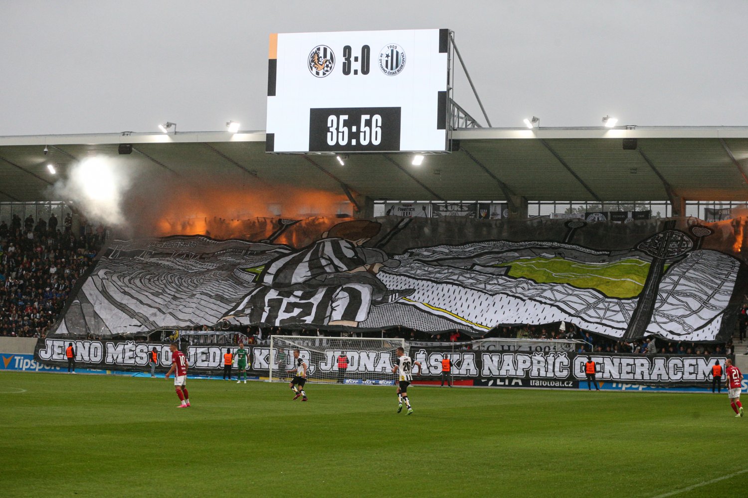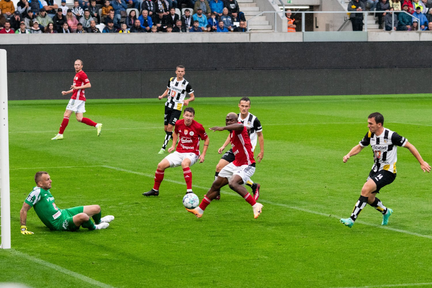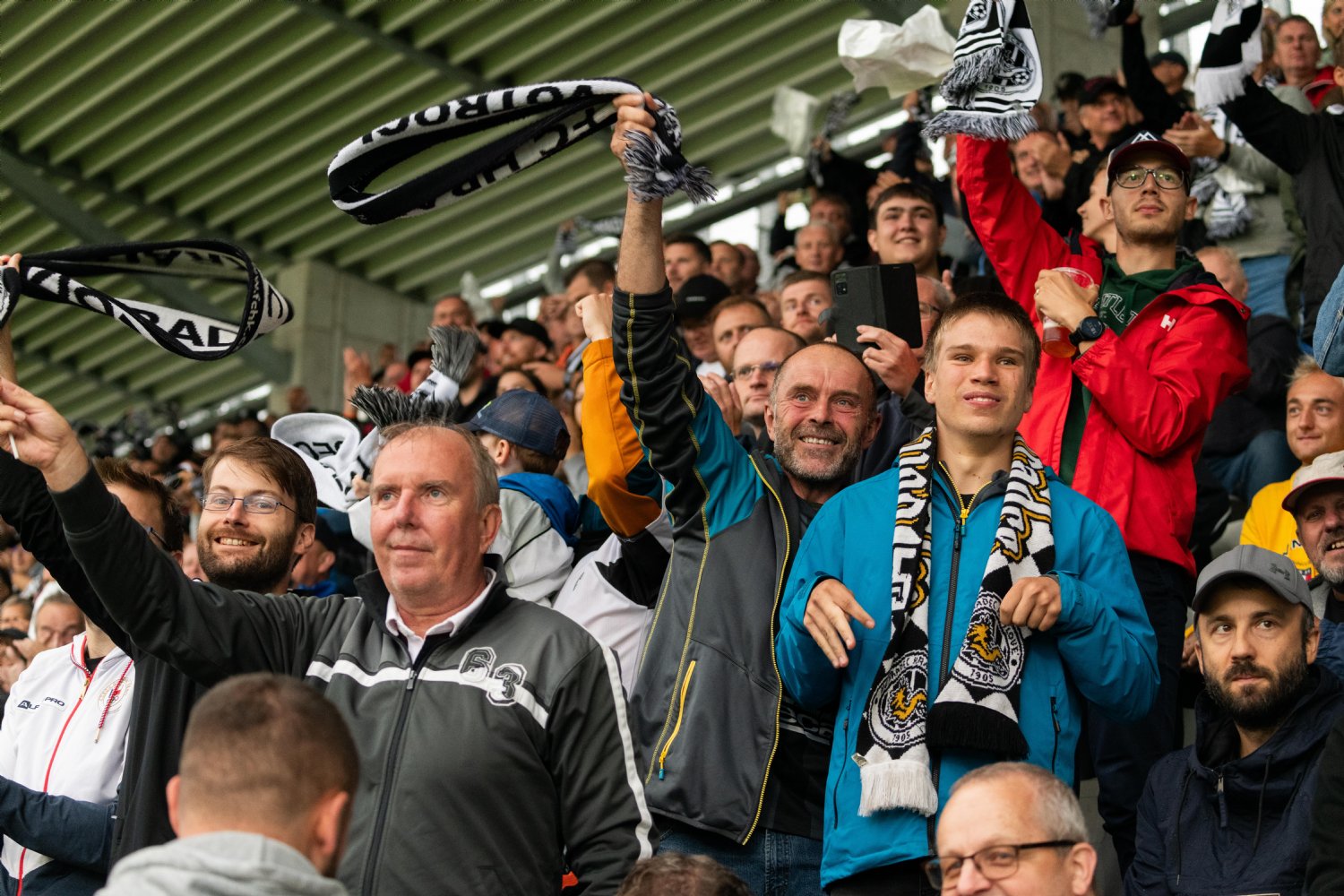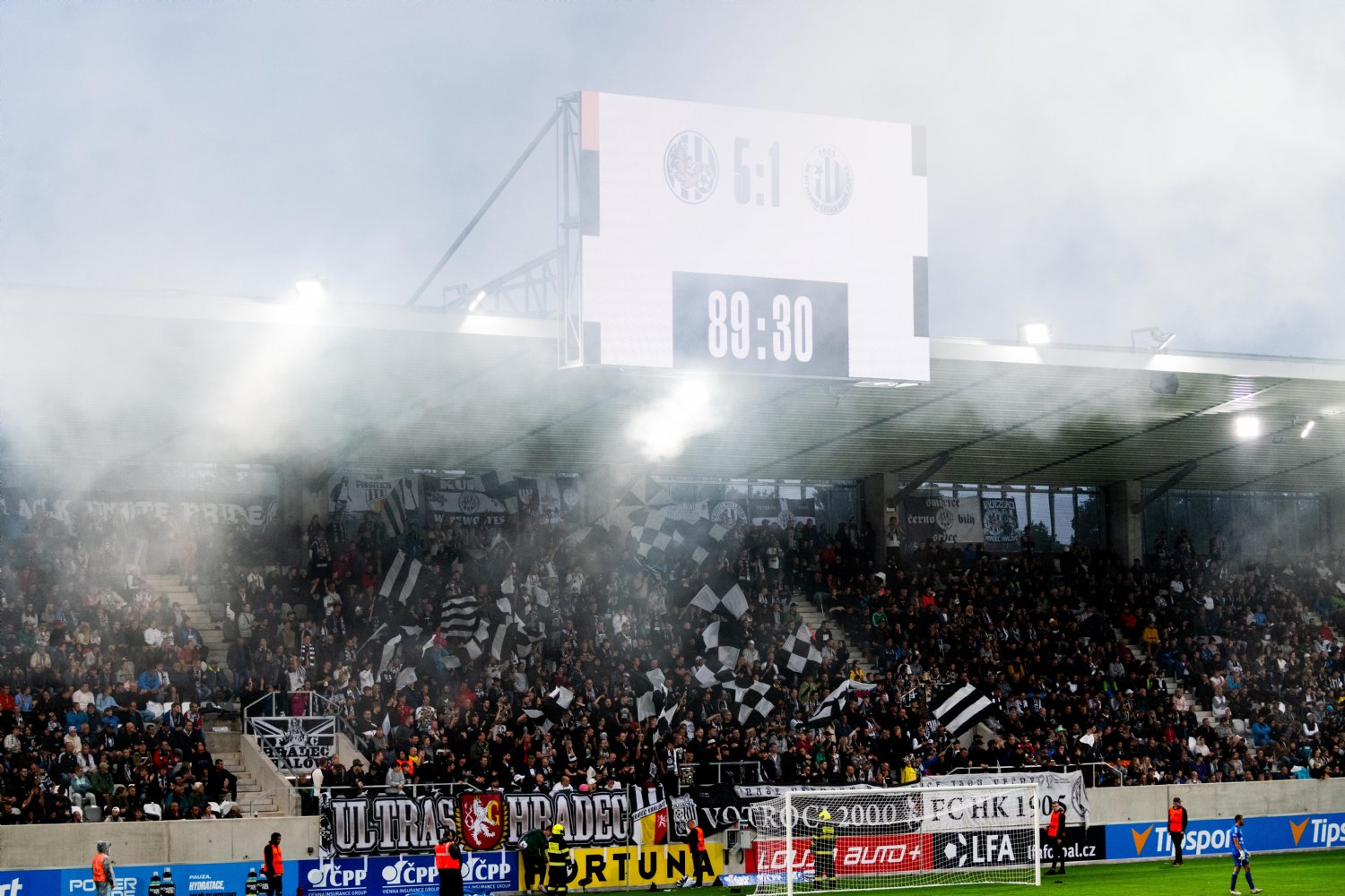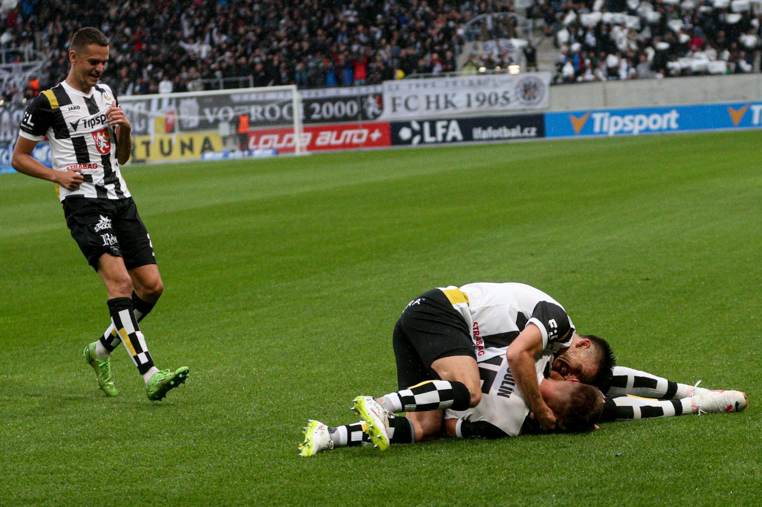 O to se v 19. minutě poprvé postaral doklepnutím z extrémní blízkosti Daniel Vašulín a stylově se nesmazatelně zapsal do historie klubu právě hlavní útočník A-týmu. O tři minuty později už kdejakému pravému hradeckému fanouškovi z euforie vytryskly slzy dojetí do očí. Po krásné kombinaci už mohl zakončovat Ladislav Krejčí, ale míč propadl ještě k Danielu Horákovi a ten zkušeně zakončil za Šípoše a připsal si svůj premiérový gól ve FORTUNA:LIZE.