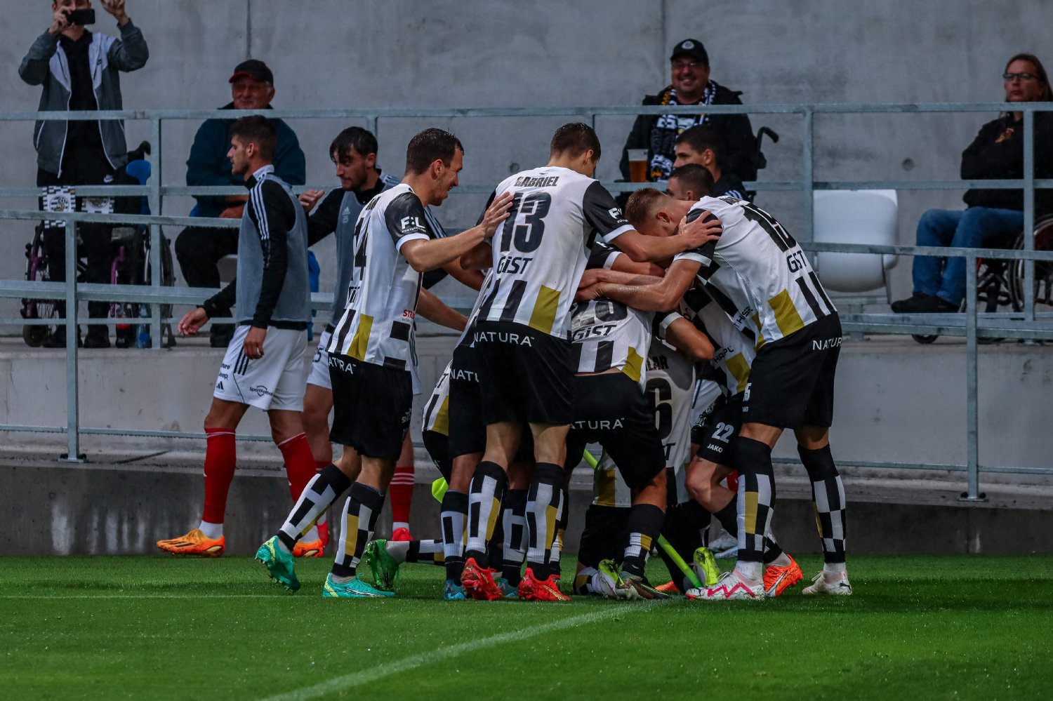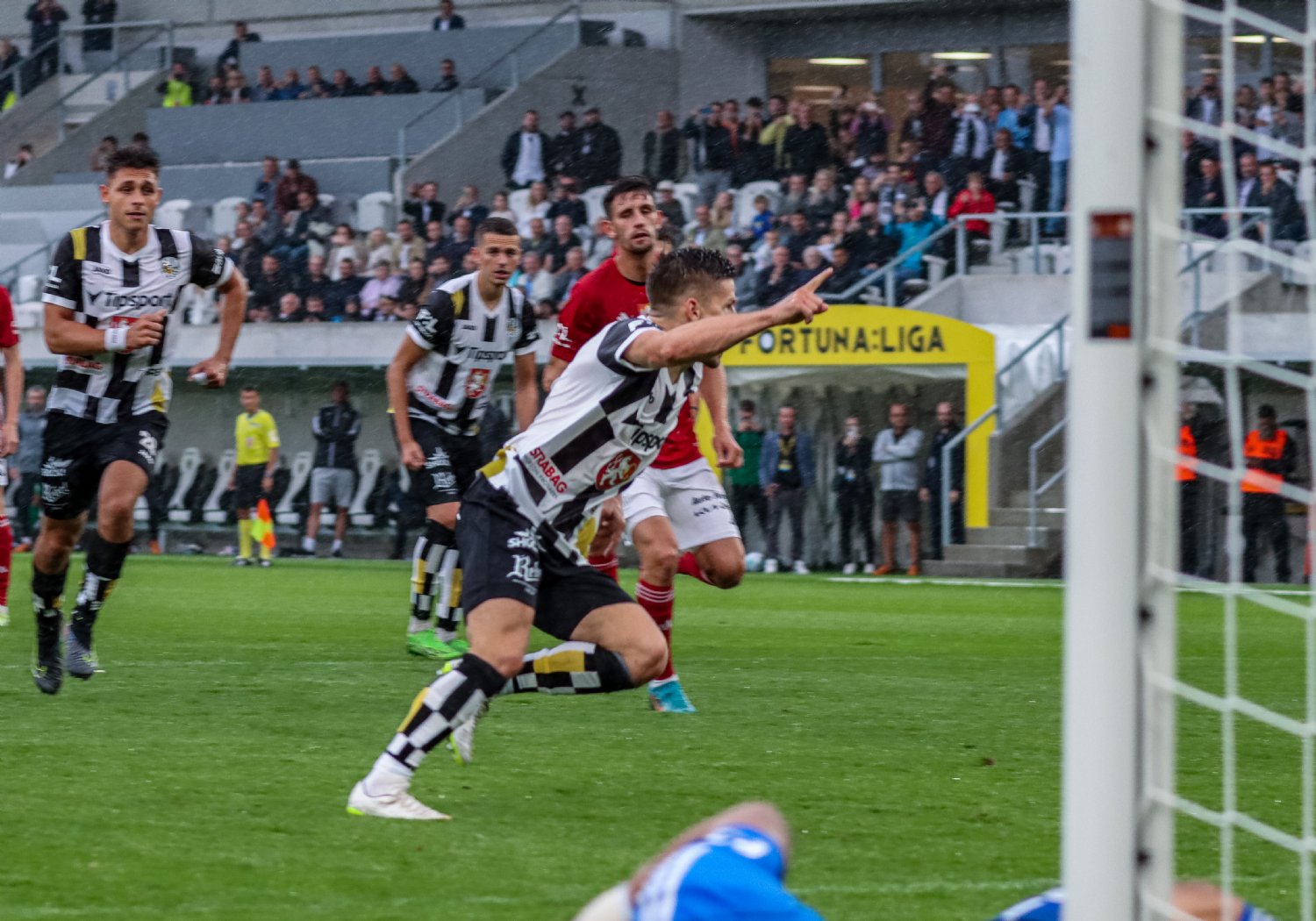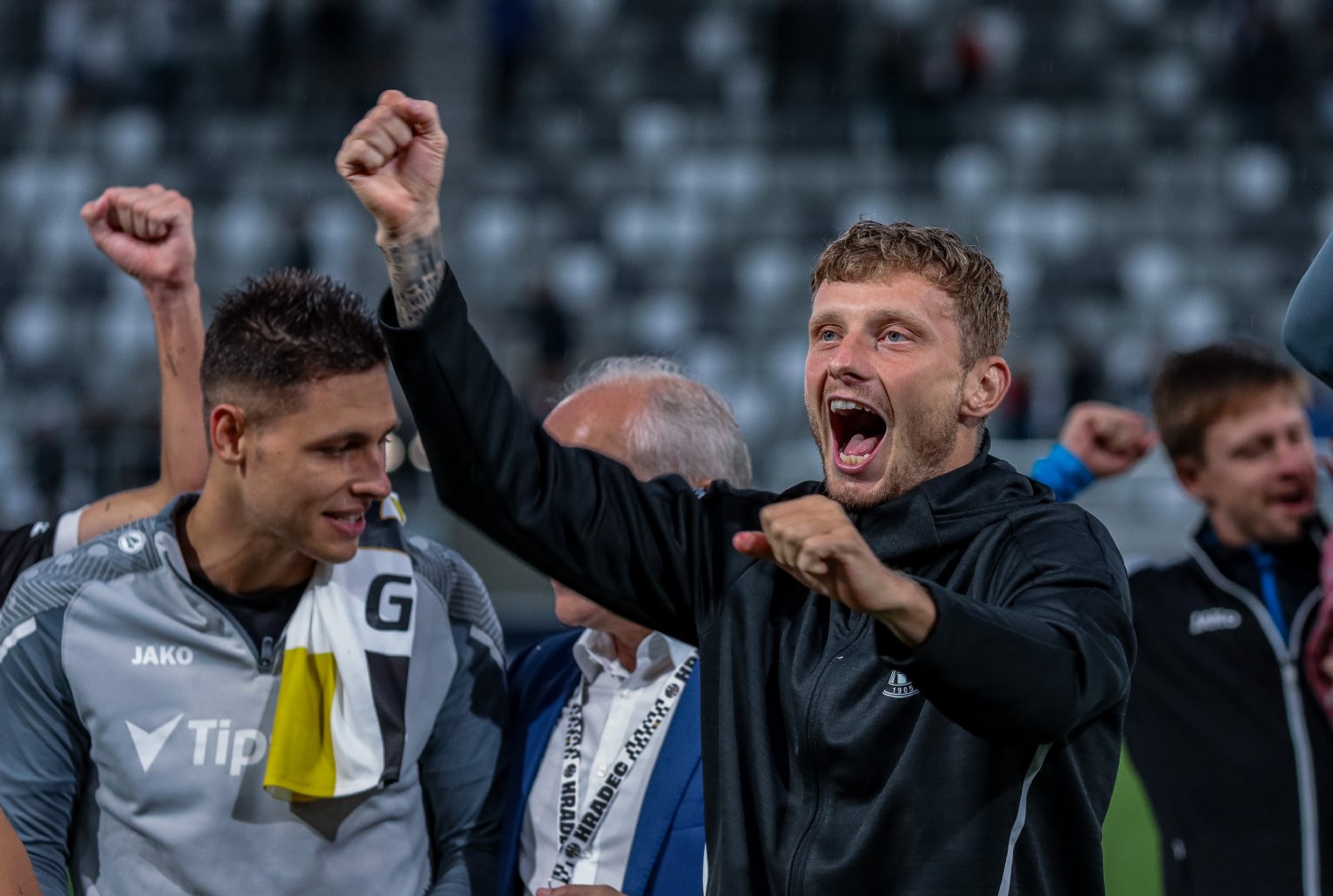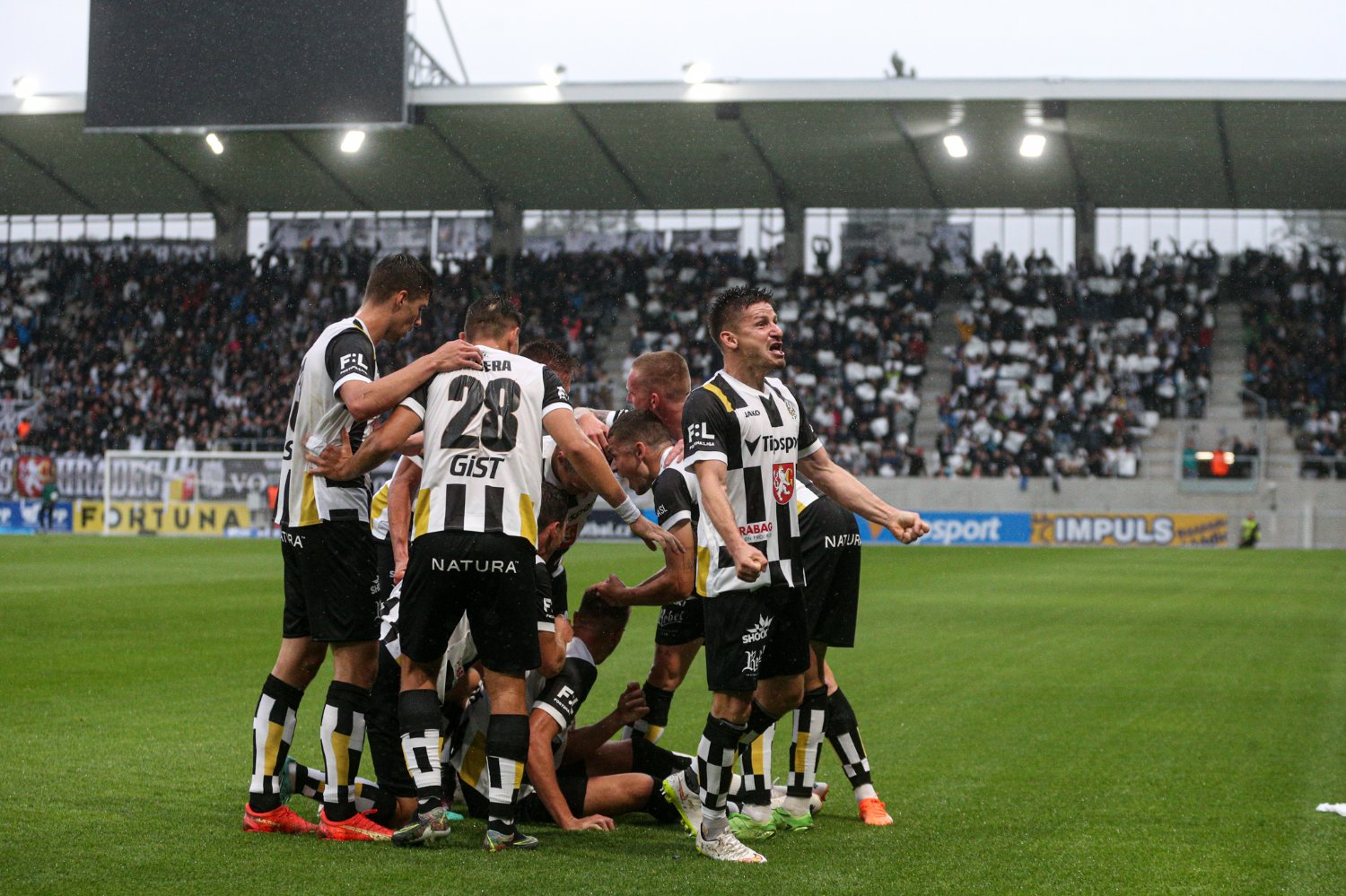 O to se v 19. minutě poprvé postaral doklepnutím z extrémní blízkosti Daniel Vašulín a stylově se nesmazatelně zapsal do historie klubu právě hlavní útočník A-týmu. O tři minuty později už kdejakému pravému hradeckému fanouškovi z euforie vytryskly slzy dojetí do očí. Po krásné kombinaci už mohl zakončovat Ladislav Krejčí, ale míč propadl ještě k Danielu Horákovi a ten zkušeně zakončil za Šípoše a připsal si svůj premiérový gól ve FORTUNA:LIZE.
