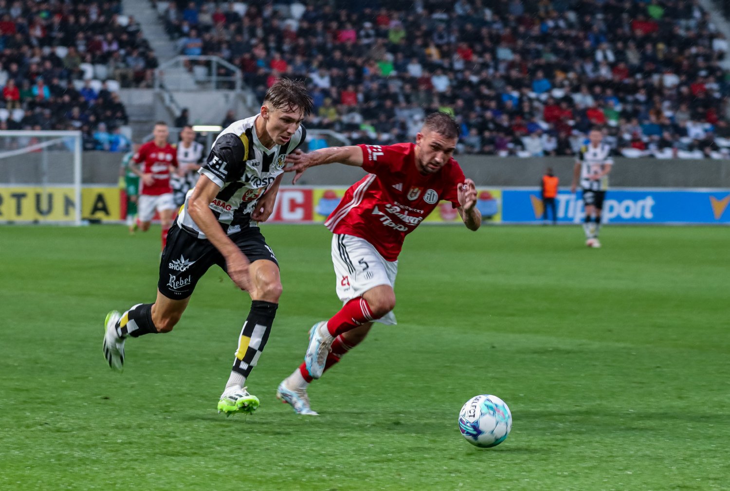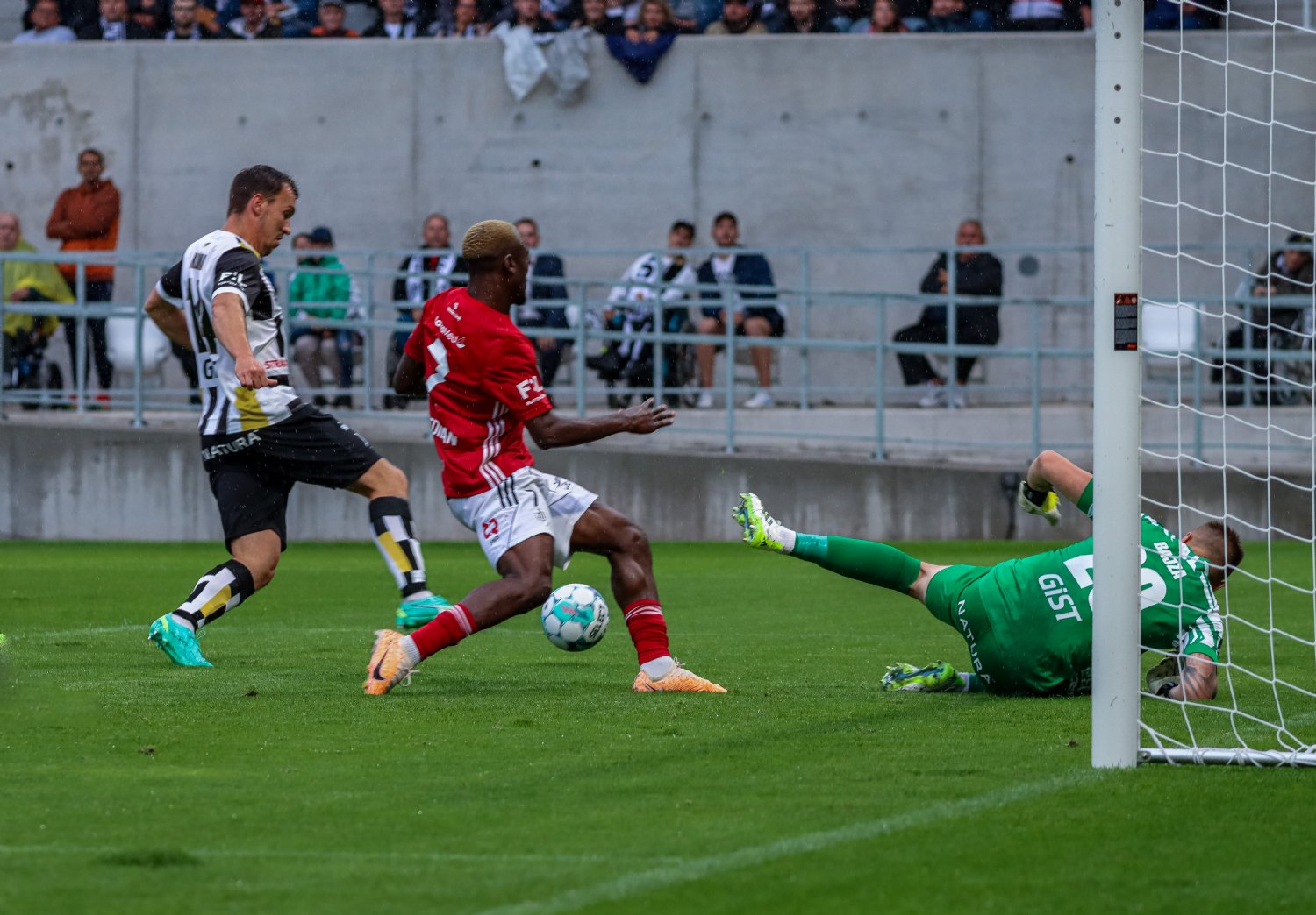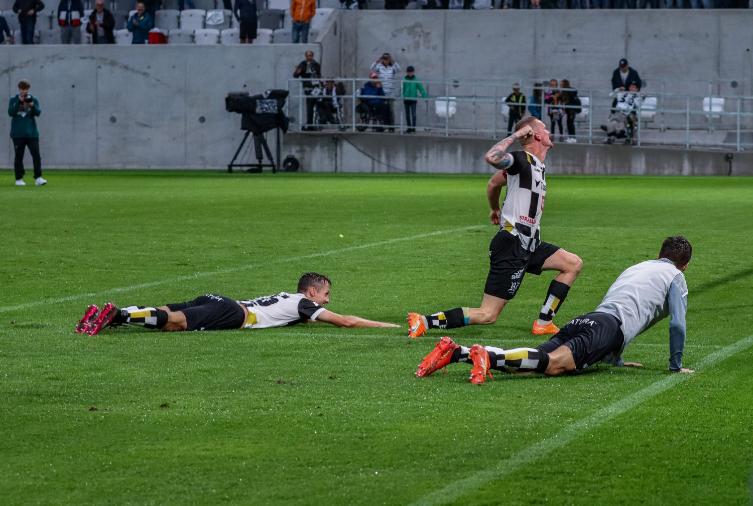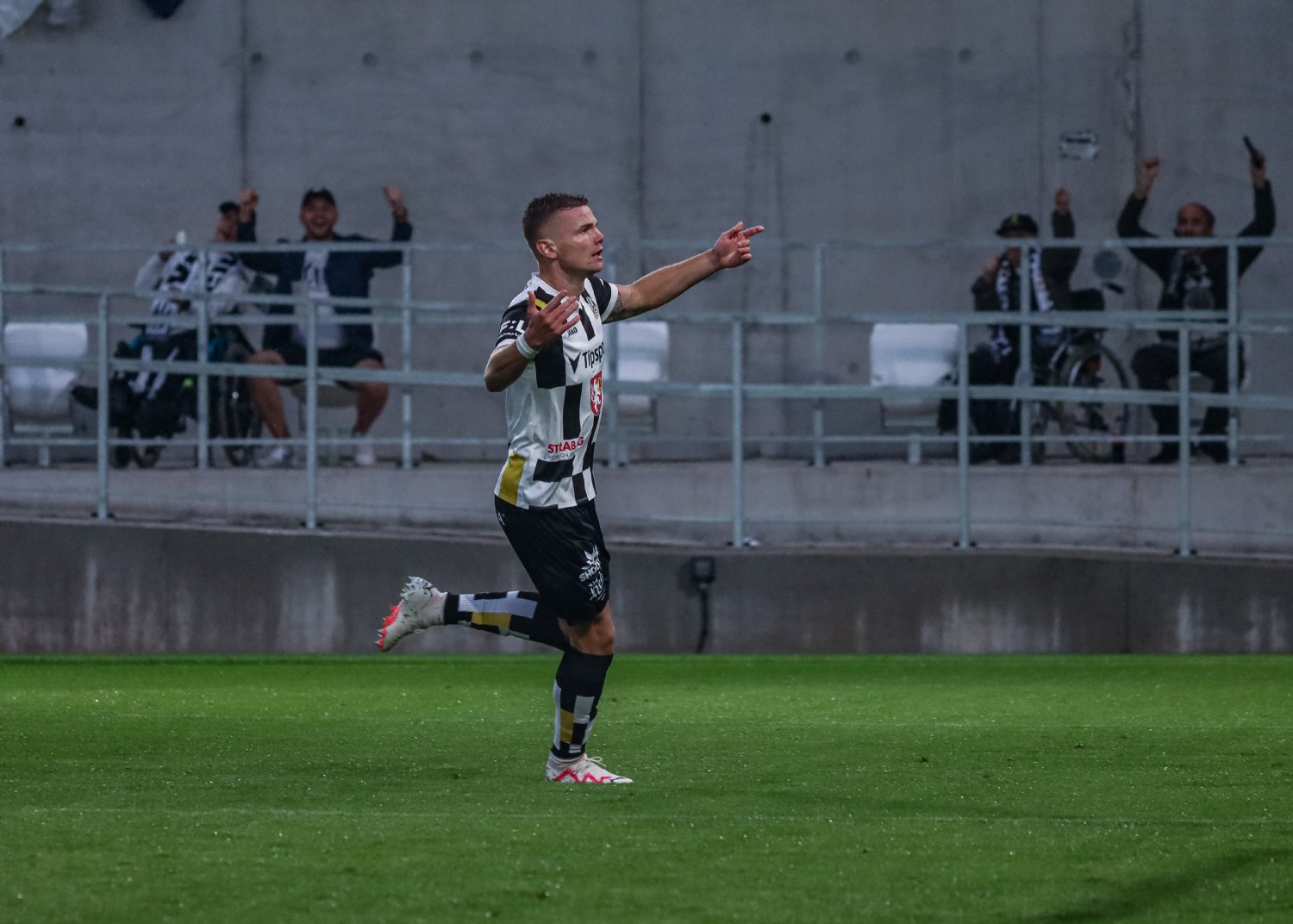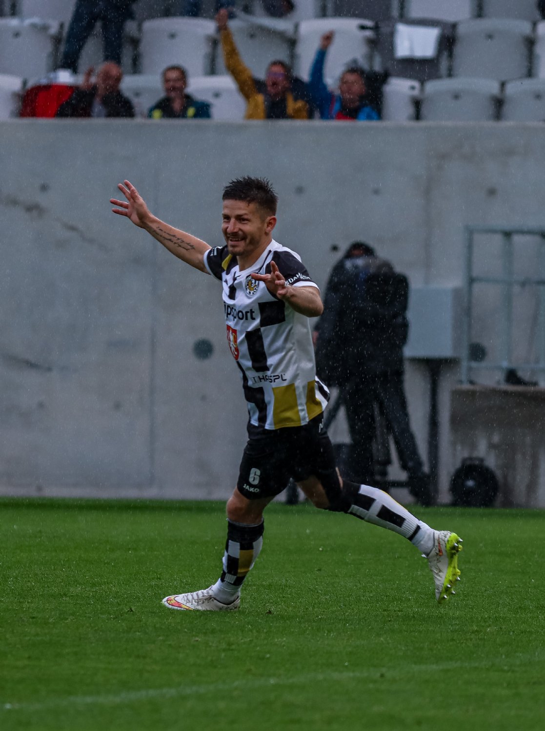 O to se v 19. minutě poprvé postaral doklepnutím z extrémní blízkosti Daniel Vašulín a stylově se nesmazatelně zapsal do historie klubu právě hlavní útočník A-týmu. O tři minuty později už kdejakému pravému hradeckému fanouškovi z euforie vytryskly slzy dojetí do očí. Po krásné kombinaci už mohl zakončovat Ladislav Krejčí, ale míč propadl ještě k Danielu Horákovi a ten zkušeně zakončil za Šípoše a připsal si svůj premiérový gól ve FORTUNA:LIZE.