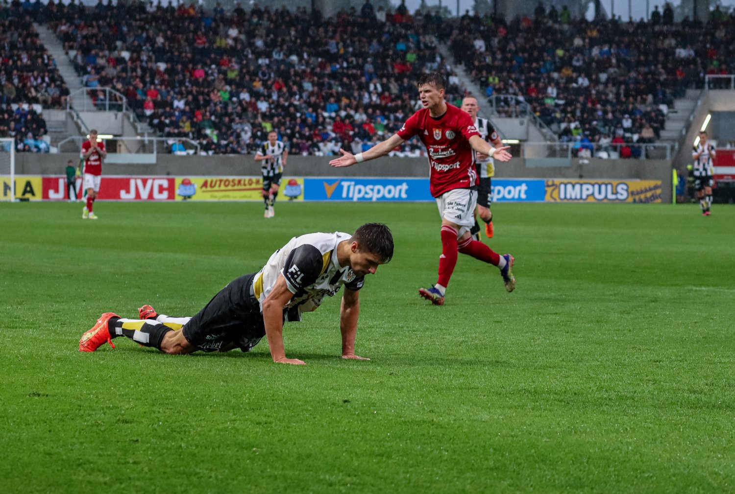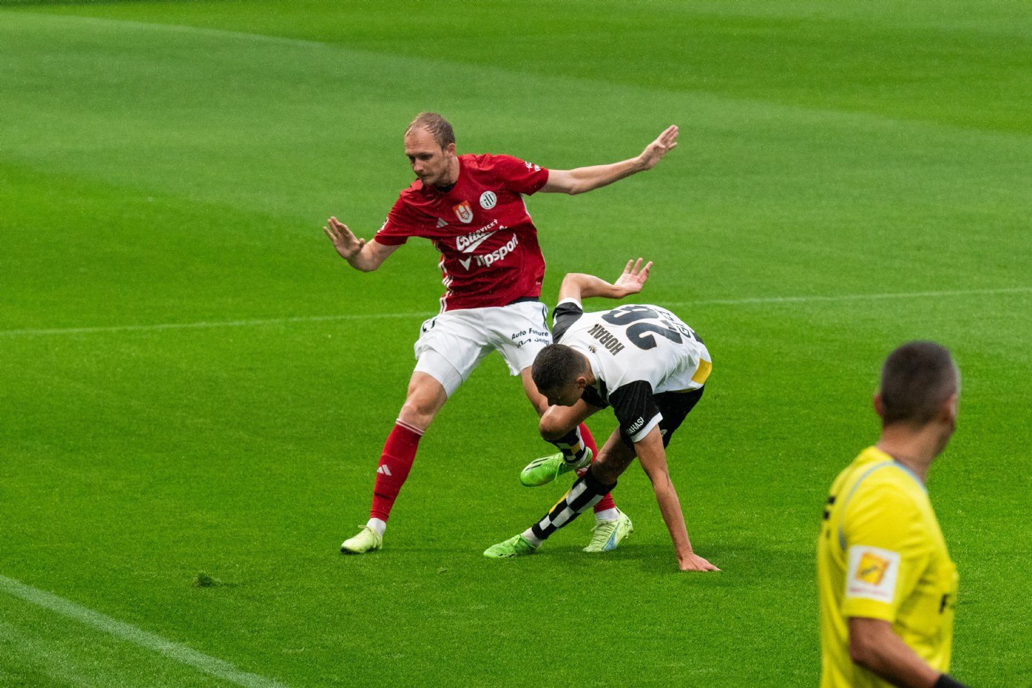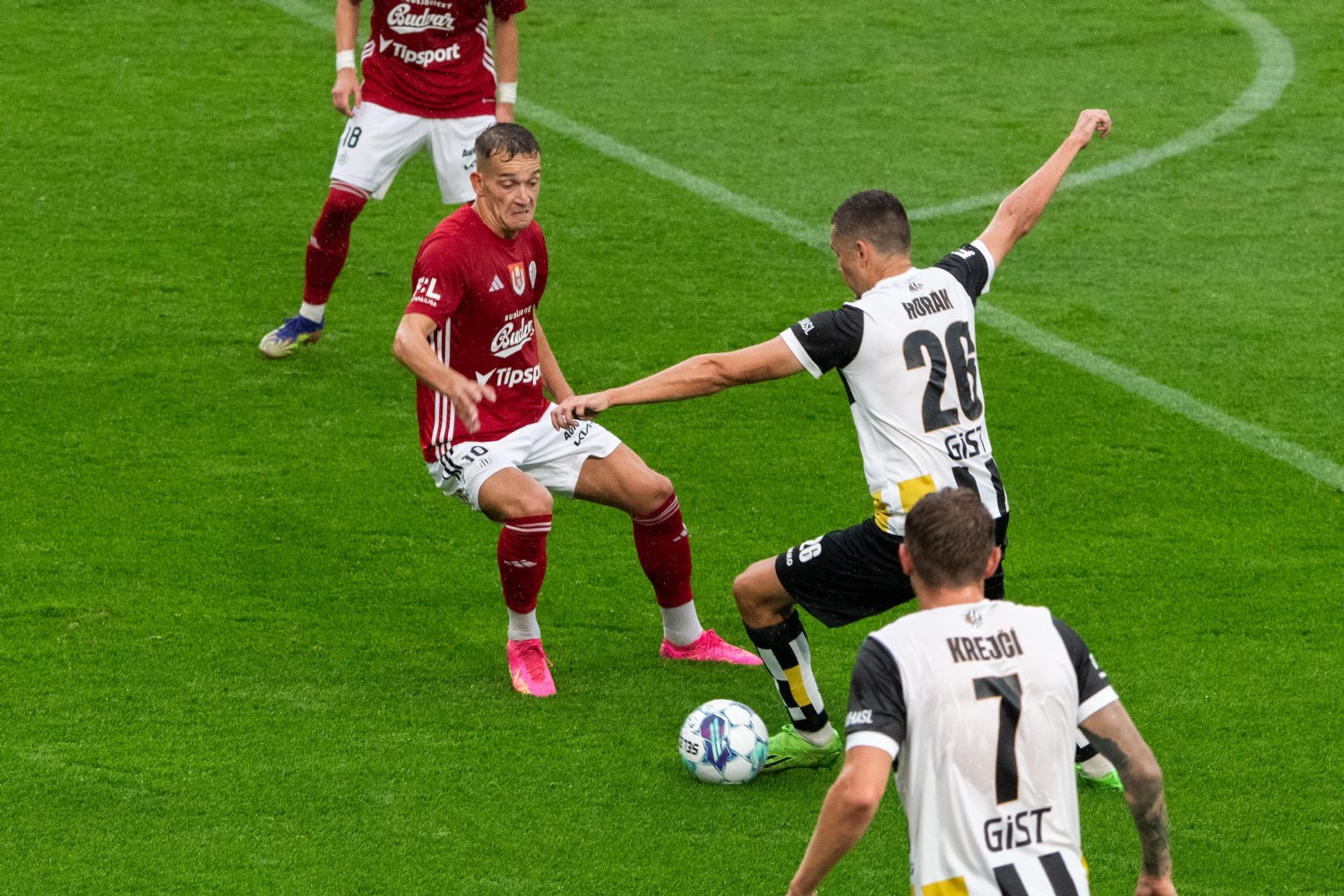 Nádherný fotbal pokračoval dál. Oba týmy se tlačily do útoku a ve 31. minutě vedli Votroci už o tři góly. O branku se postaraly dvě největší předsezónní posily. Václav Pilař totiž kolmicí dokonale vyslal Ladislava Krejčího a ten kolem brankáře hostů procedil míč – 3:0. Radost namlsaným Východočechům mohl mírně zkazit Adediran ve 42. minutě, ale i když Bajzu překonal, slovenského brankáře zastoupil jeden z obránců na čáře. Snový poločas skončil 3:0 pro FC Hradec Králové.