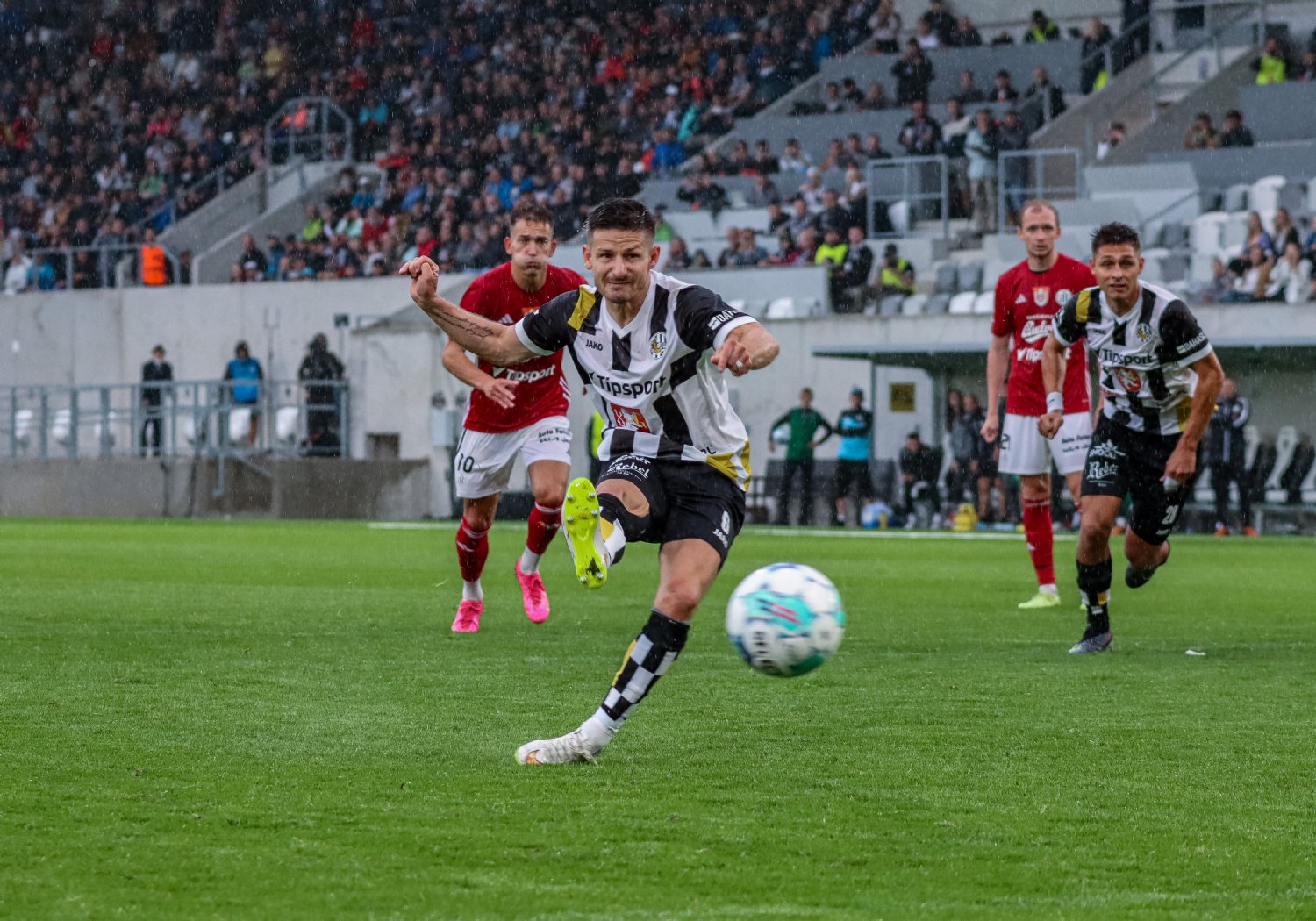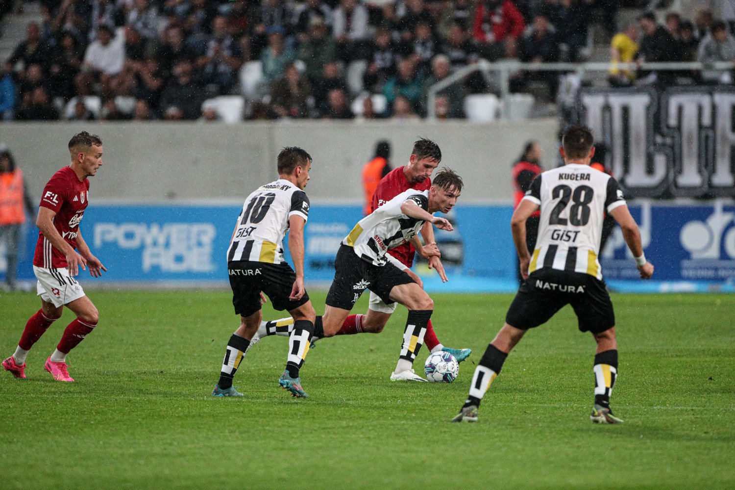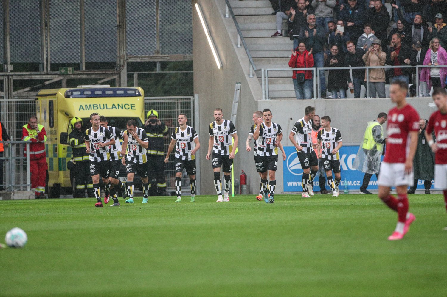Domácí si od té doby výsledek hlídali a do své obrany soupeře příliš nepouštěli. Naopak Adam Gabriel neustále piloval pravou lajnu a posílal do vápna jeden centr za druhým. V 75. minutě našel Vašulína, ale ten v krkolomné pozici zamířil vedle. Pokud někdo z domácích fotbalistů pociťoval drobné zklamání, byl to Matěj Koubek. Ten totiž dal v 93. minutě gól, který náležitě oslavil, ale pro předcházející faul mu byl videem sebrán. I tak ale více než 9000 fanoušků vidělo historický zápas, který pro Votroky snad nemohl dopadnout lépe. Ti pokřtili novou arénu pěti góly, což se jim po návratu do ligy povedlo poprvé.