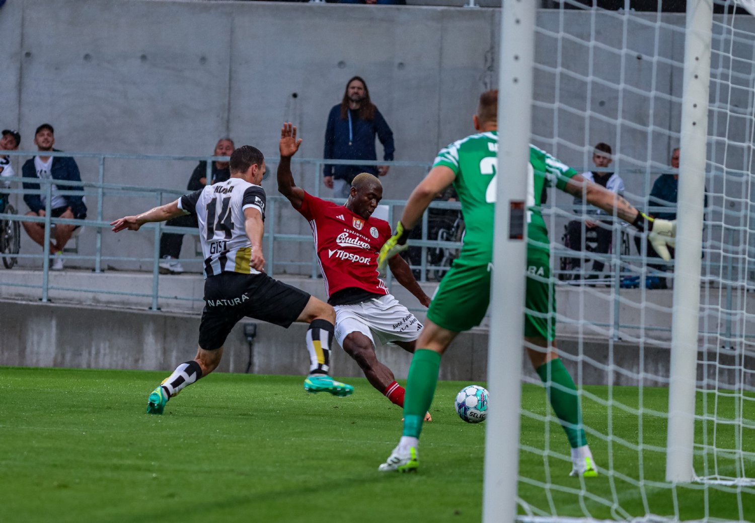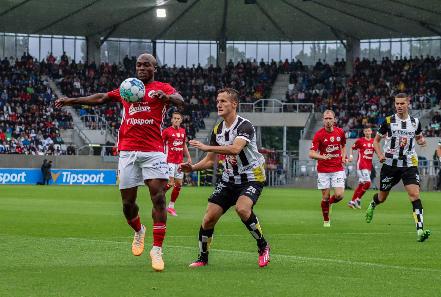 Začátek utkání provázely očekávatelné drobné komplikace a zdálo se, že to poznamenalo i natěšené Votroky na pažitu. Začátek hodně ofenzivně laděného zápasu totiž patřil spíš Dynamu, které si vypracovalo dvě absolutně tutové příležitosti. V té první byl Adediran, který z malého vápna hlavou trefil Pavola Bajzu a stejně dopadl i jeho spoluhráč Hais. Za domácí se jako první mohl prosadit hlavou Heidenreich, ale ten ještě gejzír emocí ve zbrusu nové aréně nespustil.