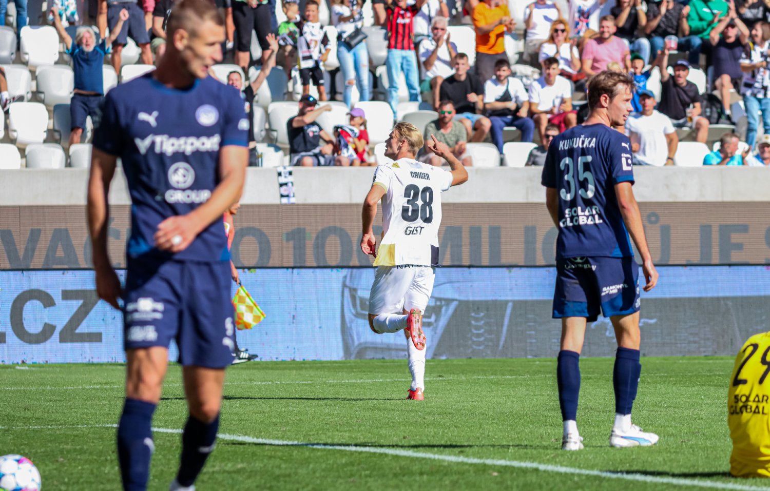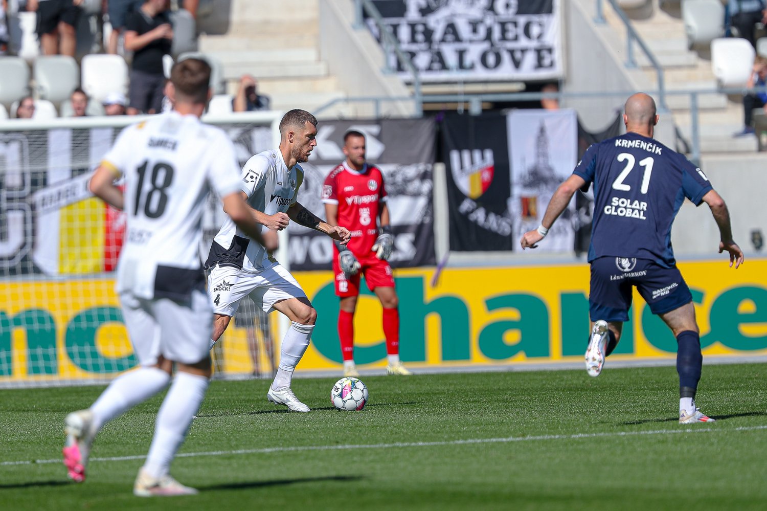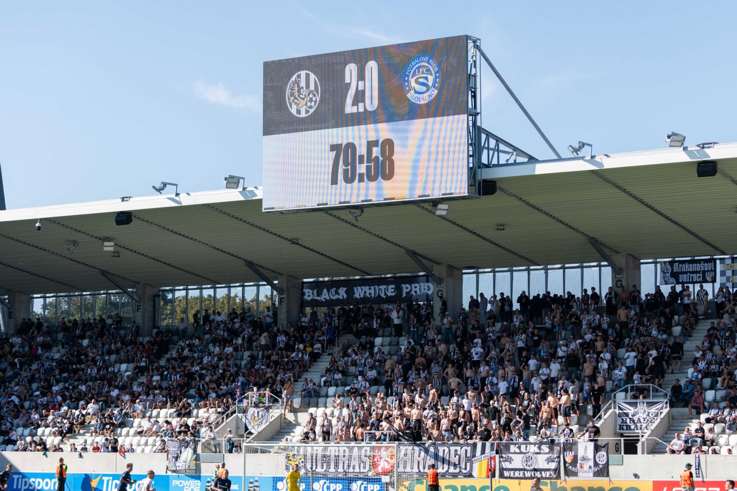 Po hodině hry bylo zřejmé, že Votroci se budou spoléhat především na pevnou obranu a rychlé protiútoky. Jeden takový pro černo-bílé přichystali v 67. minutě sami hráči Slovácka. Po nepřesné rozehrávce se totiž míče chopil Adam Griger, jenž si to okamžitě nasměřoval k soupeřově svatyni. Nejnovější akvizice hradeckého klubu si následně přehodila balón na pravou nohu a ránou do levé části brány nedala Hečovi šanci.
