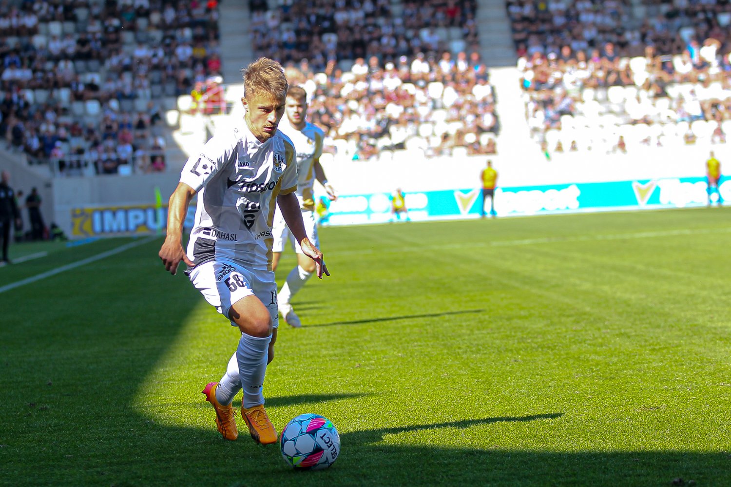 Úvod druhého poločasu se nesl v podobném duchu jako většina první půle a hned ve 47. minutě mohl hlavičkovat Griger, skvostný centr Samka však využít nedokázal. V následujících minutách se s míčem přeci jen začali více setkávat hosté, kteří se snažili o postupné dobývání hradeckého bloku. V 57. minutě to byl Krmenčík, jenž u pravého rohu velkého vápna zasekl balón a následně ho obstřelem poslal na vzdálenější tyč. Jeho pokus jen těsně minul Zadražilovu bránu.