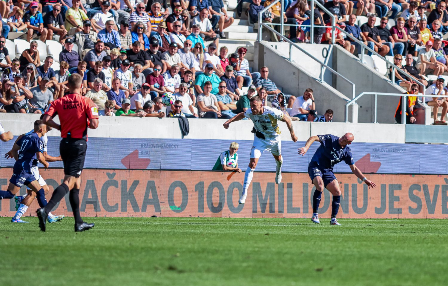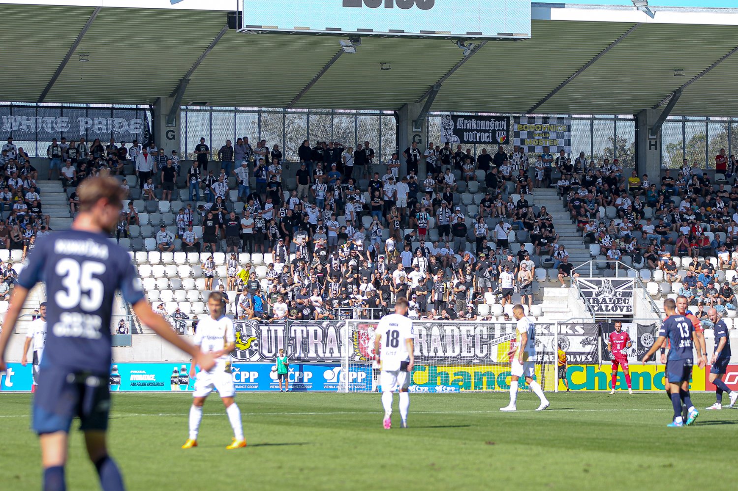To ve 34. minutě bylo vše jinak. Zhruba pět metrů před vápnem byl faulován Kodeš a Votroci měli k dispozici zajímavou standardku. K míči si stoupl hradecký šikula Adam Vlkanova, jenž přesným centrem našel neomylného Filipa Čiháka. Proti hlavičce směřující k pravé tyči neměl Heča nárok. Po pár minutách chtěli hradečtí příznivci zvedat ruce znovu, namotivovaný Čihák se totiž prosmýkl okolo dvou obránců na pravé straně a centrem našel volného Grigera, ten míč hrudí usměrnil na bránu, ale Heča dokázal pokus vytěsnit na tyč. Další předčasné oslavy přišly ve 40. minutě. Petrášek sice dostal míč do sítě, ale oranžovo-žlutý praporek letěl okamžitě nahoru. Domácí tak do šaten odcházeli za nejtěsnějšího vedení.