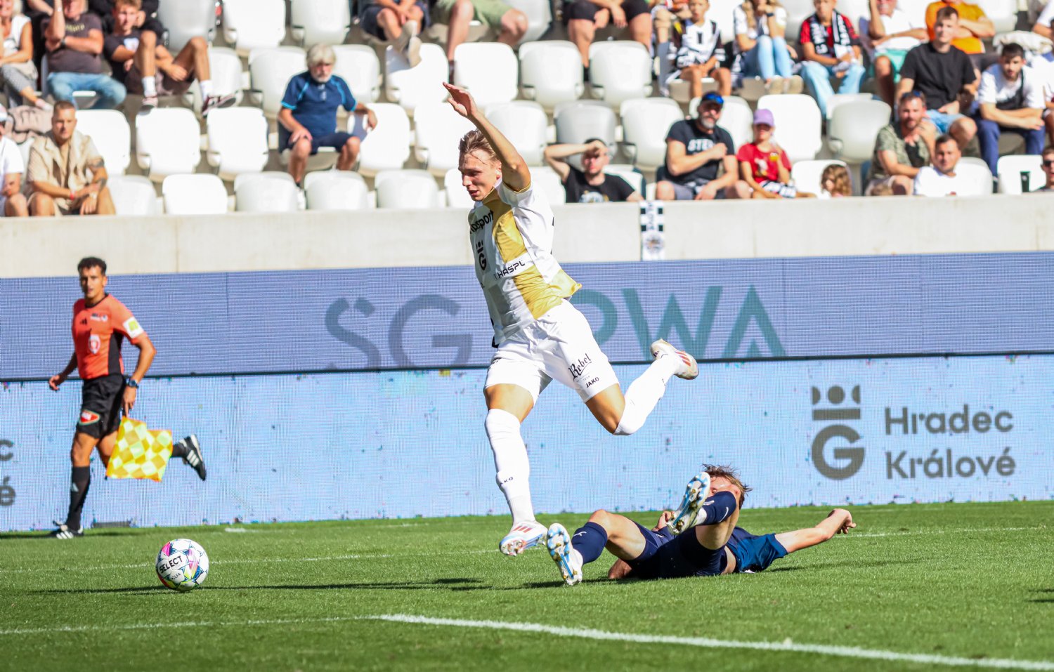 Hráči Slovácka přijeli Pod Lízátka s pětizápasovou šnůrou neporazitelnosti, tu chtěli Votroci ukončit a v prvním dějství to dávali jasně najevo. Ve 34. minutě vyústil hradecký tlak ve slibnou standardku, kterou v gól proměnil Čihák. Na 2:0 zvýšil Griger, jenž únik v 67. minutě vyřešil s chladnou hlavou rozeného střelce. V samotném závěru završil na 3:0 technickou ranou Čmelík. Po povedeném výkonu tak Votroci připisují velmi cenné body.