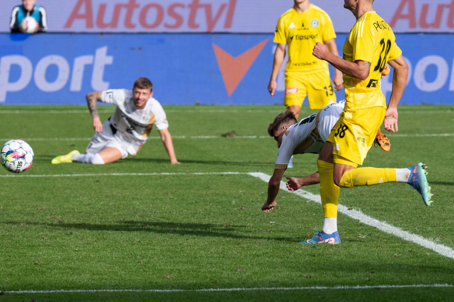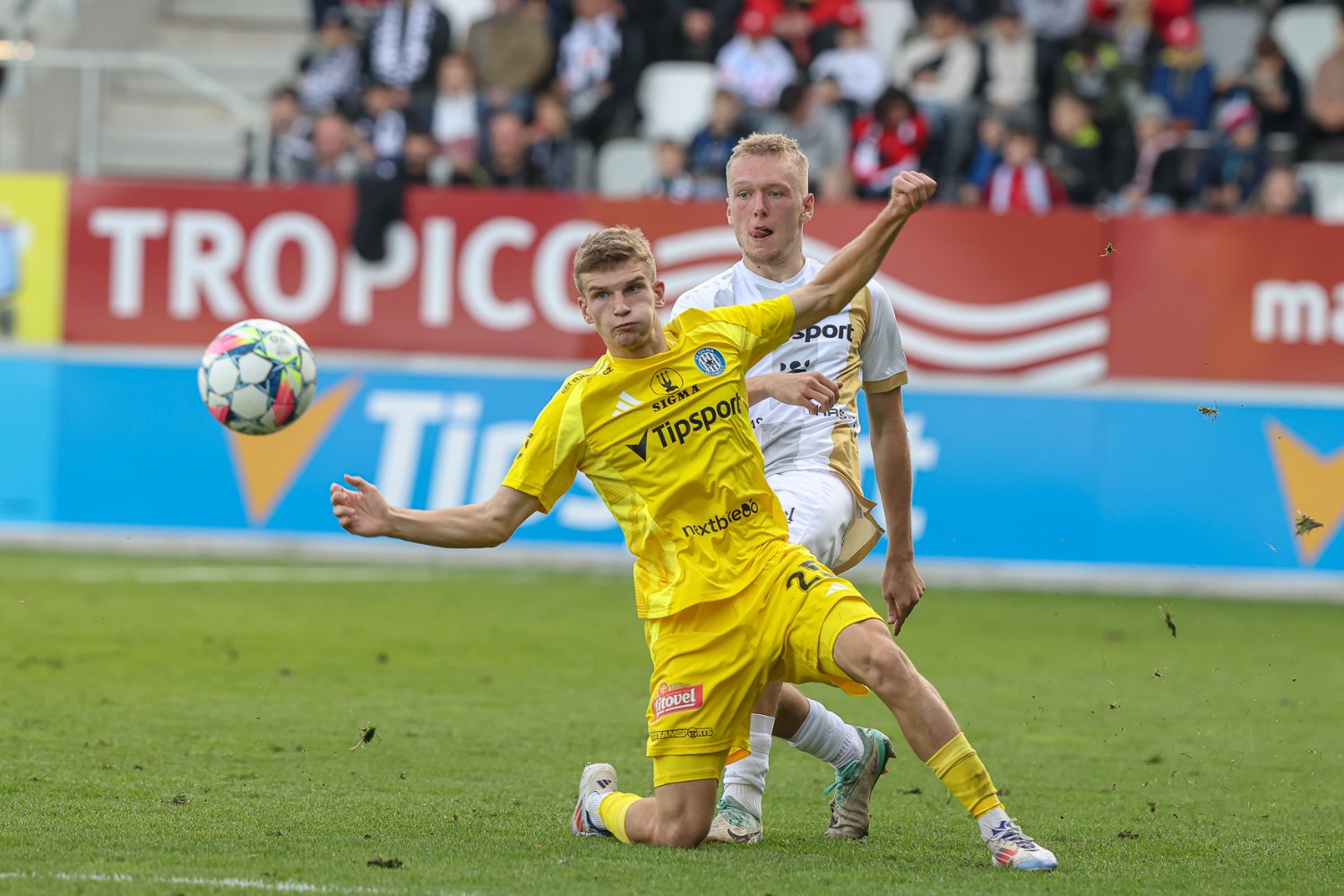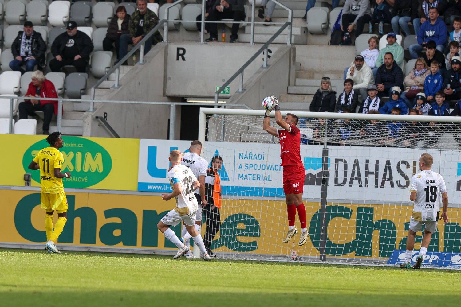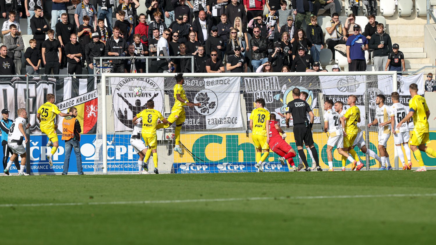 V 53. minutě se za centrem Horáka tlačil Čihák, ale před ním ještě stihl ve výskoku odvrátit Muritala. Nigerijec v souboji seslal vytáhlou hradeckou věž k zemi úderem loktem do obličeje a po přezkumu u videa byl pro Votroky nařízen hlavním arbitrem pokutový kop. Třetí penalta v sezóně, třetí exekutor a třetí zahozený pokus. Tentokrát z puntíku selhal kapitán Kodeš, a na skóre se tak nic nezměnilo. Support domácích fans ovšem neutichal, dvanáctý hráč nadále hnal v Malšovické aréně Východočechy za bodovým ziskem.