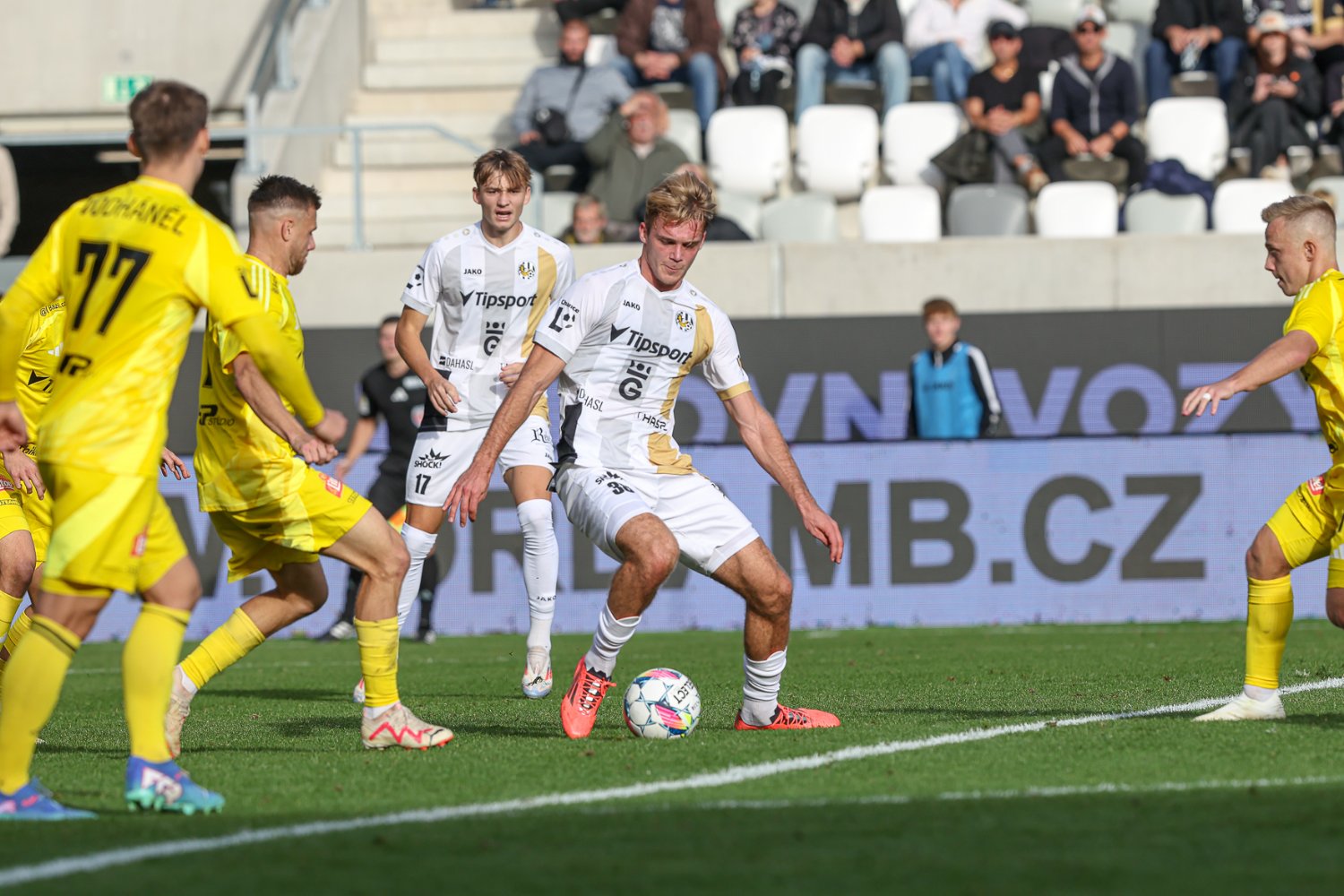 Ofenzivní hru oživil příchozí Griger, spolu s ním přišel na hřiště Kučera a na poslední dvacetiminutovku také Krejčí s Julišem. Střídání černo-bílým pomohlo. Nadějně vypadala hlavička Petráška po centru Horáka od levé postranní čáry, jenže urostlý stoper neseřídil mířidla ideálně a poslal míč daleko od pravé tyče. Votroci byli nabuzení a hnali se za vyrovnáním, Julišův centr nadělal ve vápně pořádnou paseku. Zakončení se nicméně úplně nepovedlo Horákovi a poté promáchl také Krejčí.
