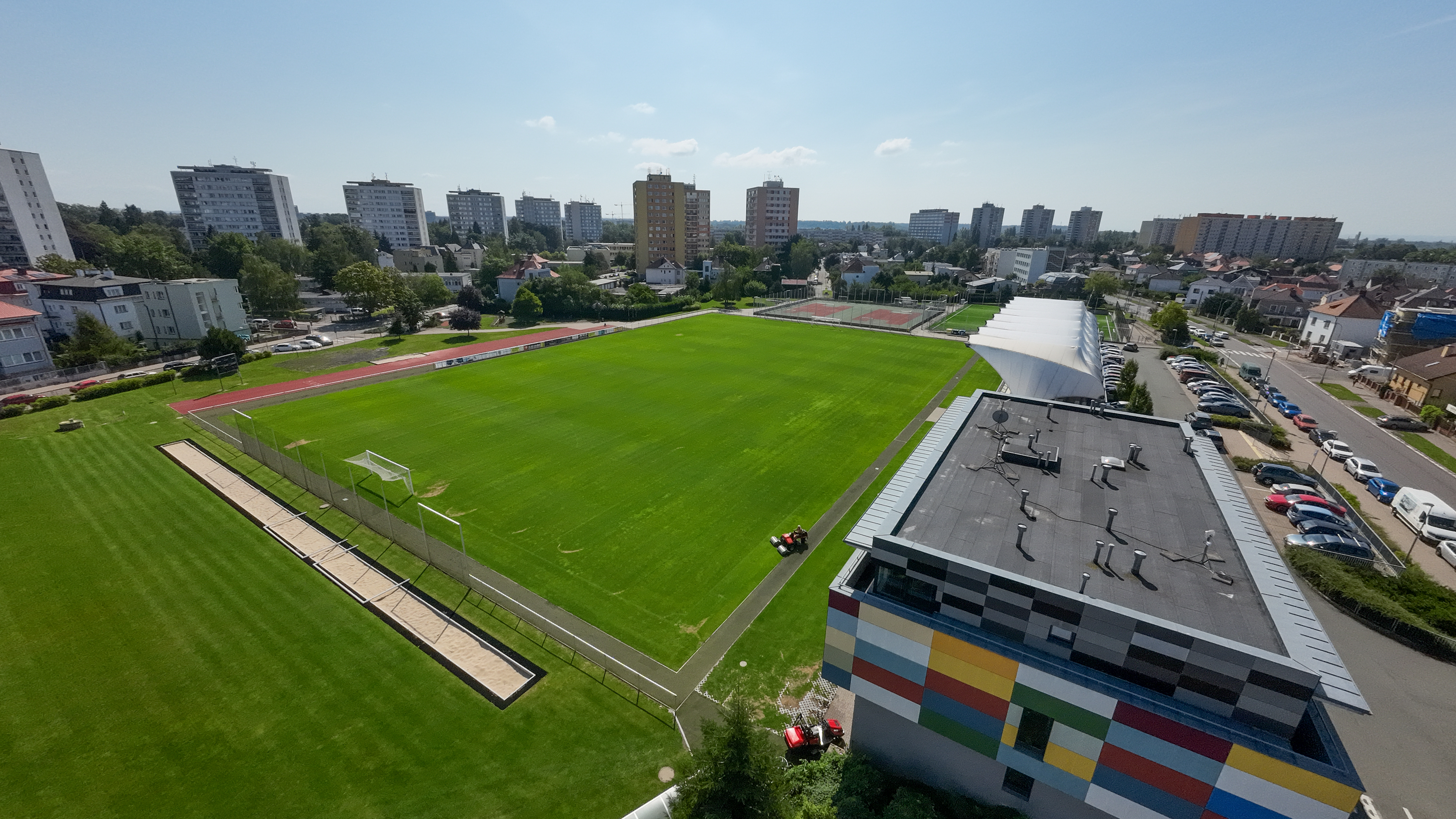 Součástí areálu je hlavní fotbalové hřiště s tribunou pro 335 diváků, čtyřpodlažní ubytovna s kapacitou 45 lůžek a šesti byty, multifunkční hřiště pro další sporty (basketbal, volejbal, házená), tartanová běžecká dráha, doskočiště i hřiště na petanque.