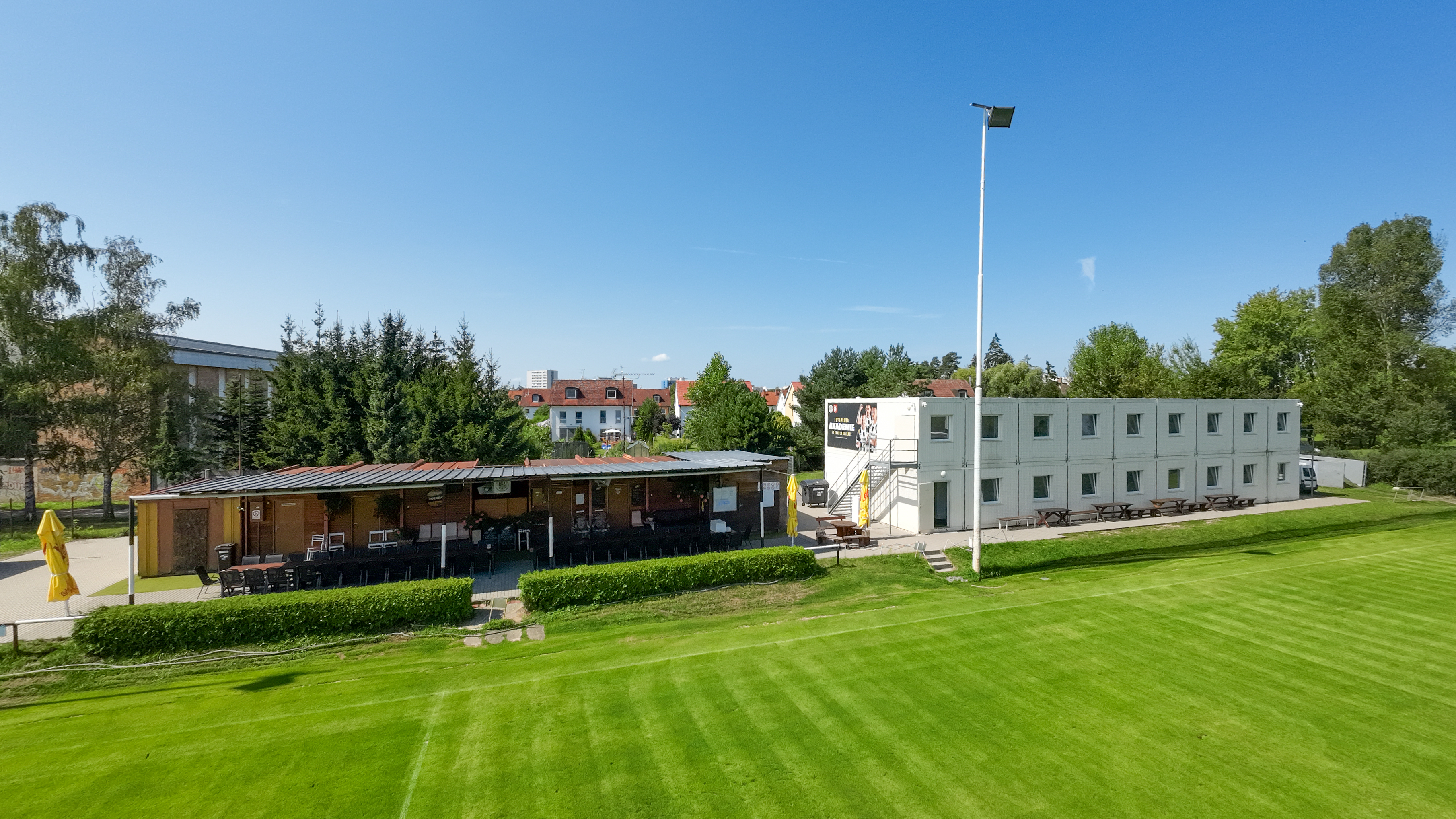 K dispozici jsou dvě travnatá hřiště – jedno zápasové a jedno plnohodnotné tréninkové pro mladší kategorie. Součástí areálu je také šatnové zázemí buňkového typu a oblíbený bufet s venkovním posezením, který je otevřený při víkendových utkáních a během odpoledních tréninků.